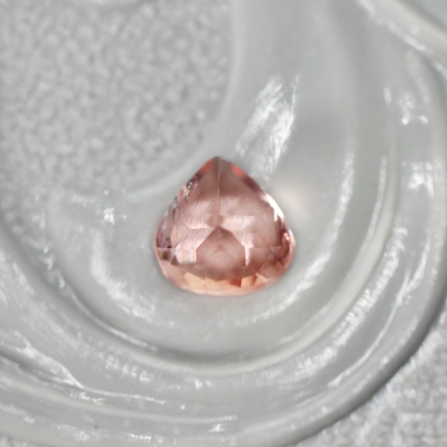 マロンカットが愛らしい、桜ピンクカラーのレッドラブラドライトです。全体が綺麗に均一に色づいており、透き通るような輝きも魅力的です。