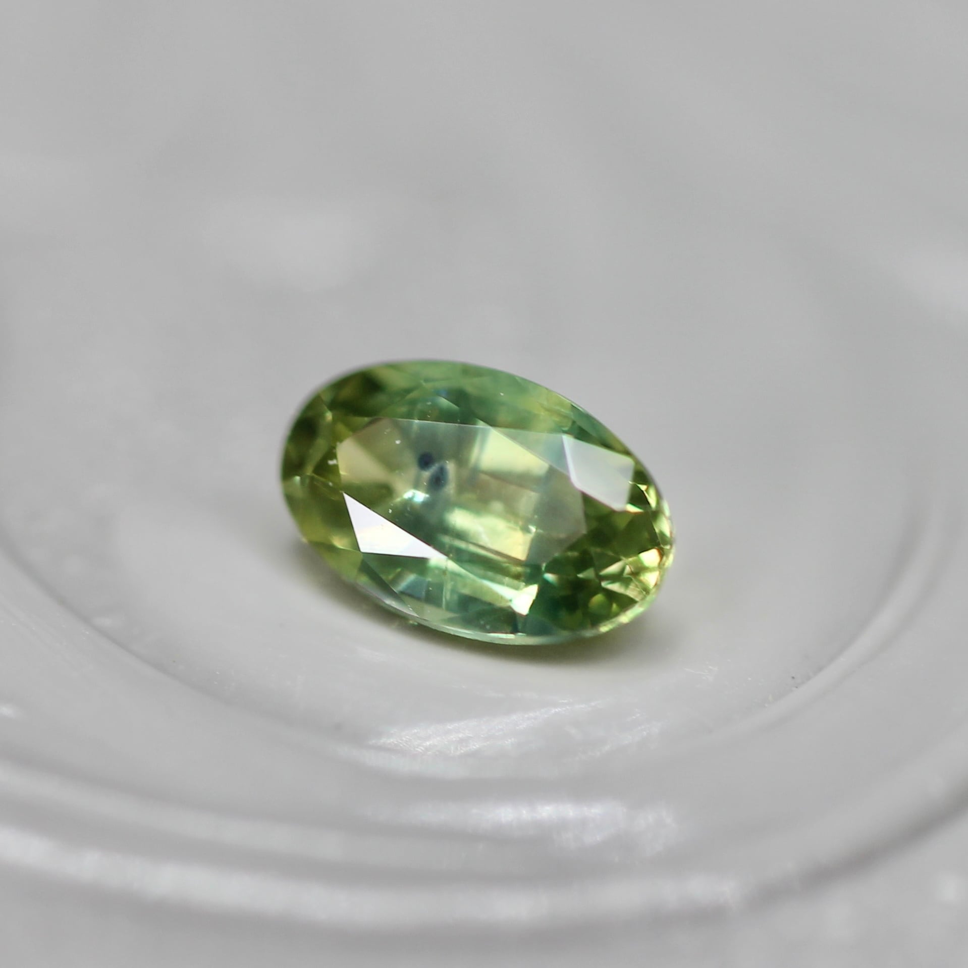透明感ある輝きが美しい、珍しいグリーンカラーのオーバルカットのモンタナサファイアです。