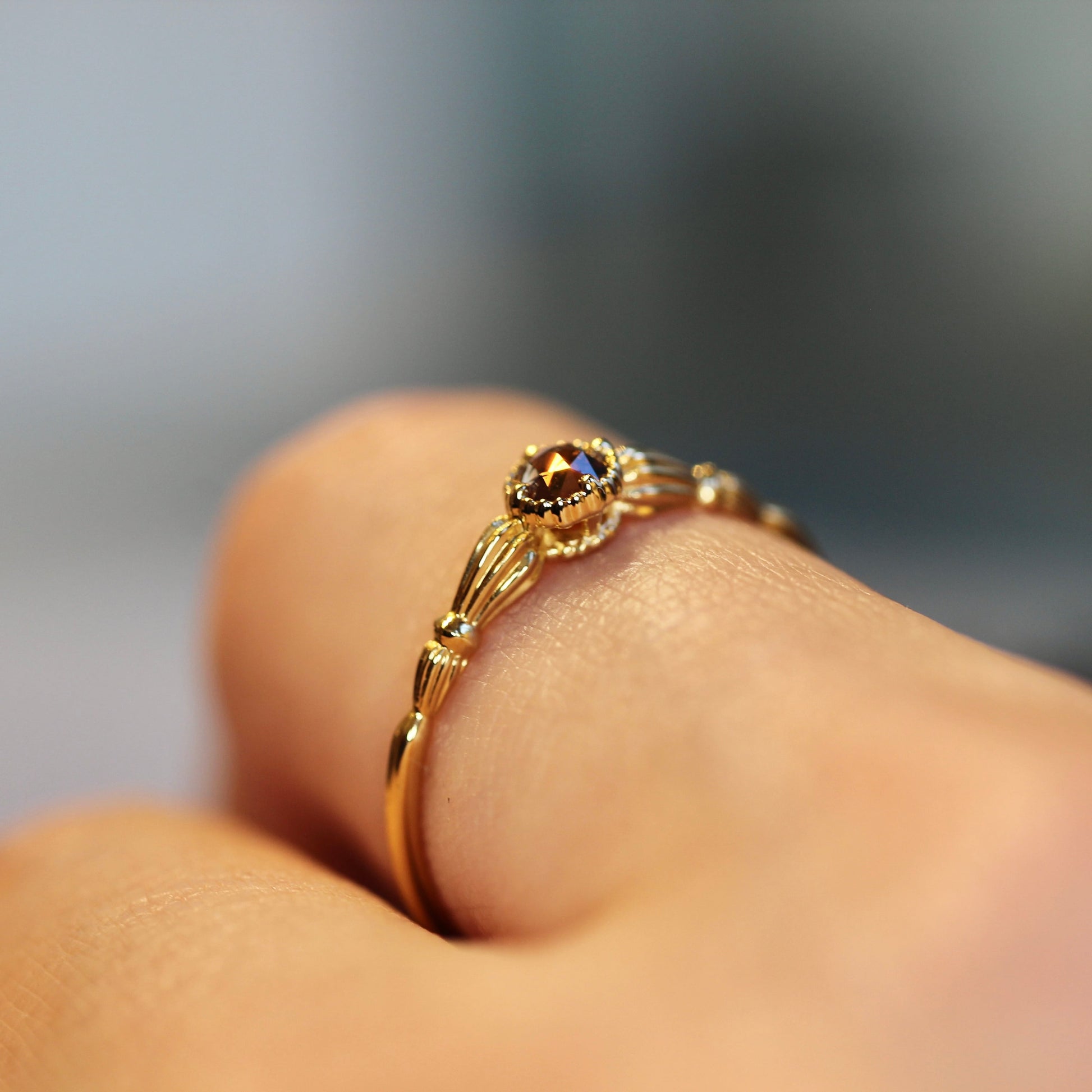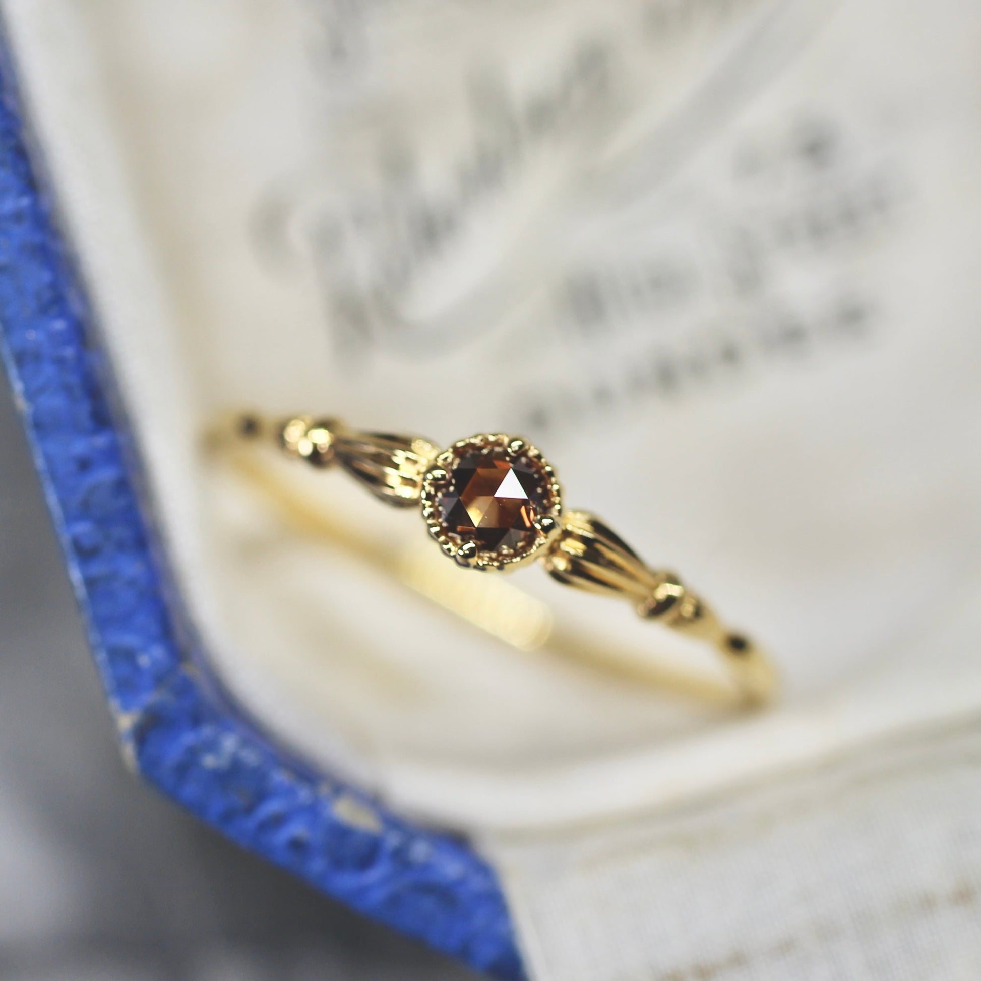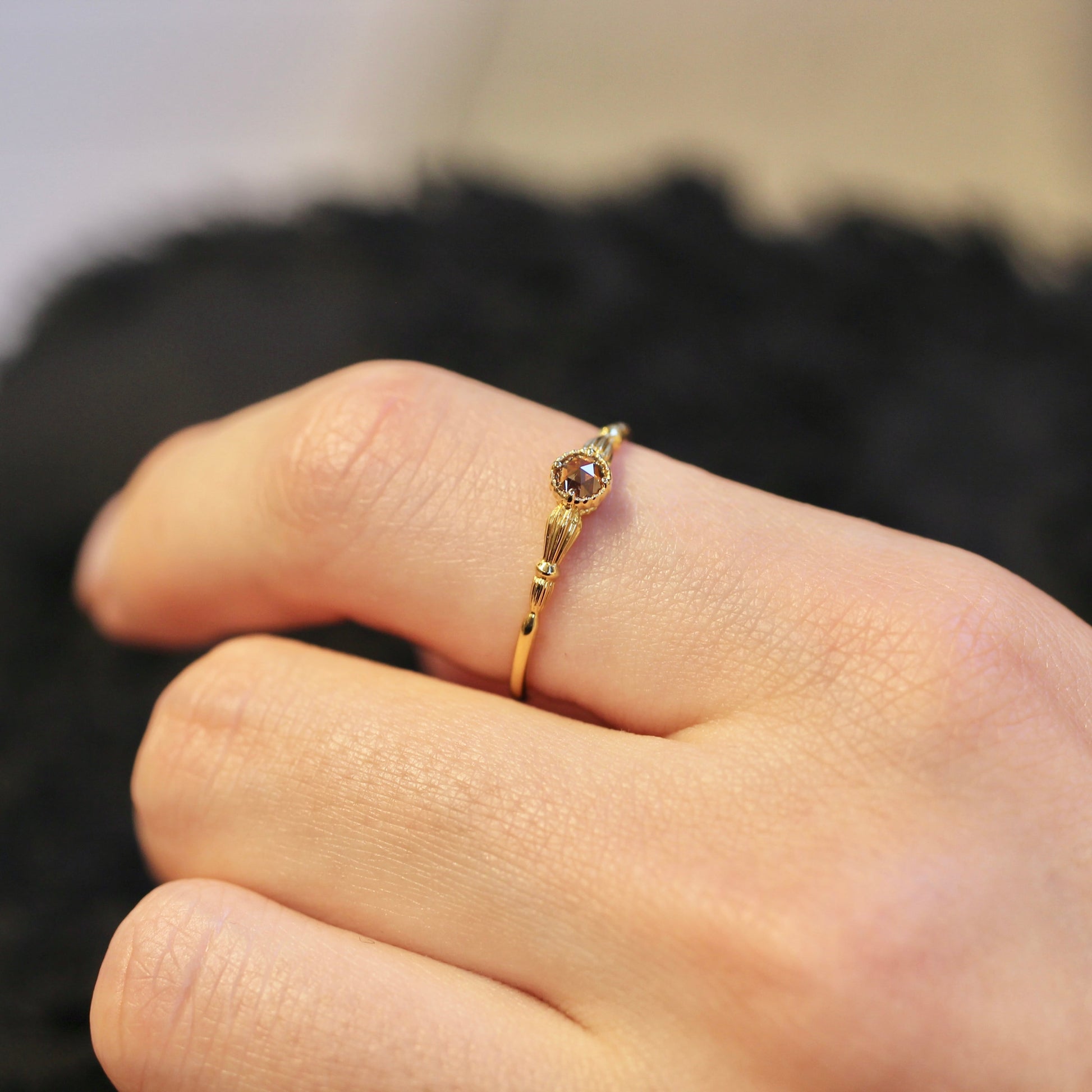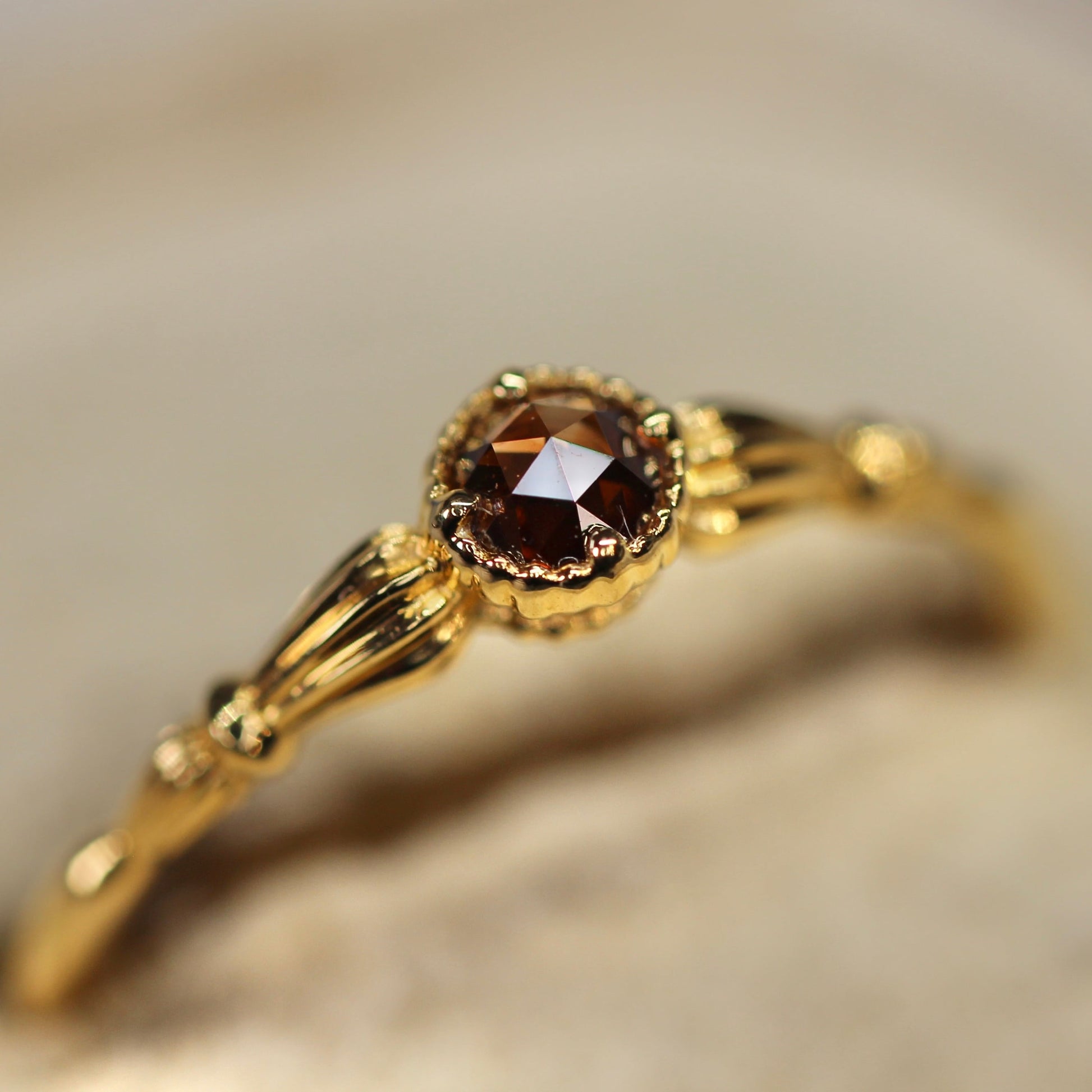ローズカットブラウンダイヤモンド0.1ct K10YG ミルフレーム×アンティークアーム