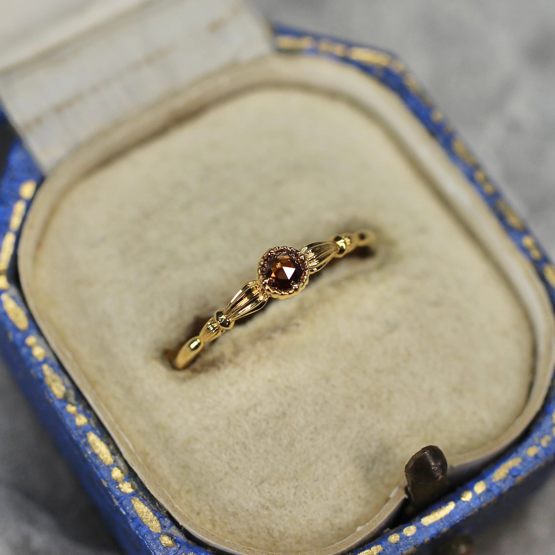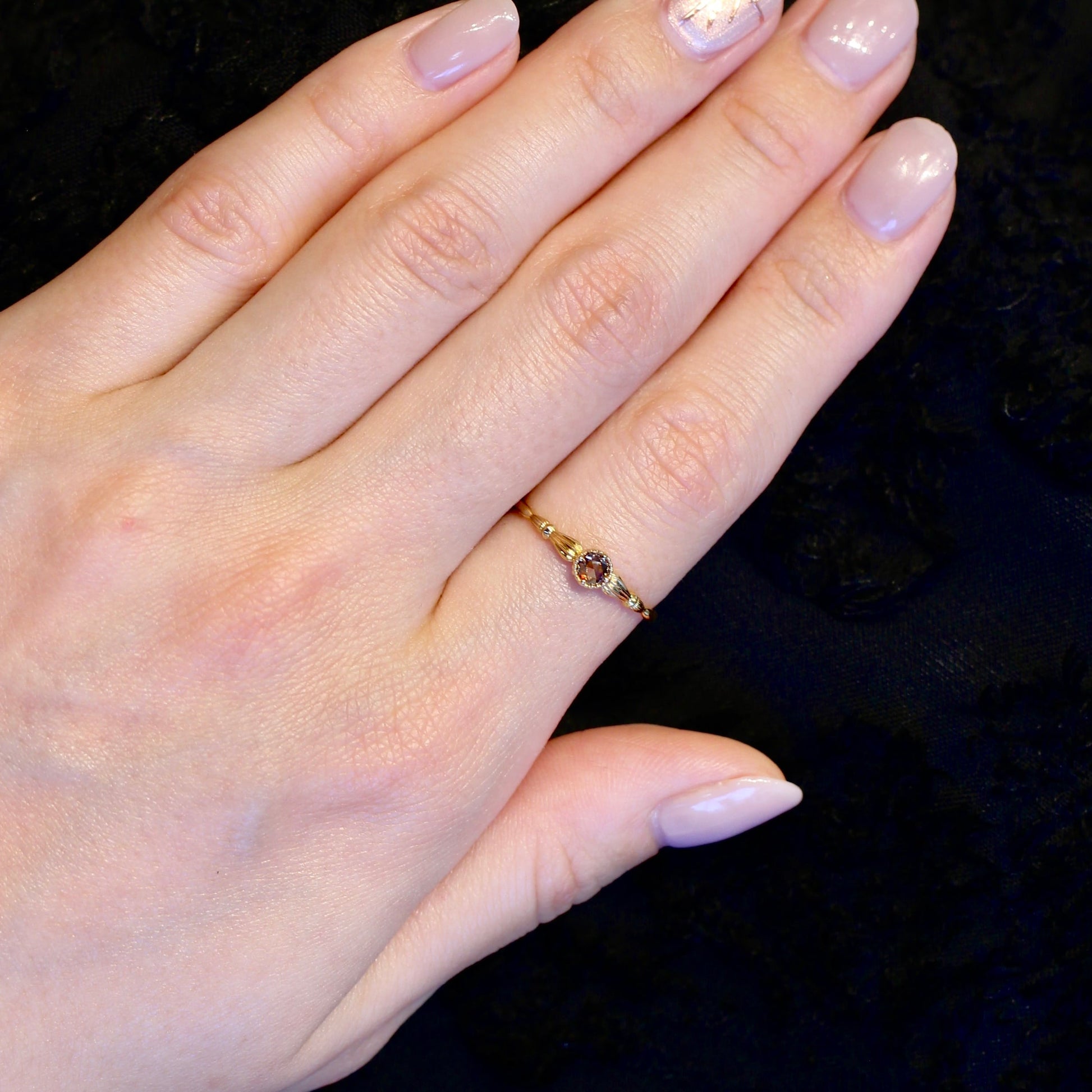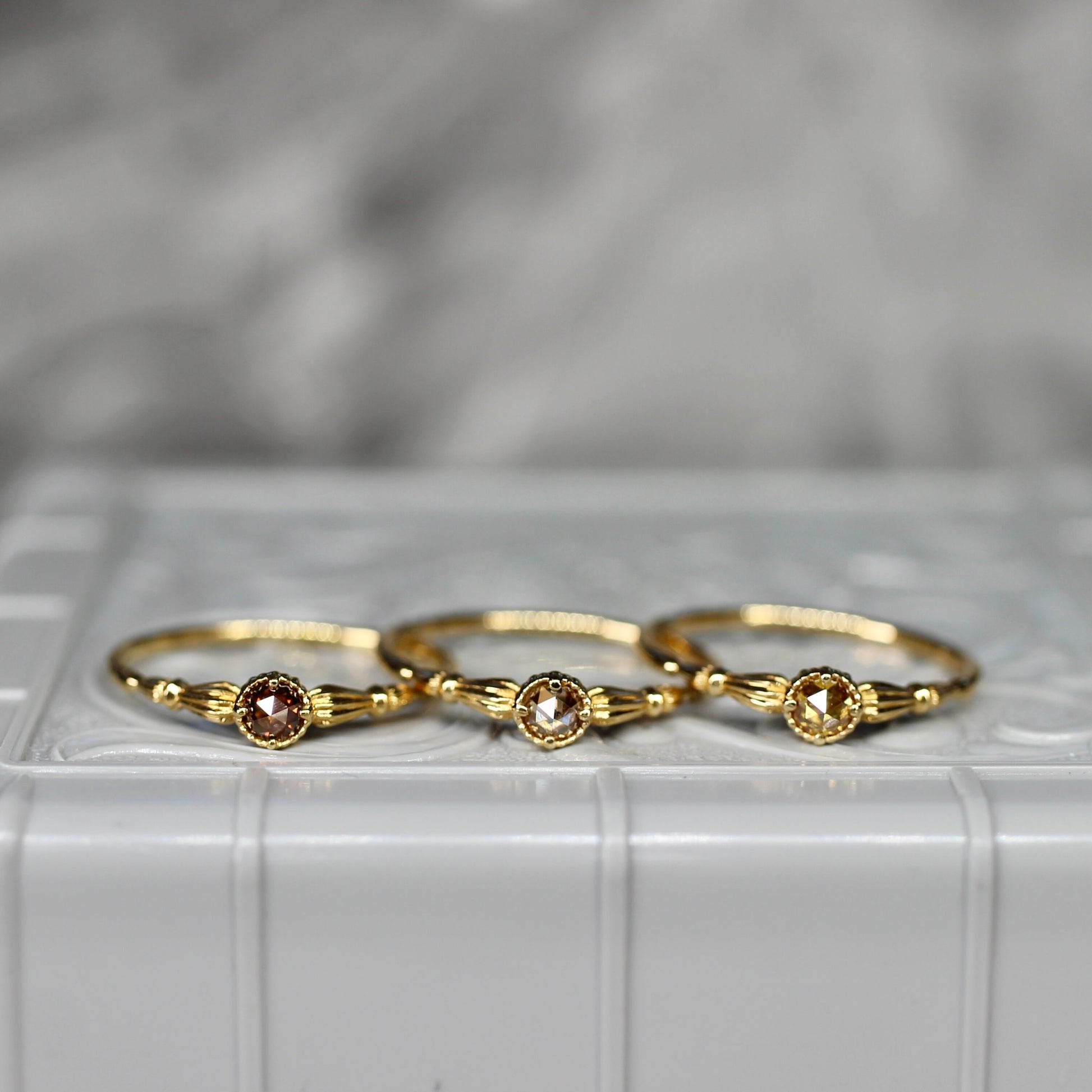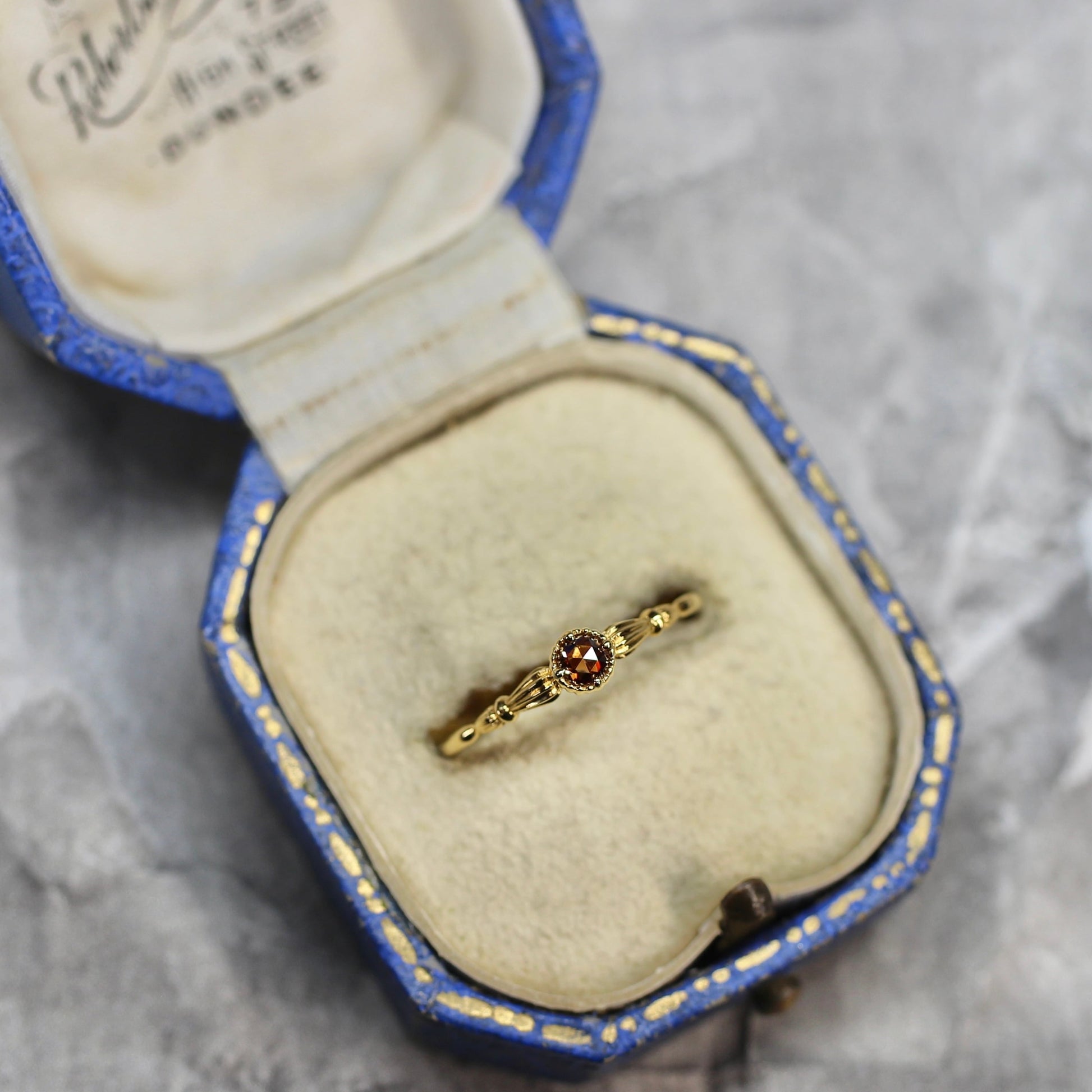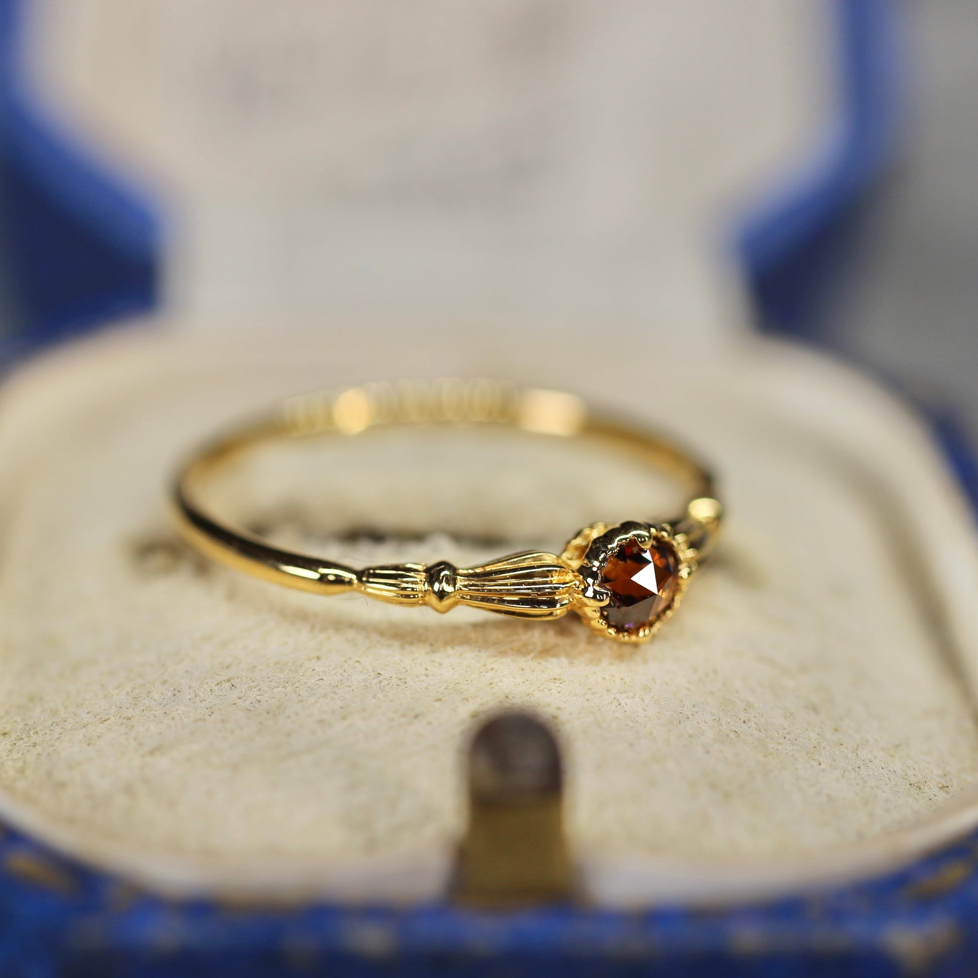 ローズカットブラウンダイヤモンド0.1ct K10YG ミルフレーム×アンティークアーム