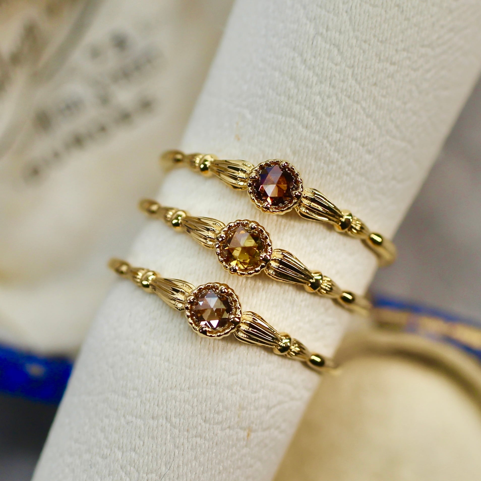 独特の煌めき方をするローズカットダイヤモンド。