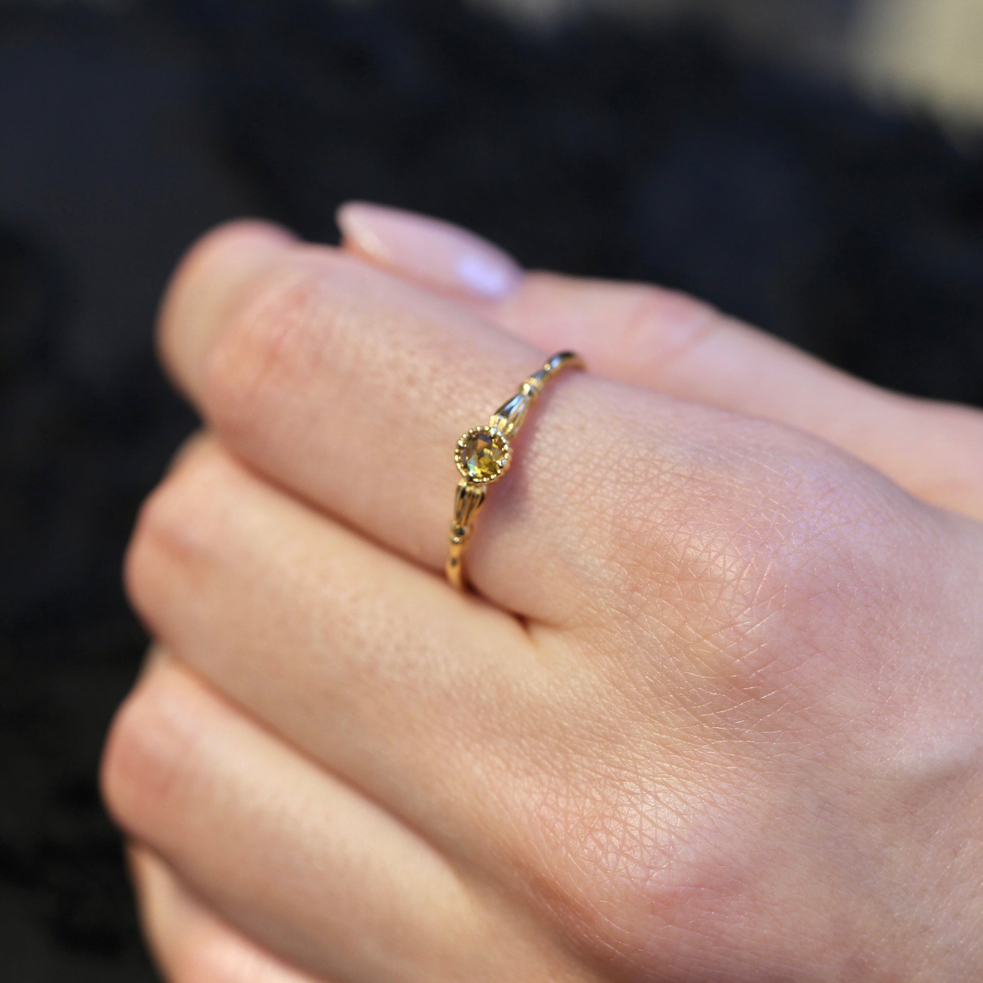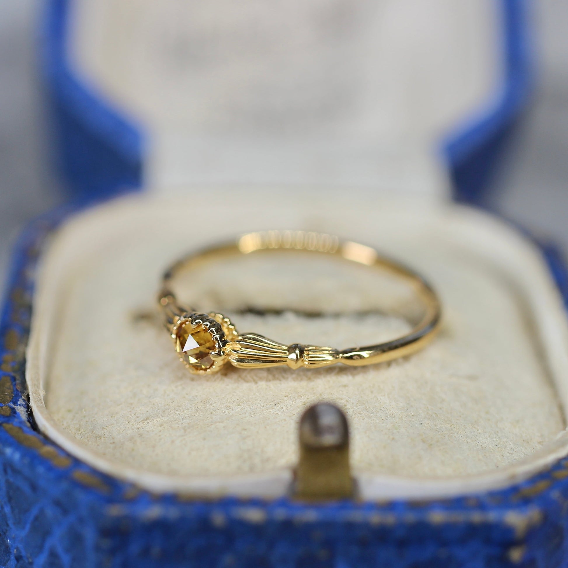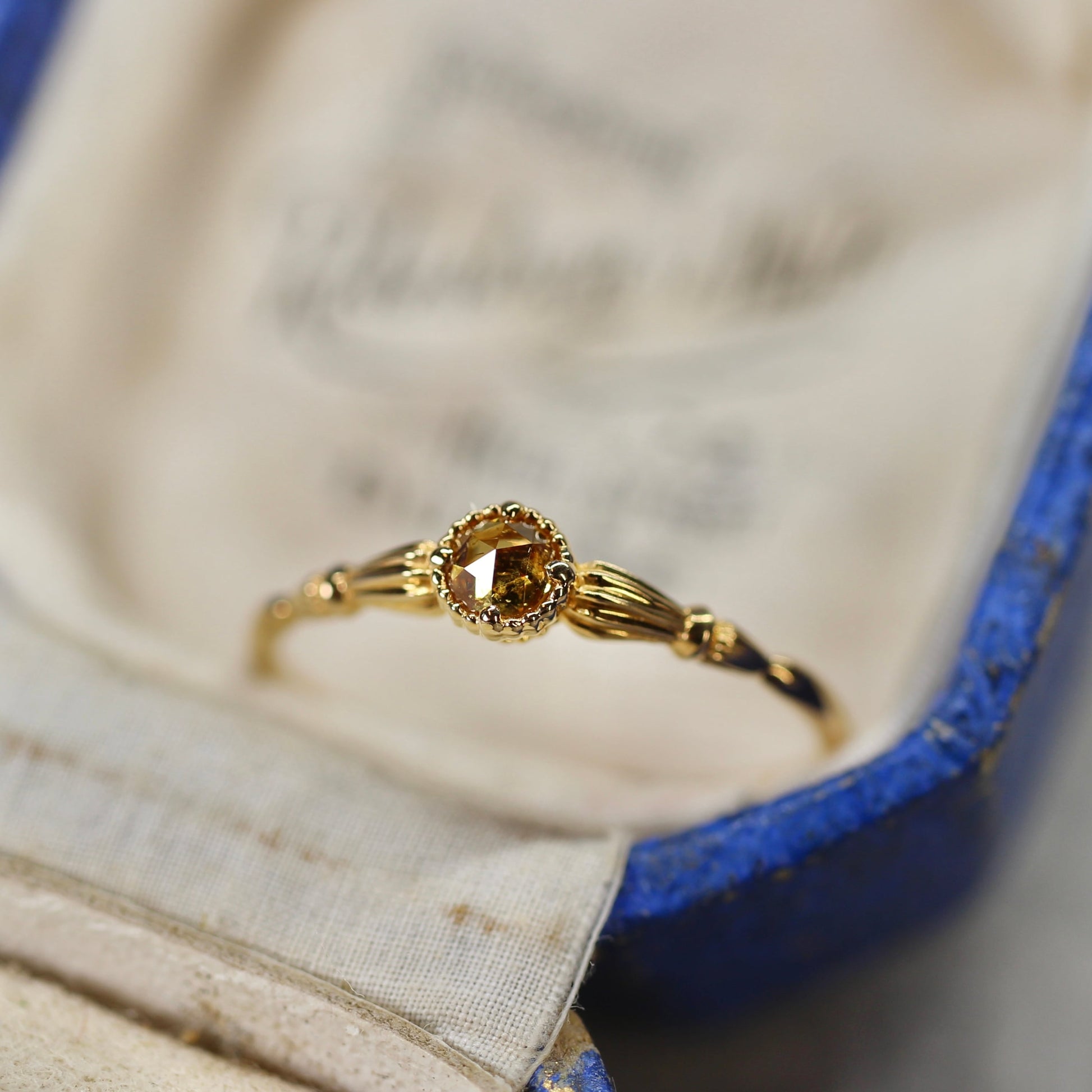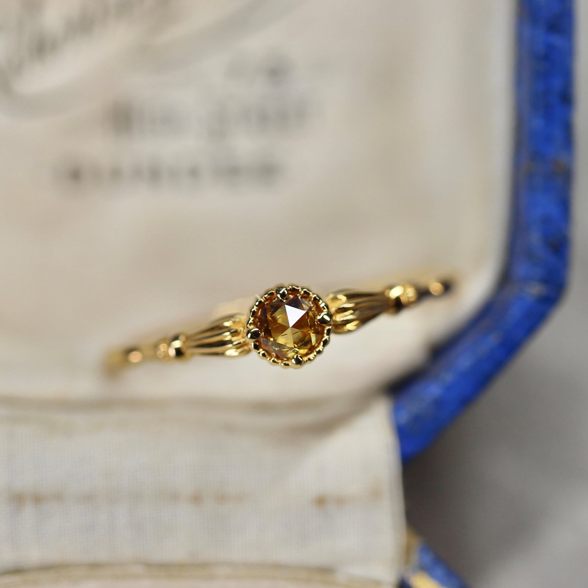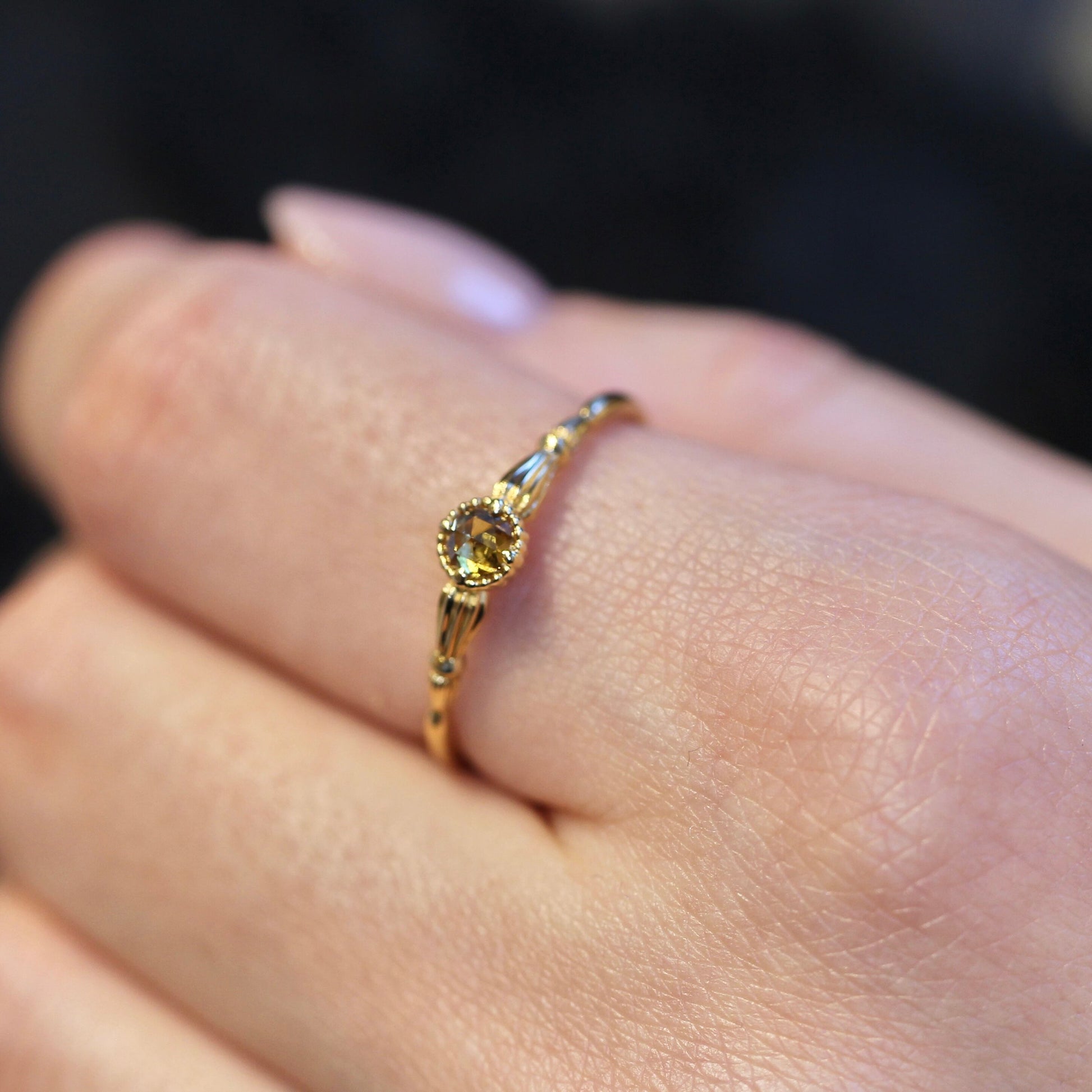 ローズカットブラウンダイヤモンド0.1ct K10YG ミルフレーム×アンティークアーム