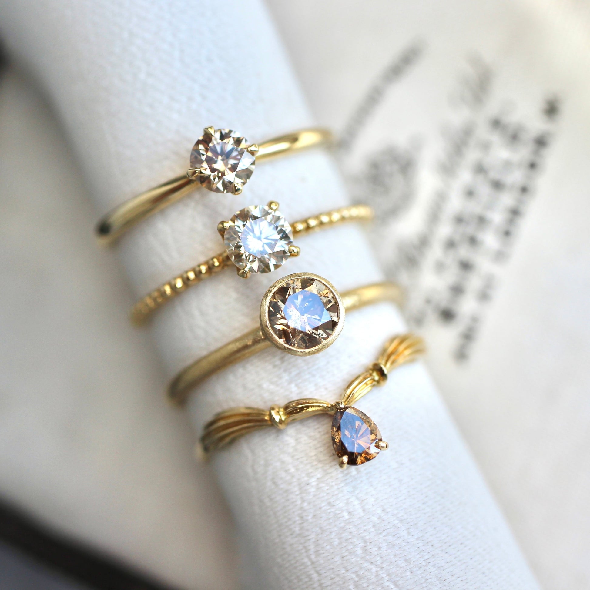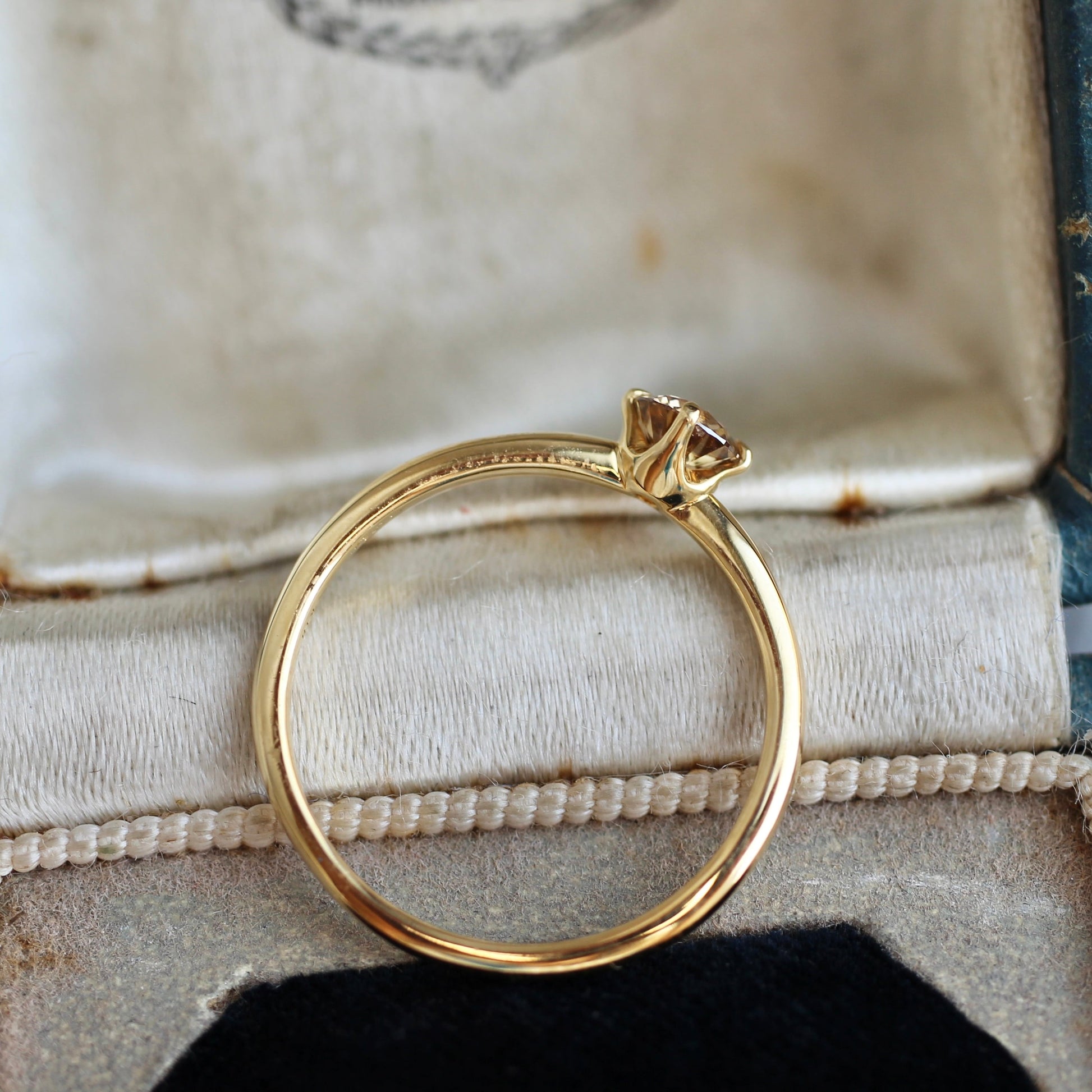 ブラウンダイヤモンド 0.325ct 4本爪×絞りアーム K18YGリング 【MJ2412】