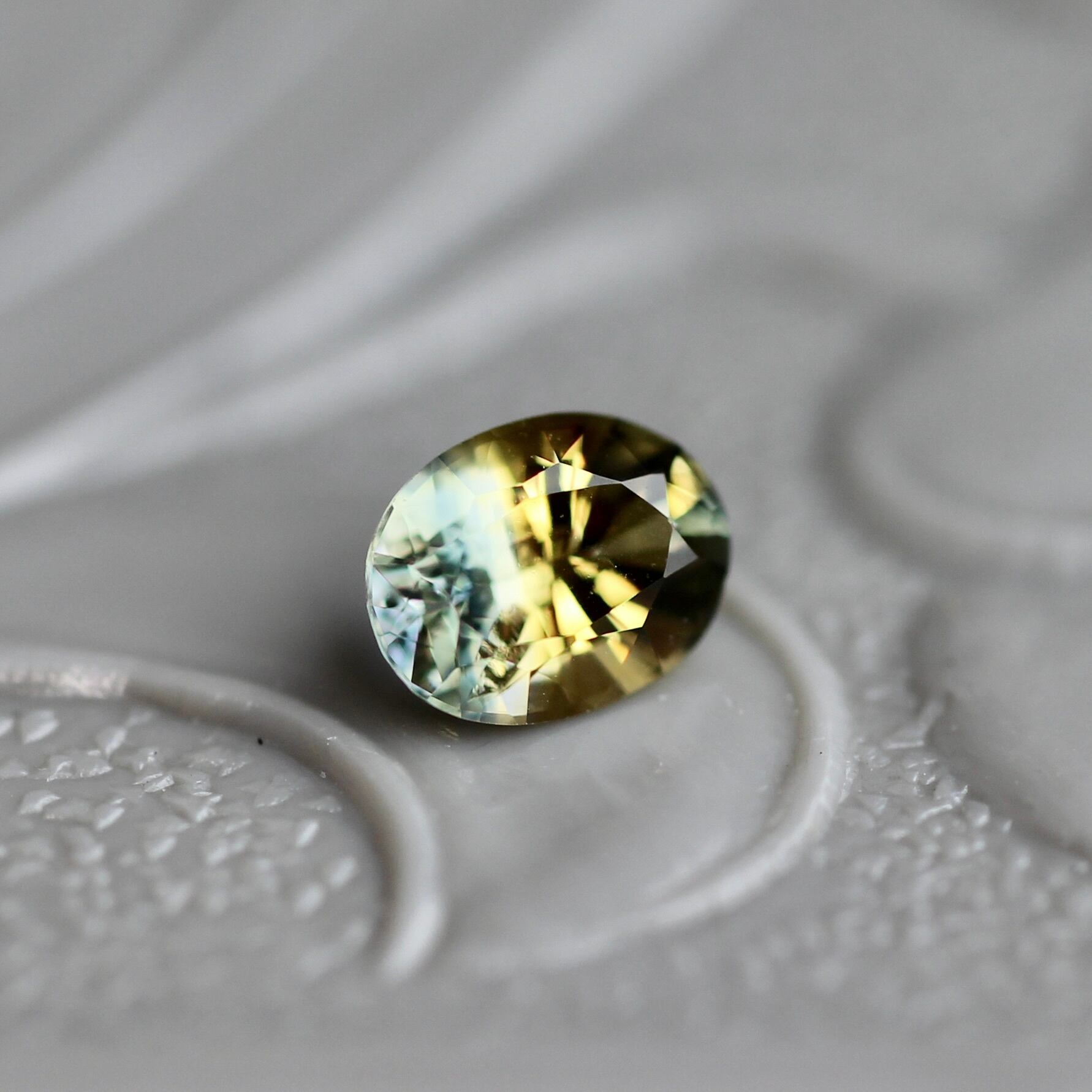 見る角度にによって色の割合が変化する様も神秘的なバイカラーサファイア。