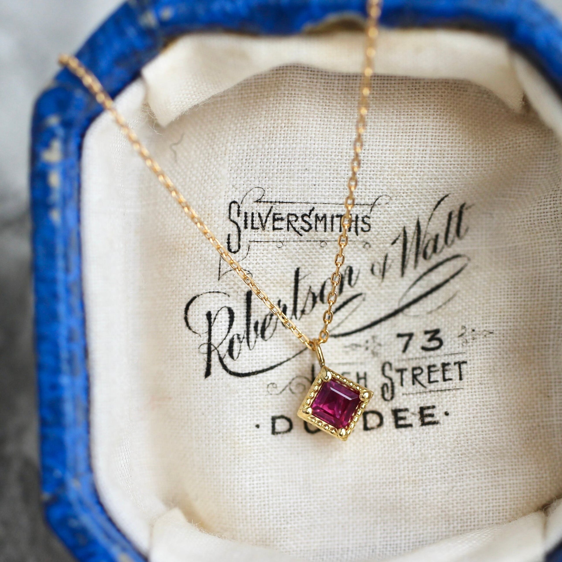ルビー 0.18ct 3mm×3mm ミルフレーム ネックレス 【MJ2448】