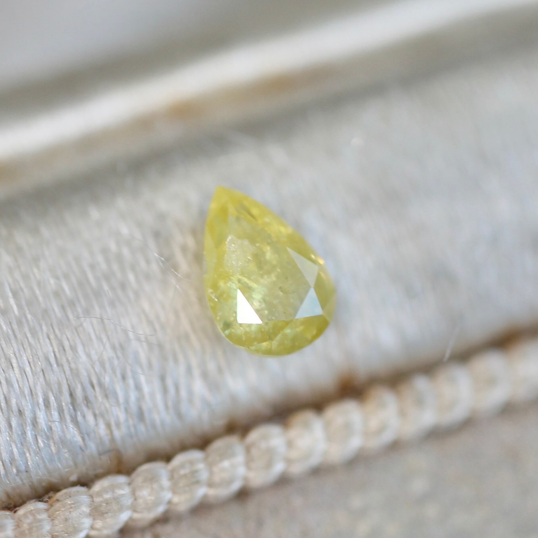 ひと雫こぼれ落ちた蜂蜜のような甘くまろやかな淡いカラーが愛おしいナチュラルダイヤモンド。