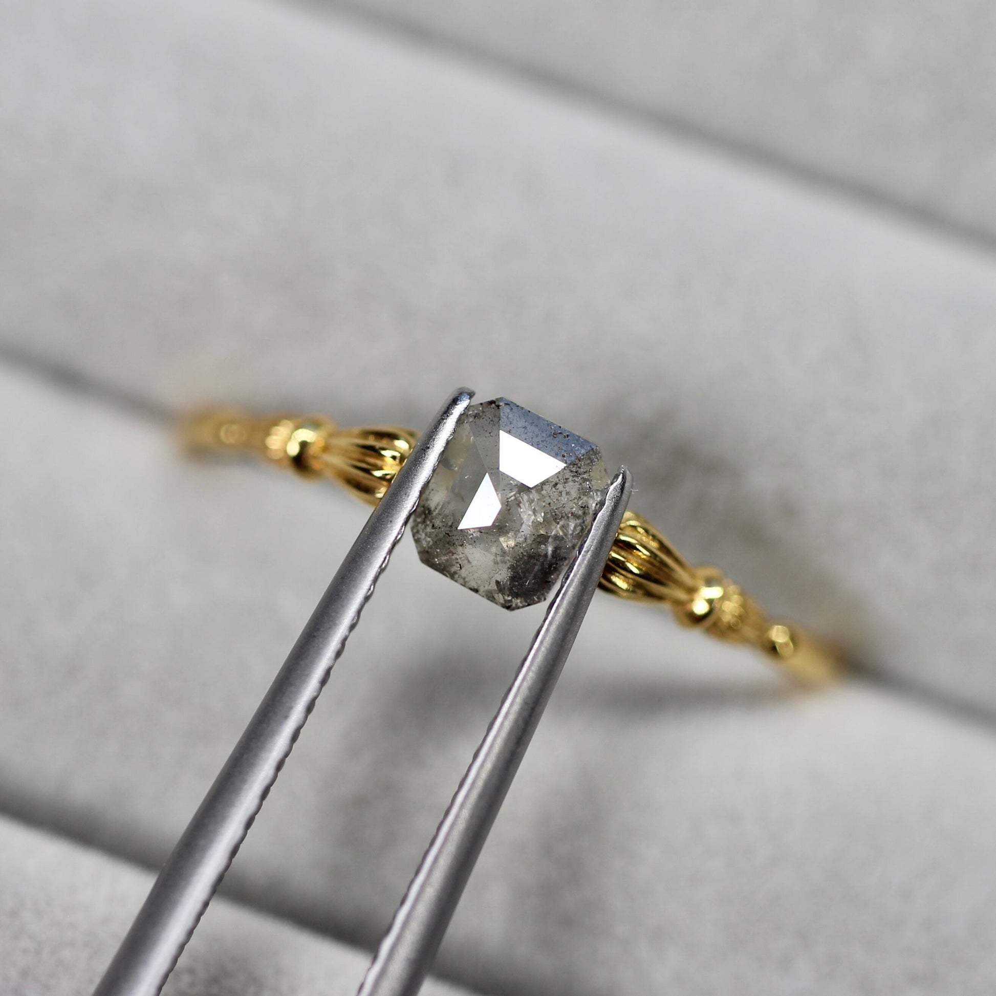 エメラルドローズカット ソルトアンドペッパーダイヤモンド 0.48ct 4.6mm×4.0mm-1.5mm 【MJ2491】