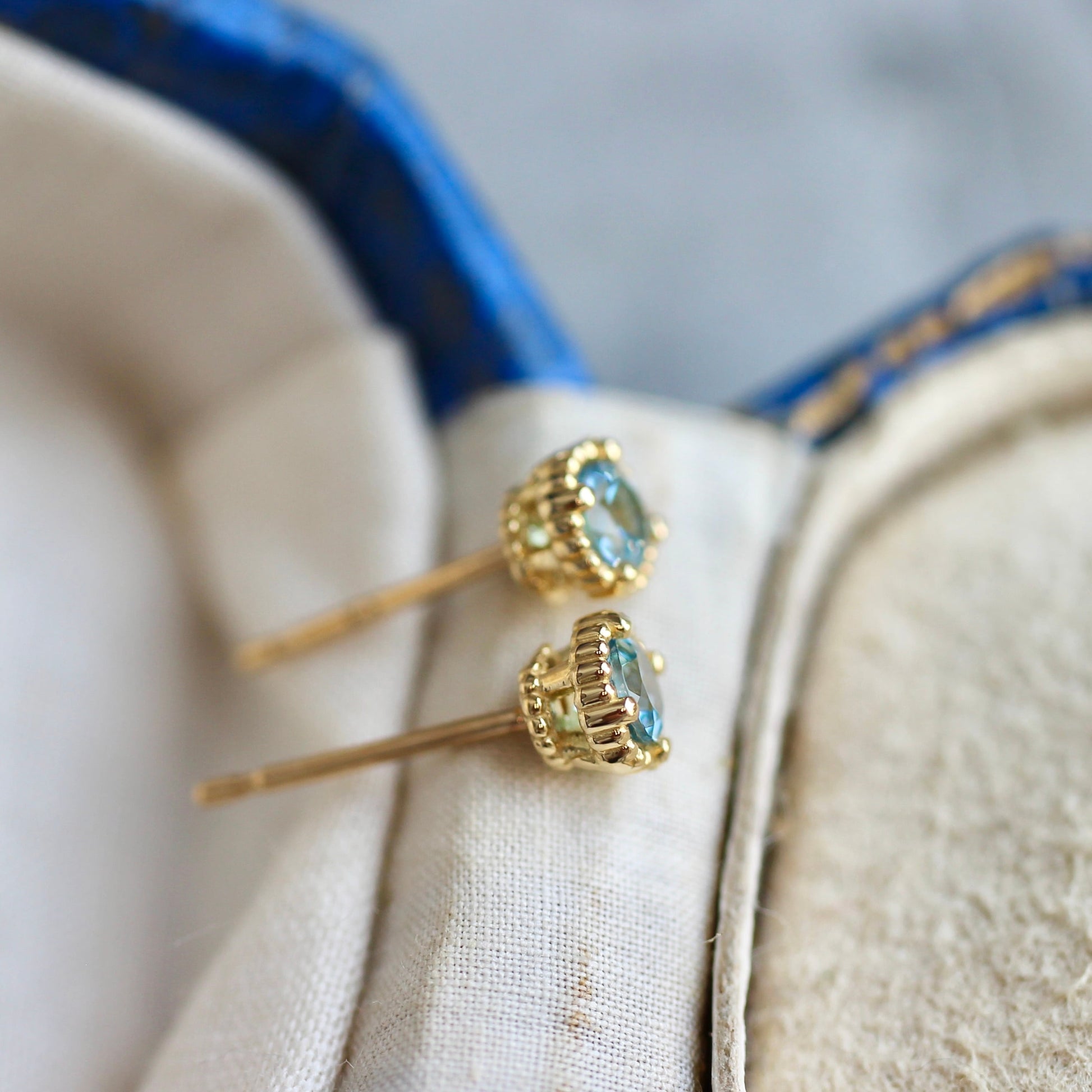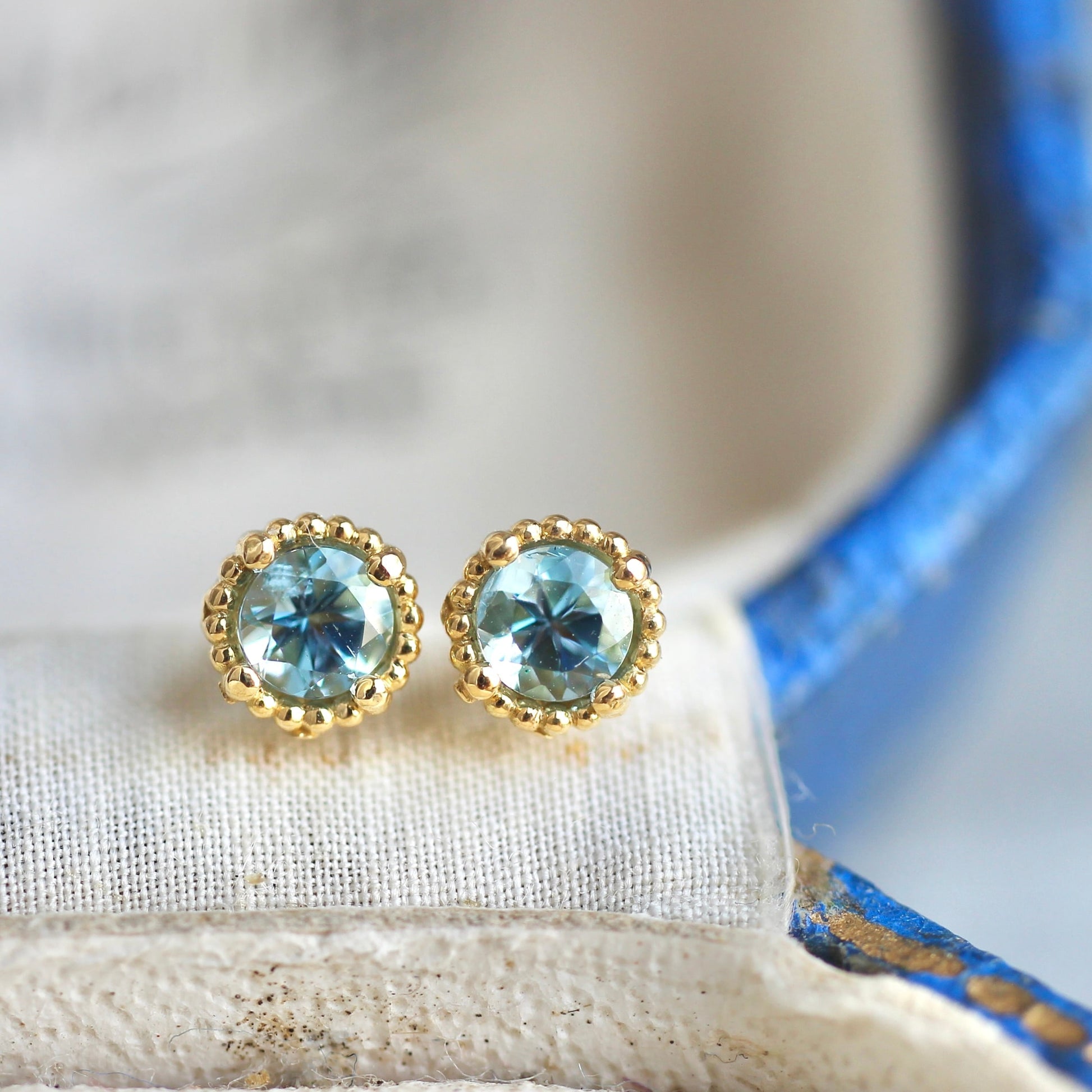 サンタマリアアクアマリン0.1ct 3mm K18YG ミルフレーム ピアス 片耳 【MJ2499】