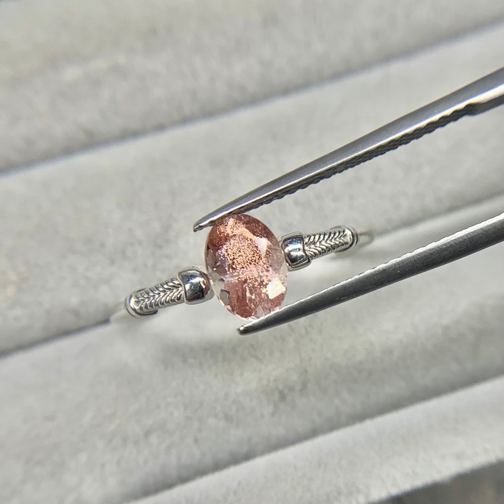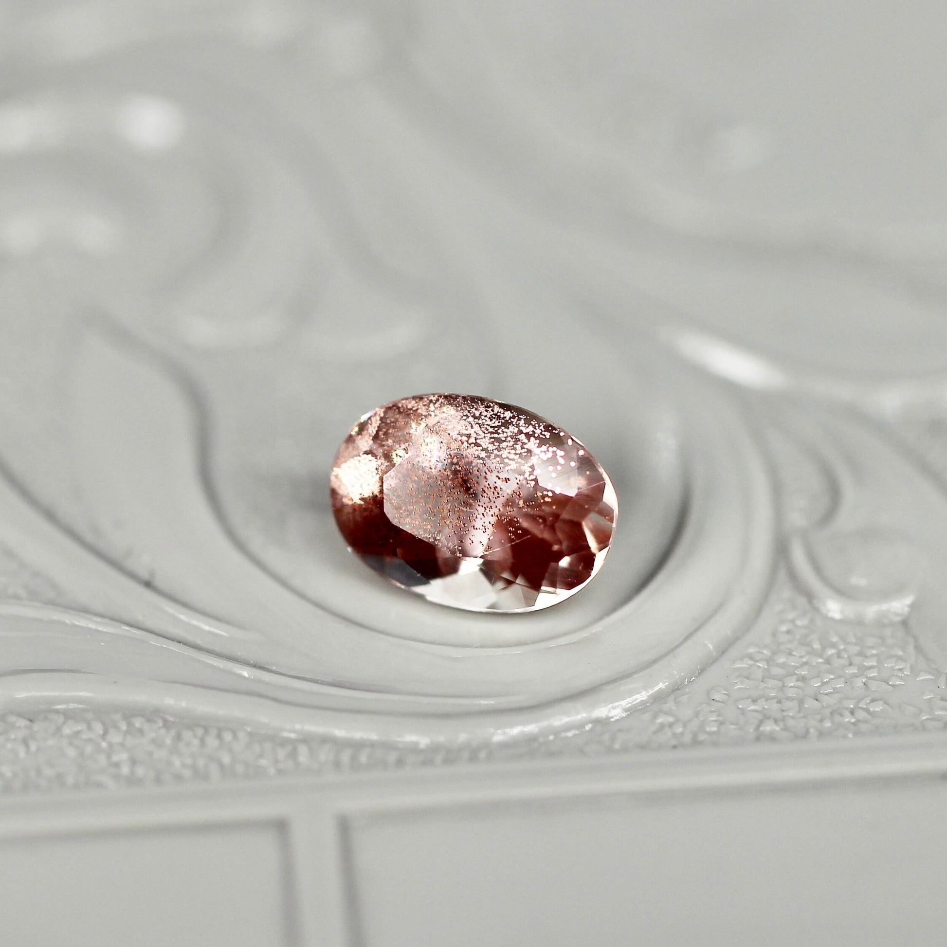 淡いサーモンピンクのボディにアベンチュレッセンスが煌めく、
