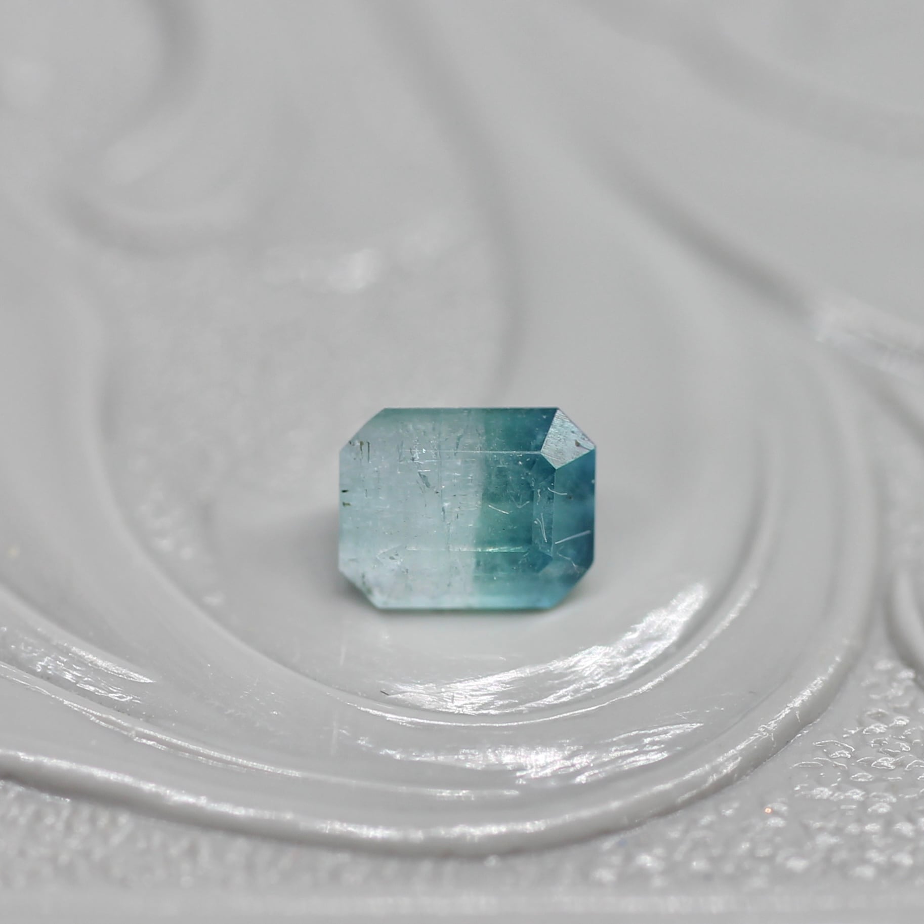 白い白浜のビーチに広がる快晴の青空のように清々しく爽やかなバイカラートルマリンです。