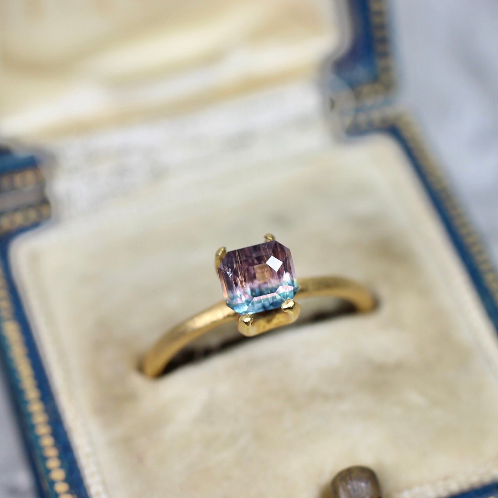 エメラルドカット バイカラートルマリン 0.90ct 5.1mm×4.5mm-4.7mm 【MJ2518】