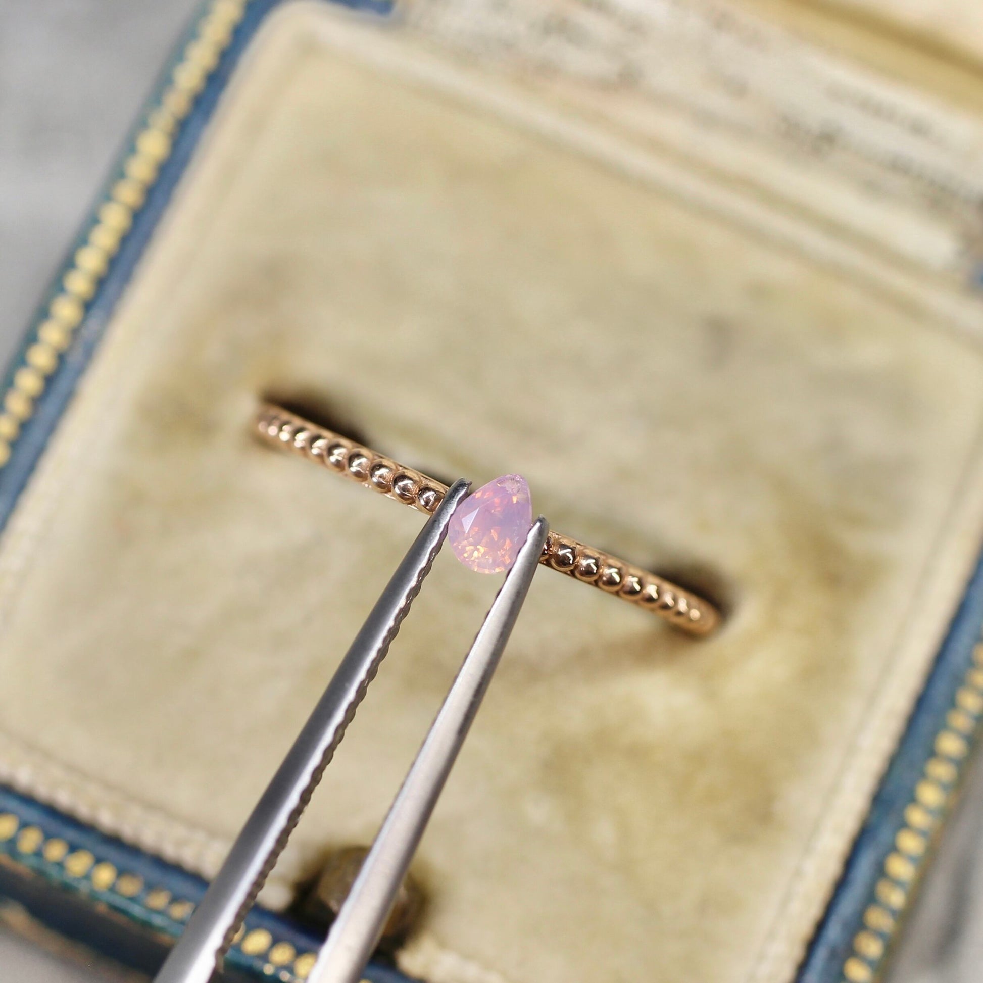 ほんのりパープルピンクの色だまりも感じられますの桜の花びらのように愛らしく可憐なピースです。