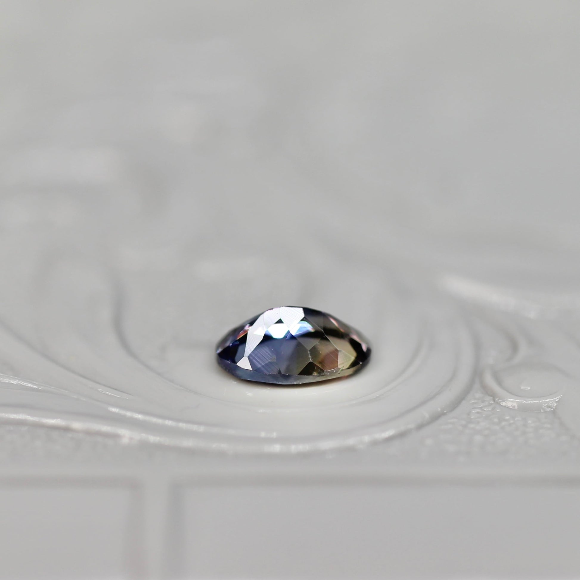 パープル、ブルー、オレンジ、イエローなどの複雑に重なり合う色味が確認でき、多色性溢れる煌めきが美しいピースです。