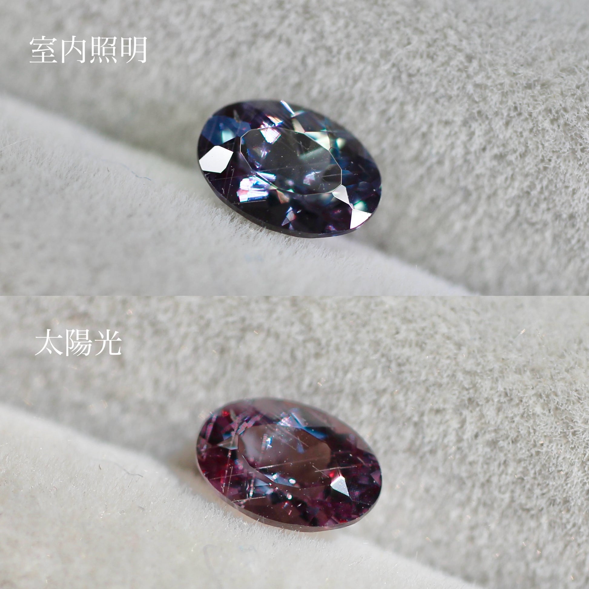 カラーチェンジガーネットは、光源によって色を変える魅力を持つ宝石です。蛍光灯や太陽光の下では藍色やブルーグリーンに、白熱灯の下では赤みを帯びた色へと変化し、その神秘的な輝きで見る人を惹きつけます。