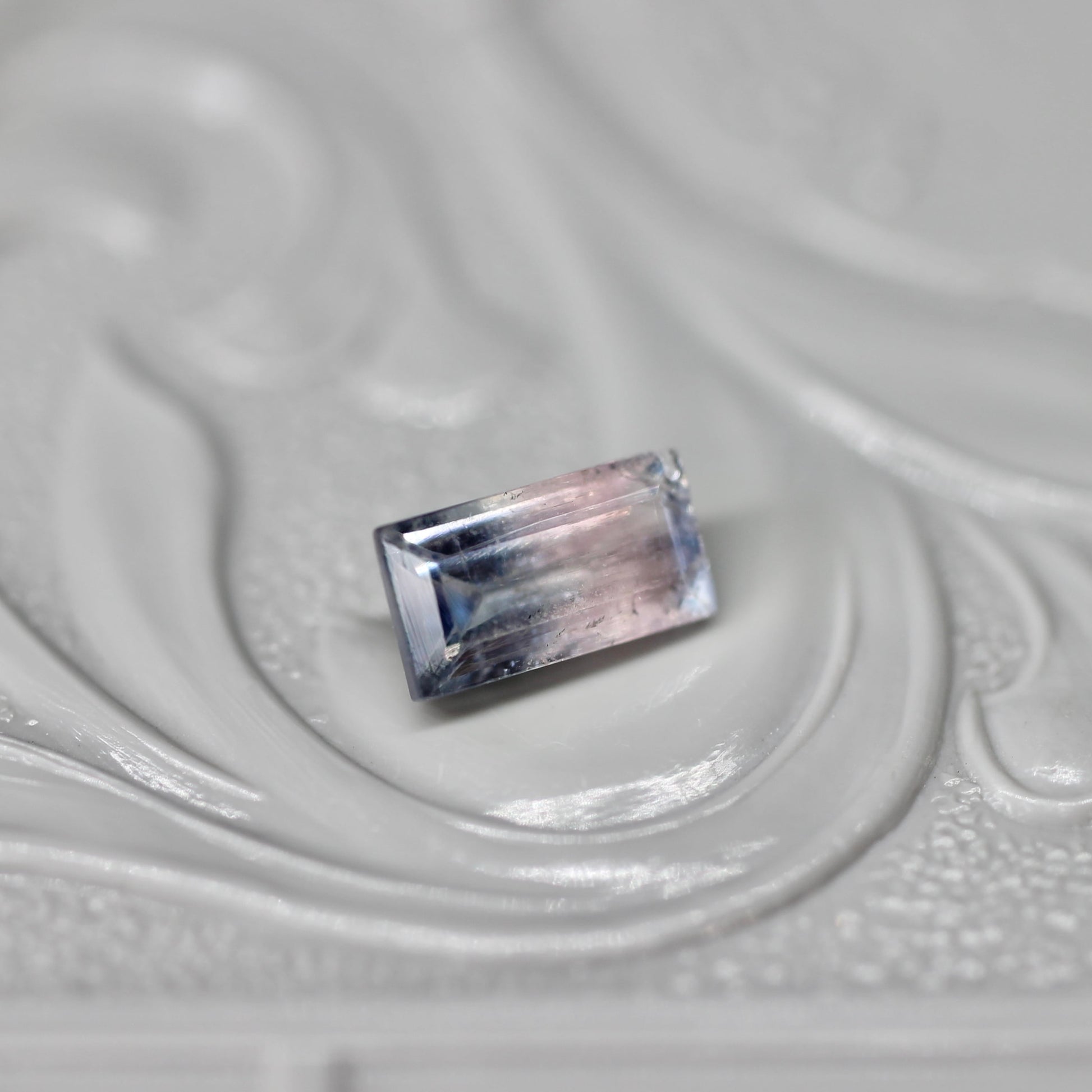 青みがかったスモーキーピンクとグレイッシュブルーの組み合わせが清々しいバイカラートルマリン。