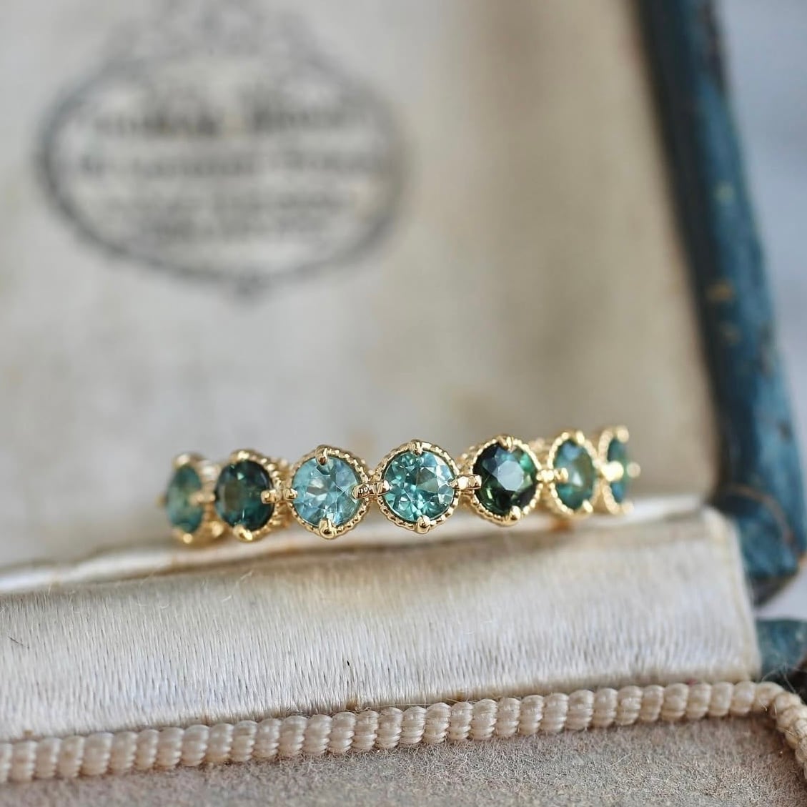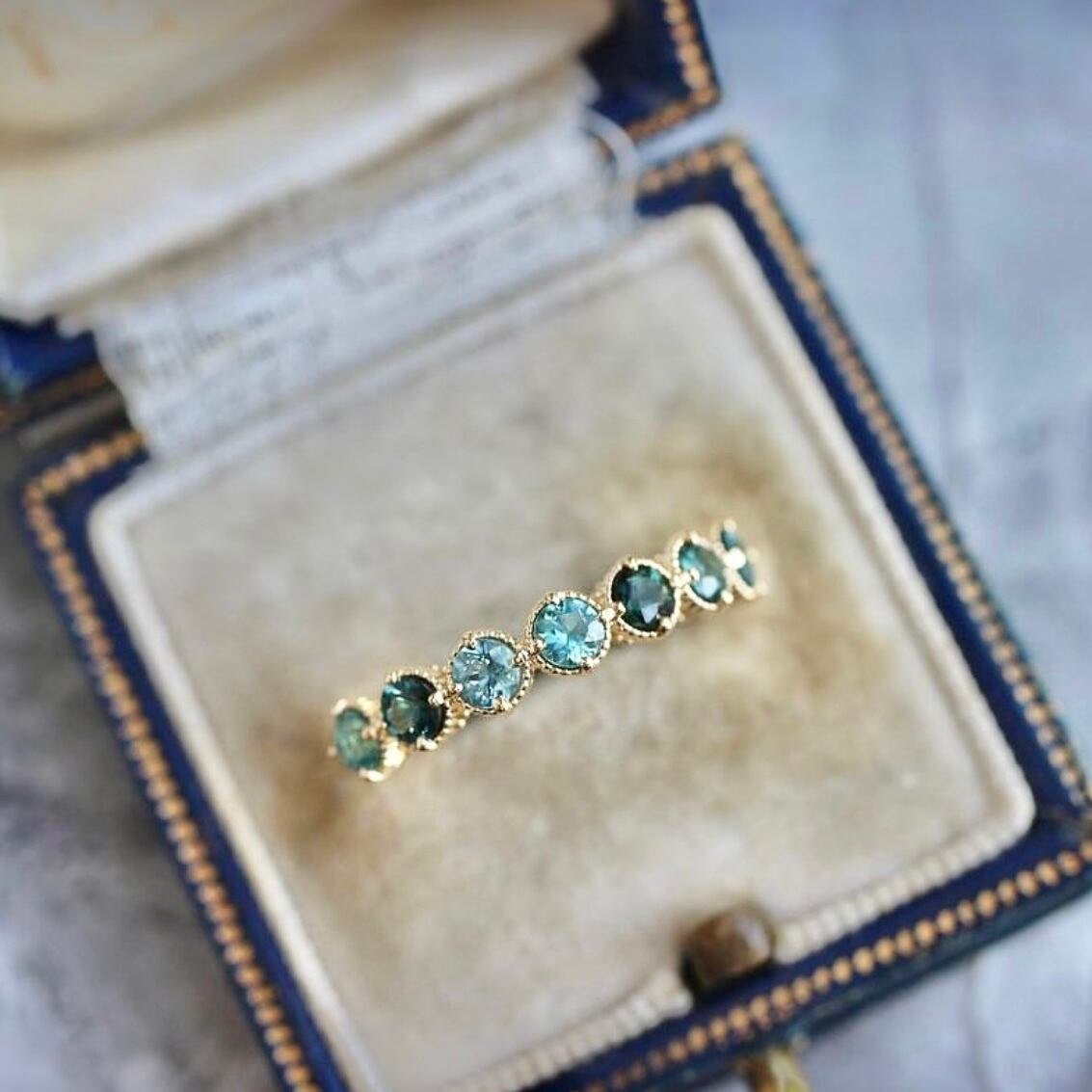 こちらの7ピースセットのブルートルマリンでハーフエタニティのお仕立ても可能です。
