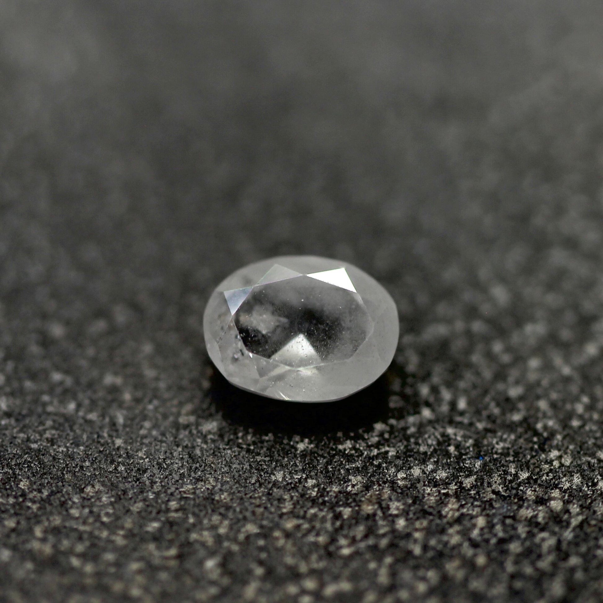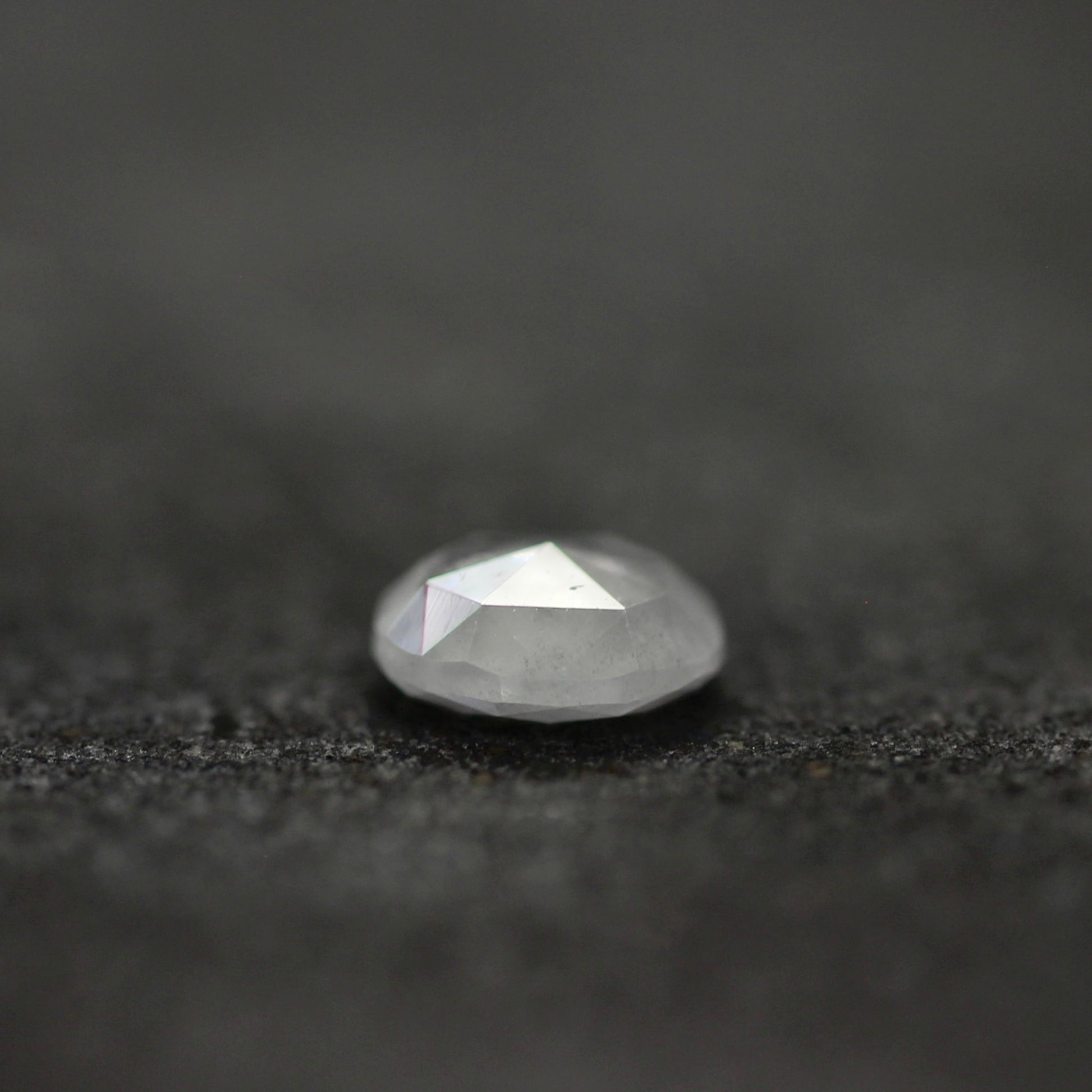 透明感あるボディの中に白く霧が立ち込めたようなミステリアスな雰囲気のインクルージョンを持ったオーバルローズカットダイヤモンドです。