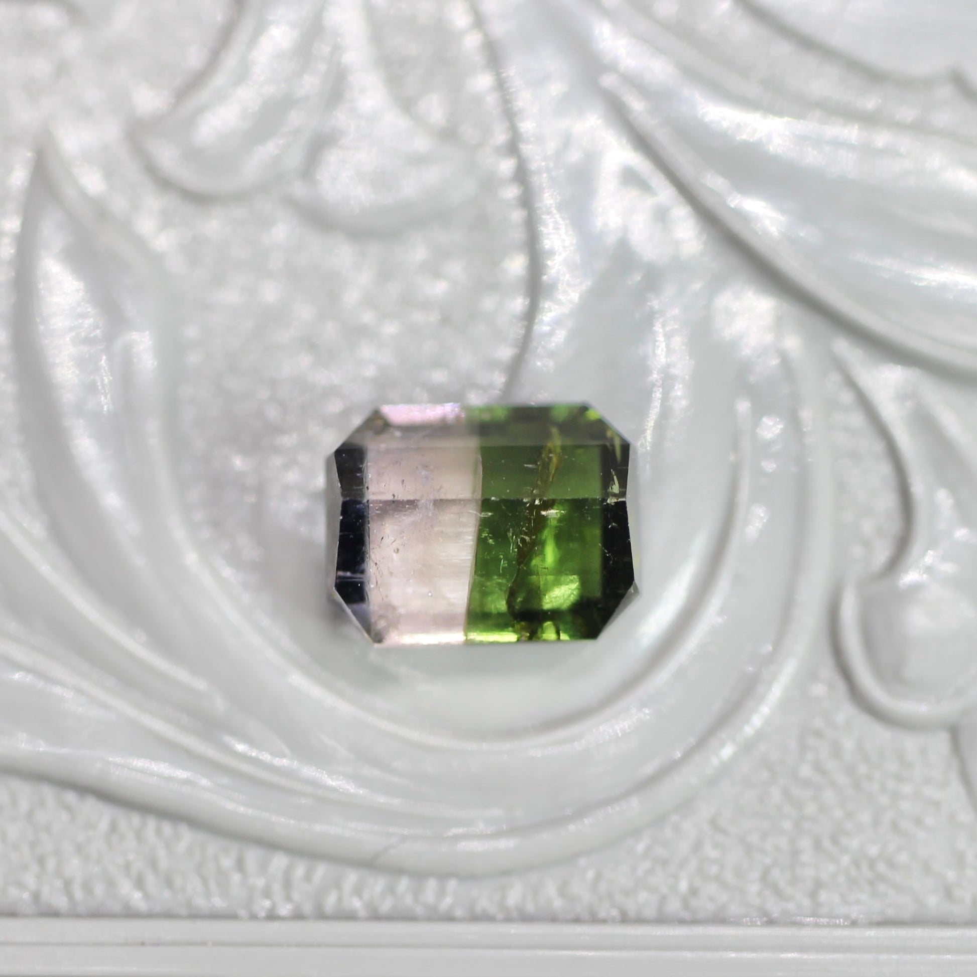 バイカラートルマリン 0.93ct エメラルドカット 6.6mm×5.1mm×3.2mm【MJ2657】