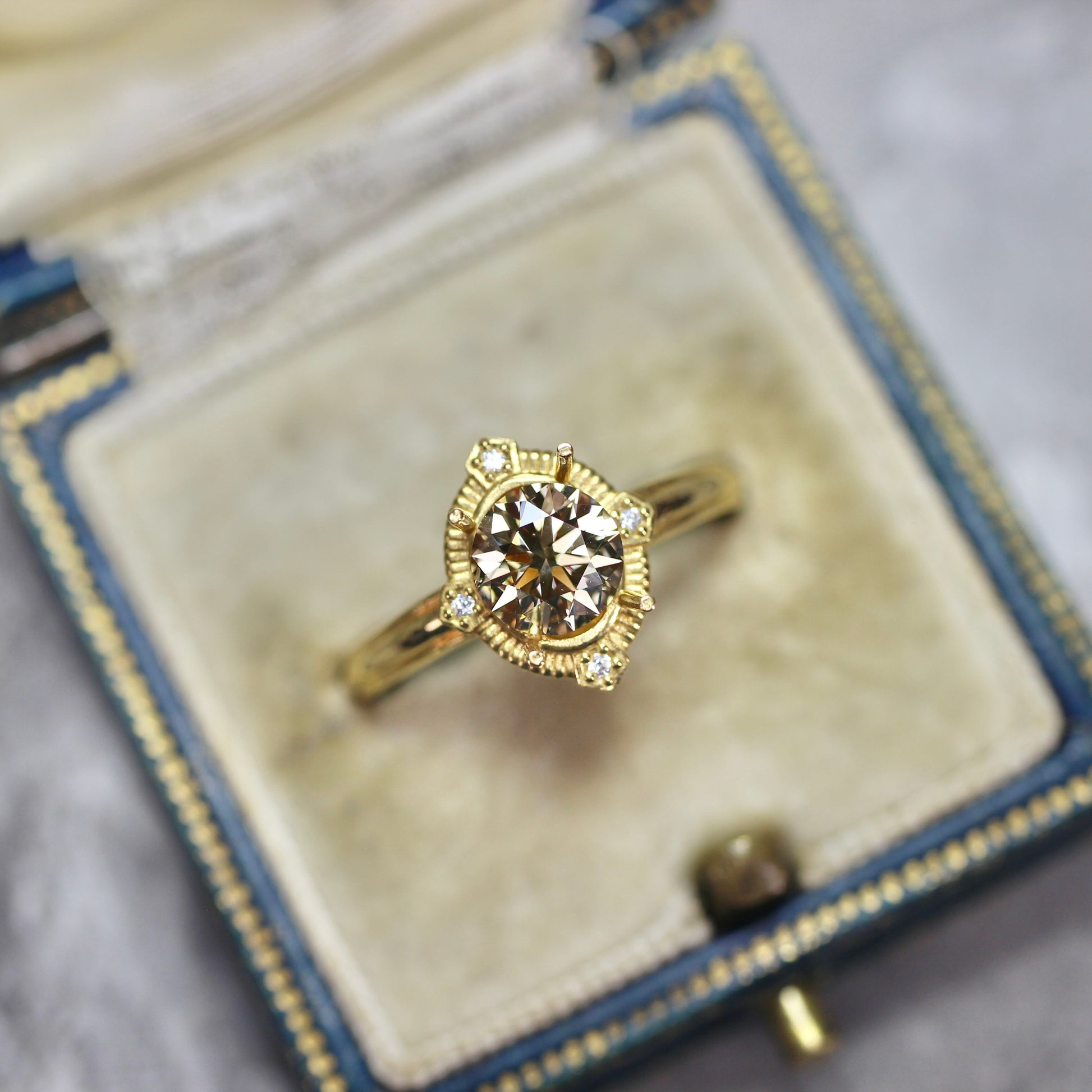 シャンパンブラウンダイヤモンド 0.895ct VS-2 Excellent ラウンドブリリアントカット【MJ2678】
