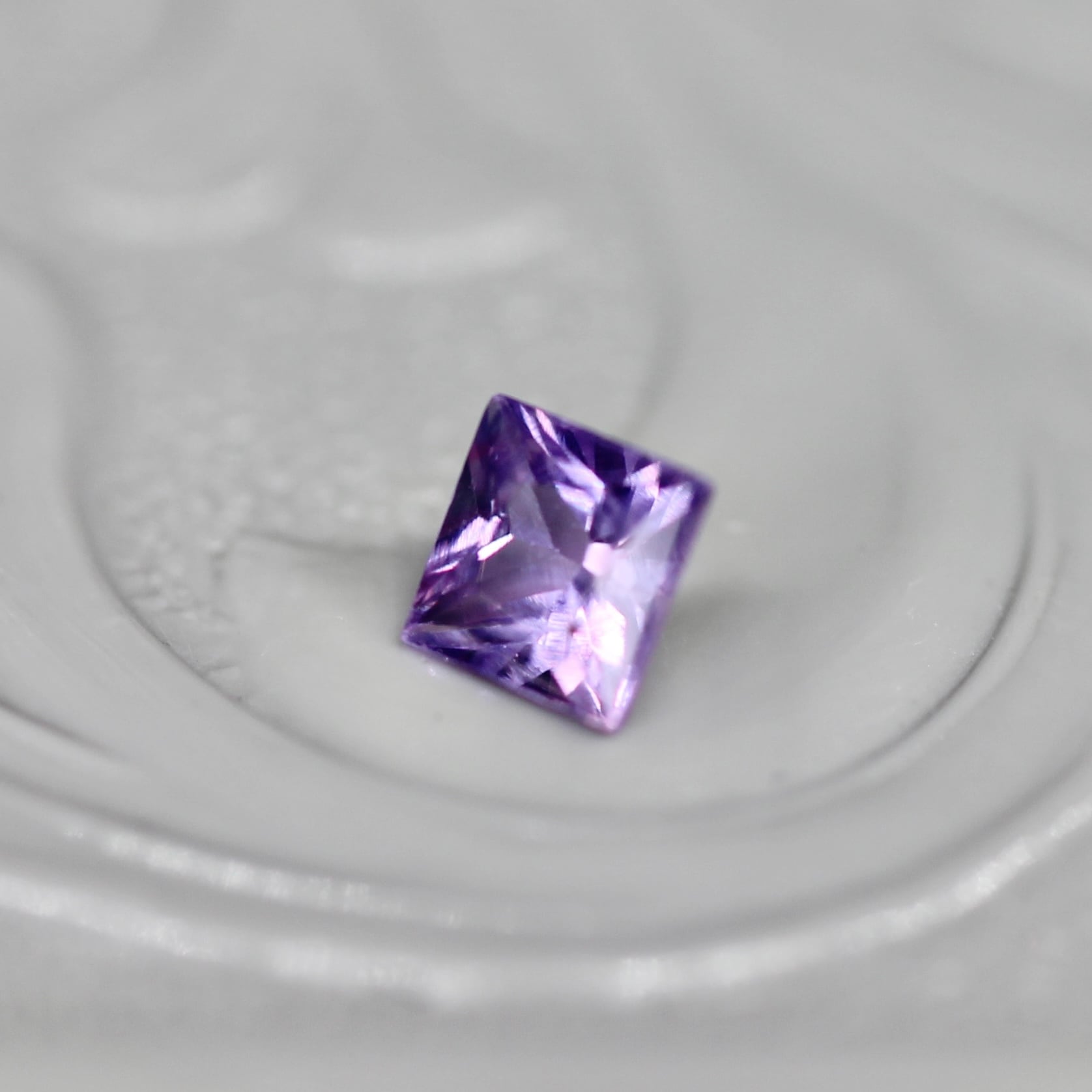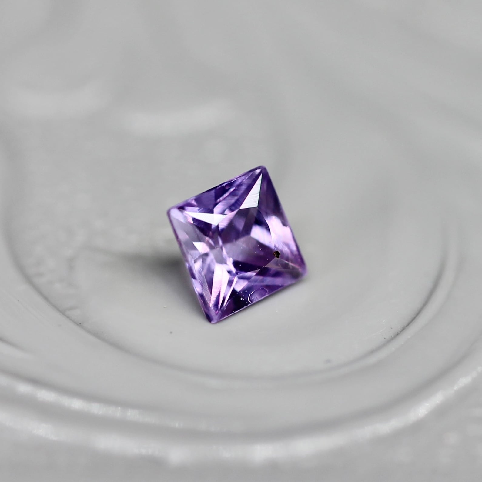 ラベンダーカラーのプリンセスカットのサファイアです。