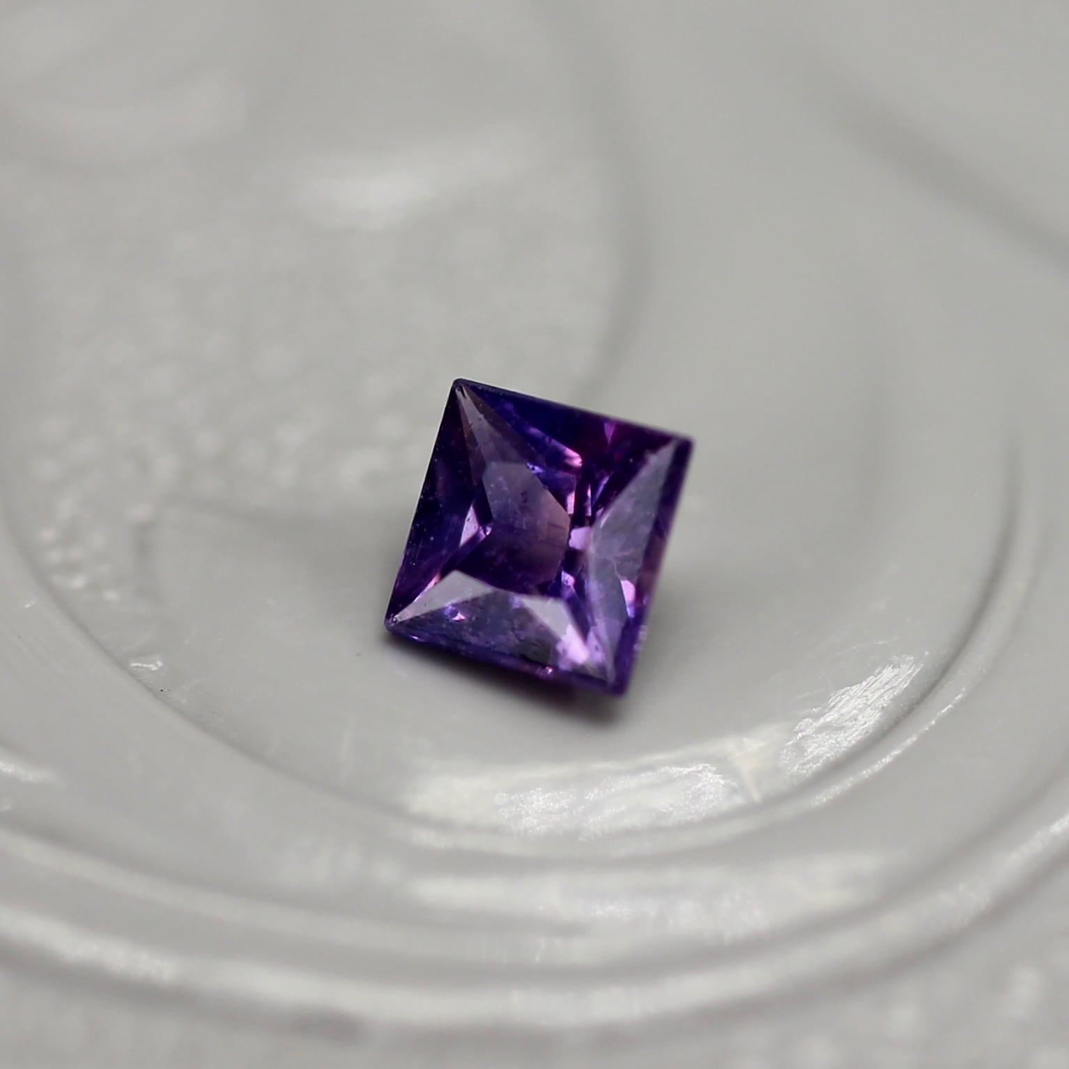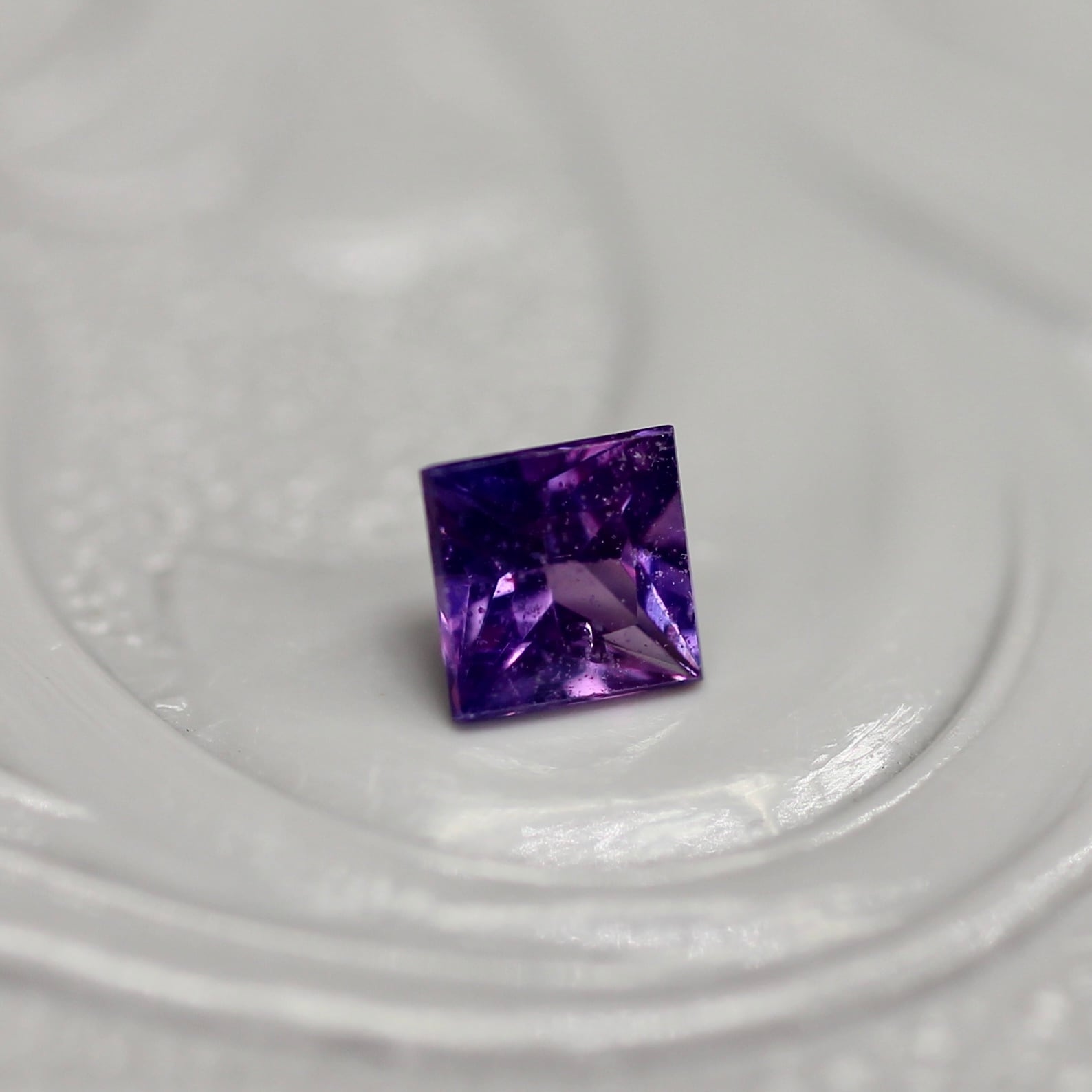 深く色づいたバイオレットカラーのプリンセスカットサファイアです。