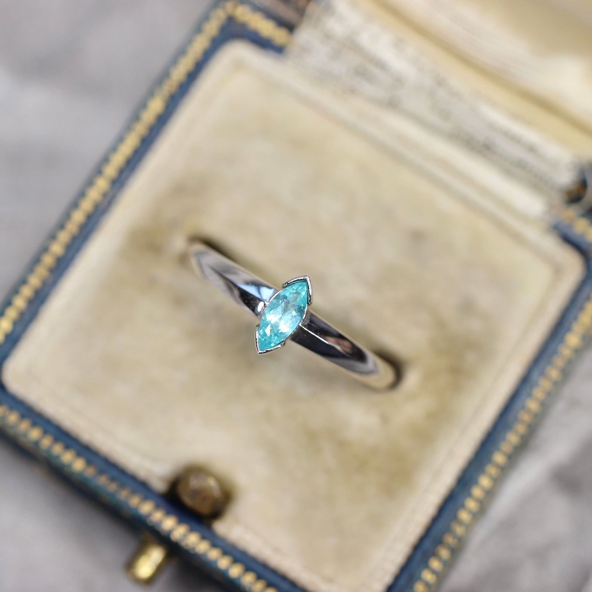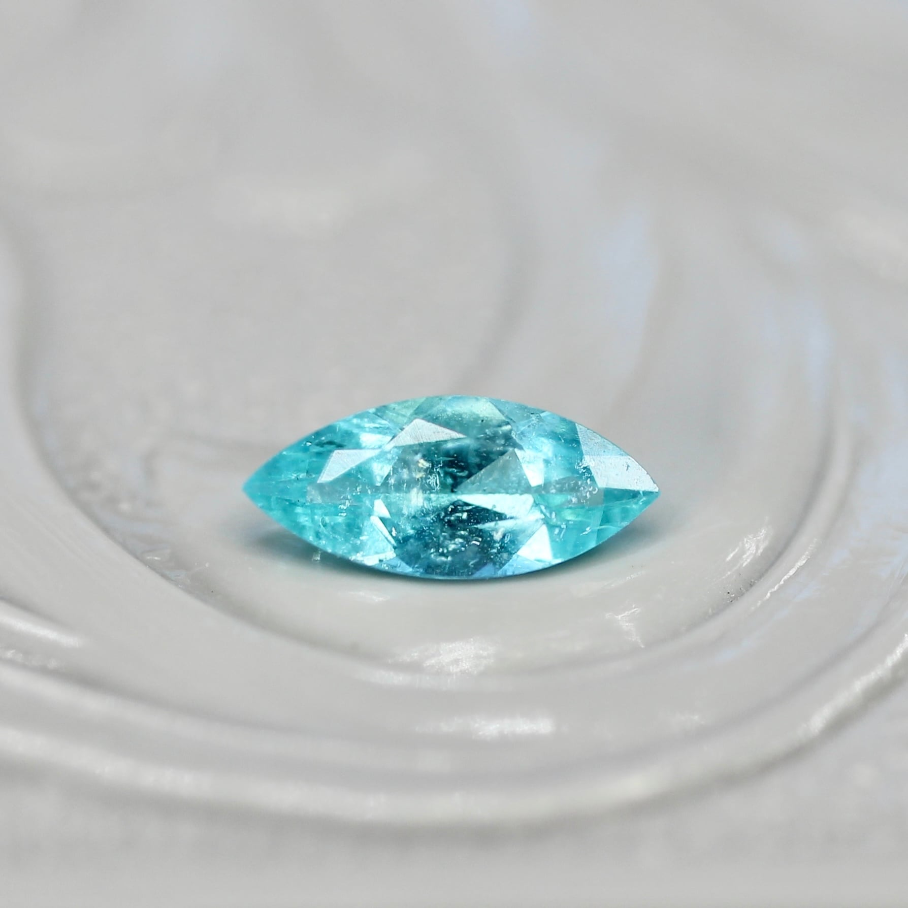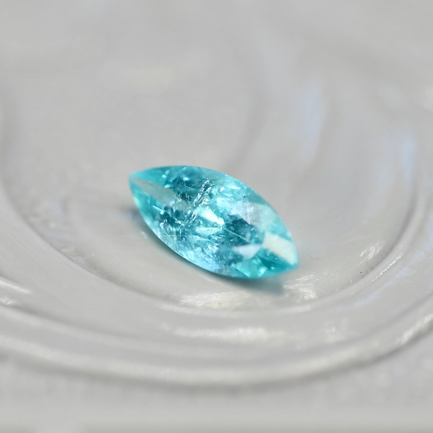 ブラジル産の特徴でもあるネオンブルーがとても美しく、シャープでスタイリッシュな印象のマーキスカットのパライバトルマリンです。