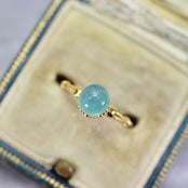 内側からほんのりと光を湛えたようなグリーンブルーが魅力のカボションカットのグランディディエライトです。流れるようなテクスチャが薄く入り、まるで静かにたゆたう水の流れを感じさせます。