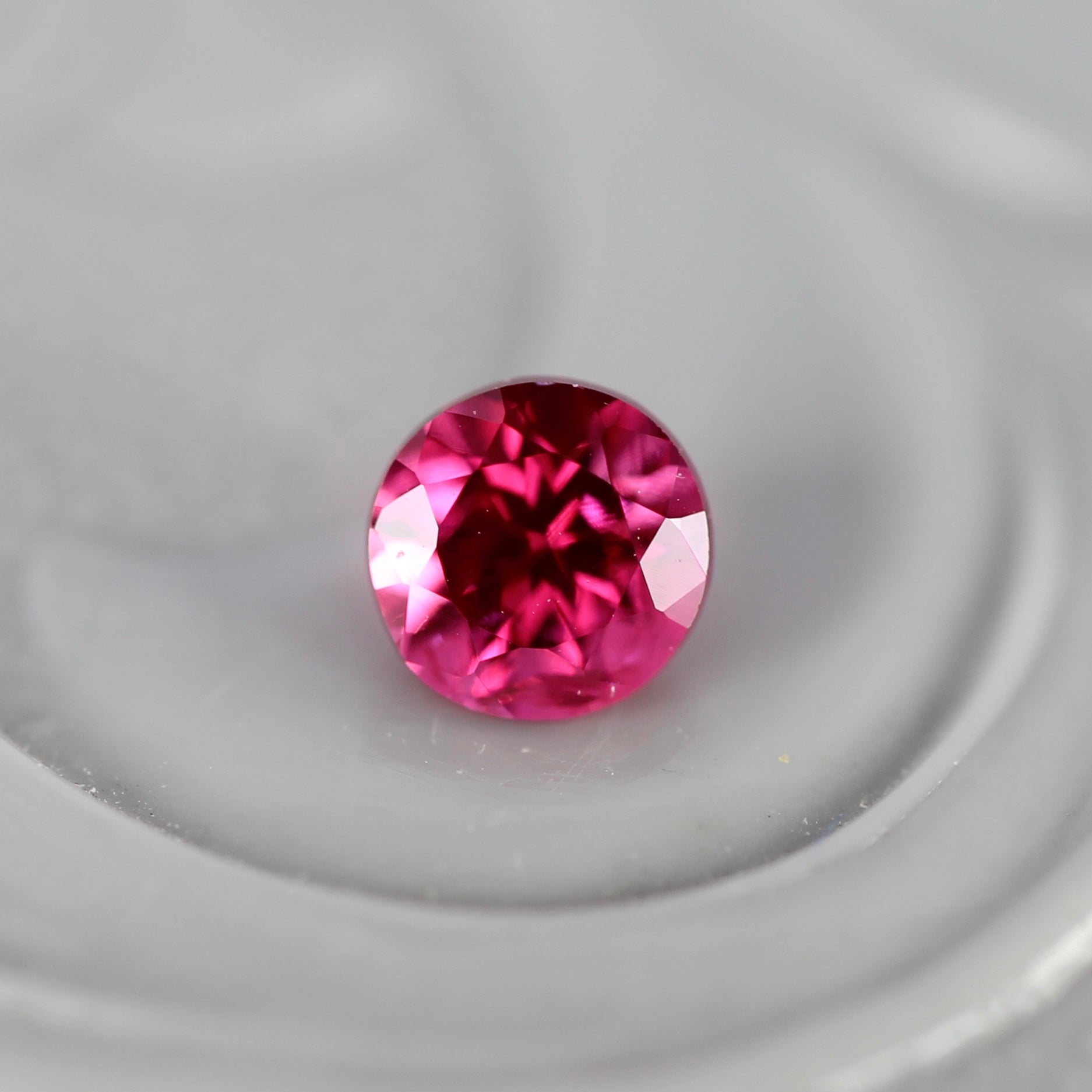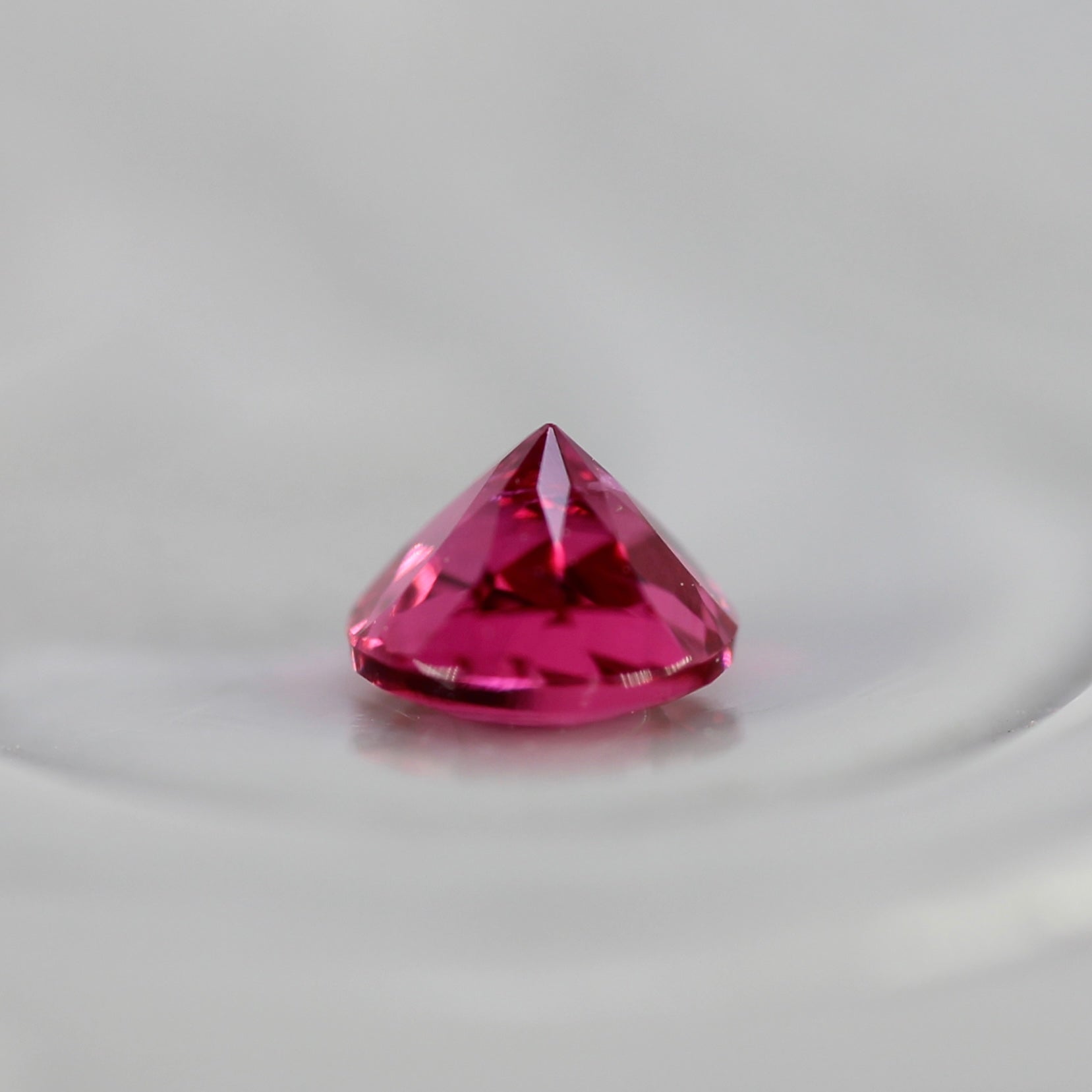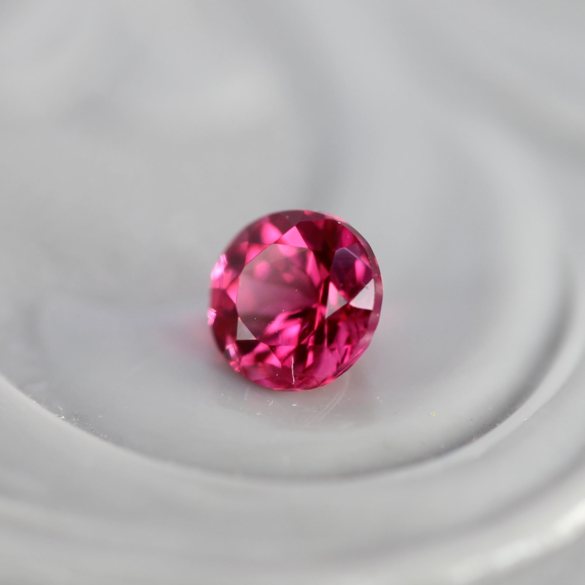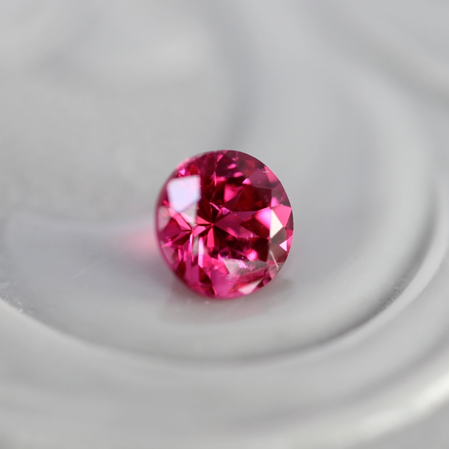 深みのあるビビットカラーが目を惹く、ラウンドカットのピンクスピネルです。艶やかなピンクカラーの鮮やかさが印象的です。