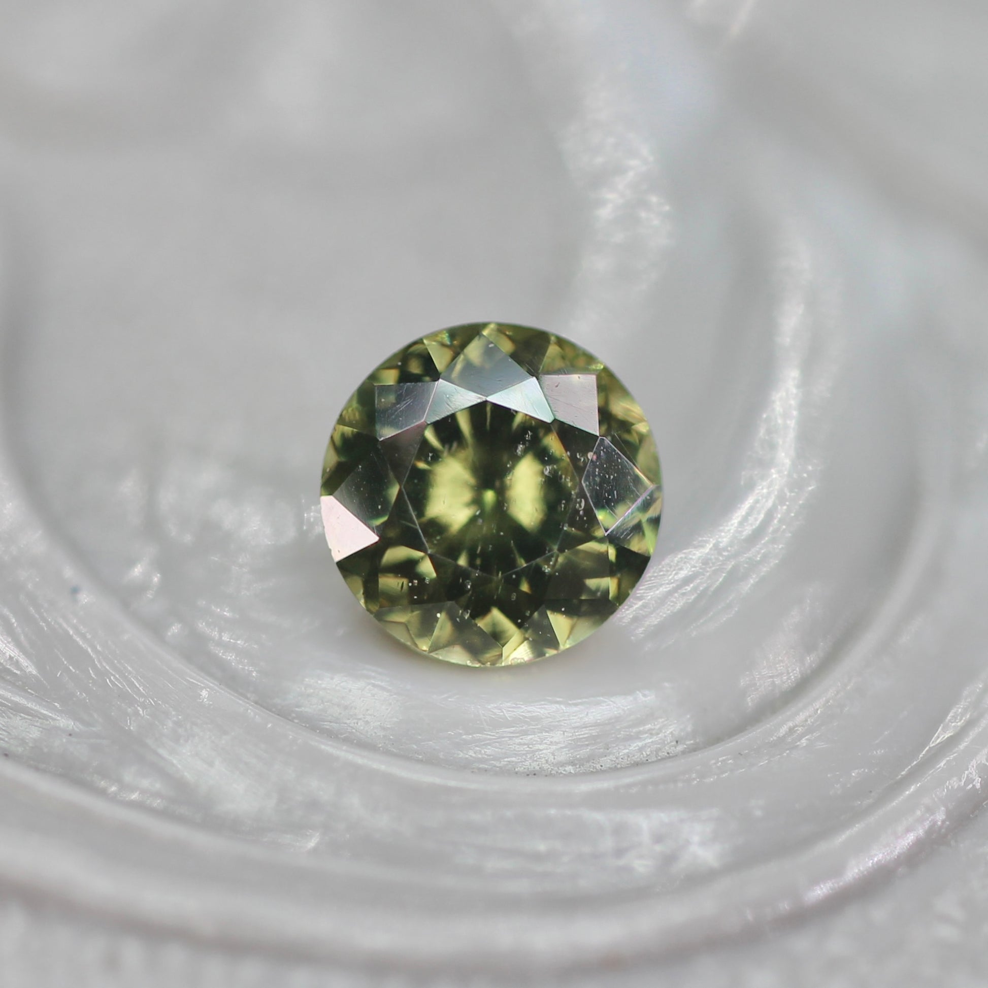グリーンジルコン 0.39ct ラウンドカット 3.9mm×3.9mm×2.7mm【MJ2765】