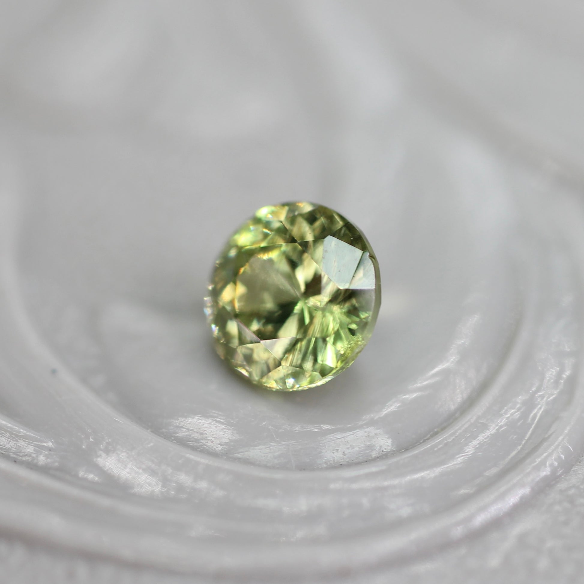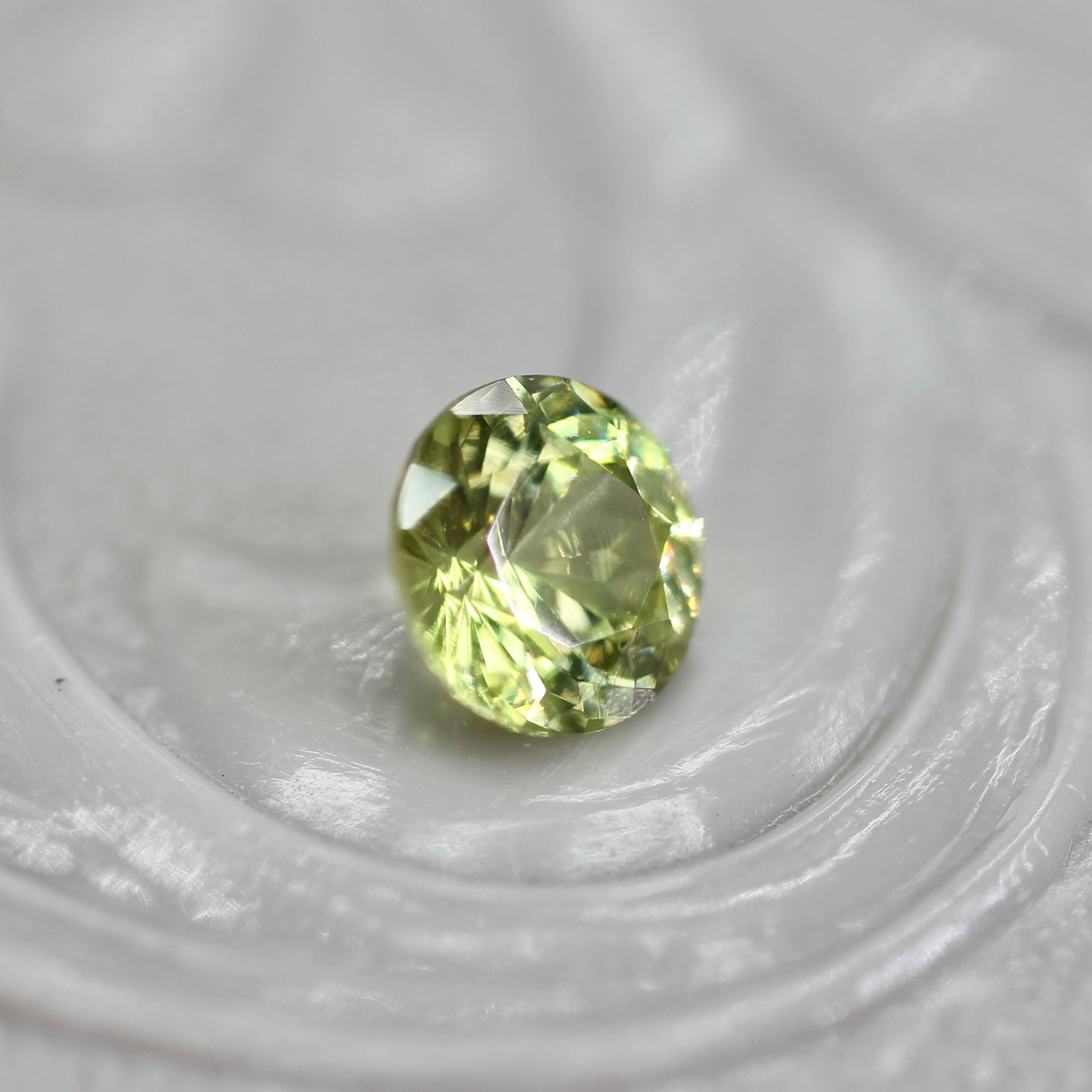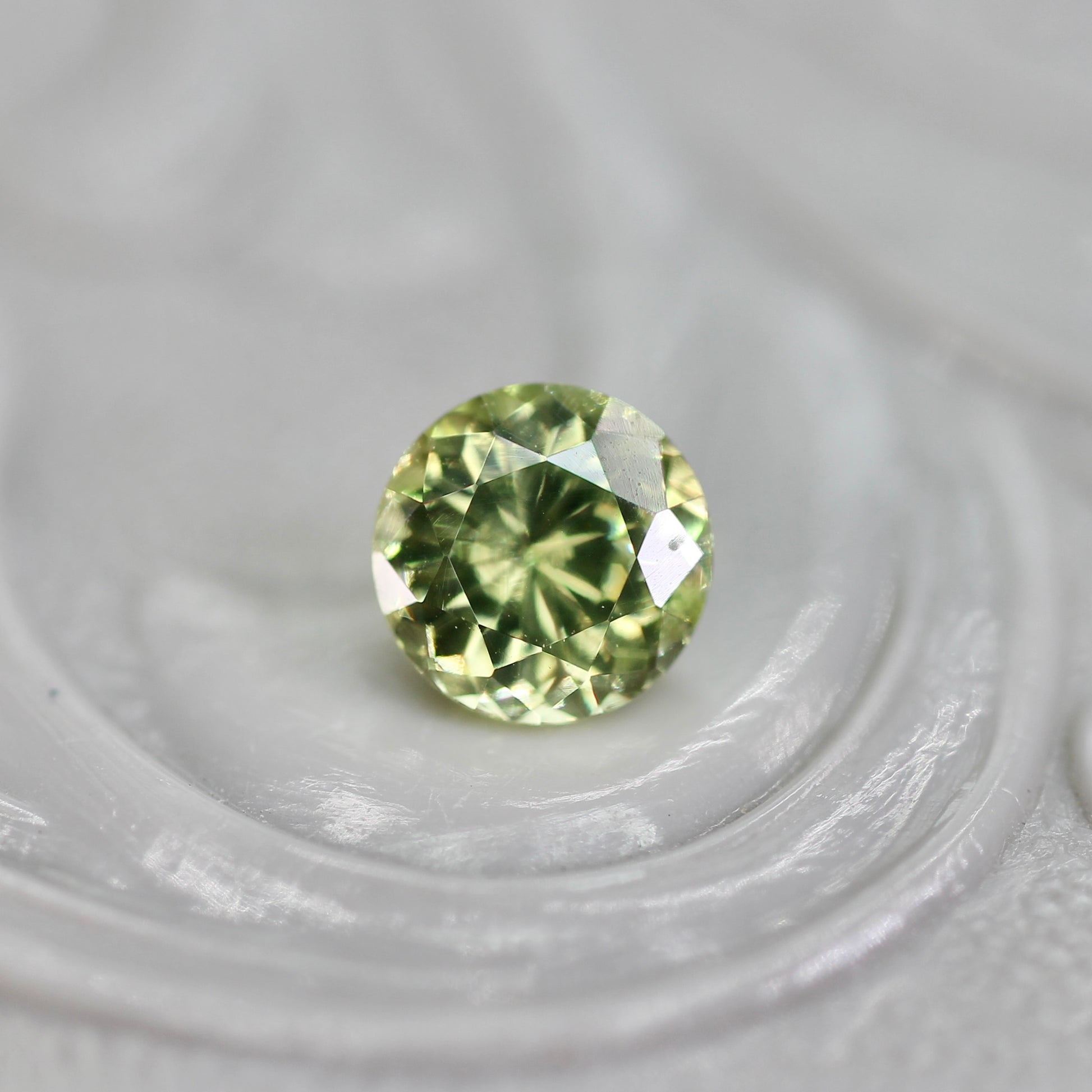 クリーミーで優しい色合いのライトグリーンが魅力的なラウンドカットのジルコンです。