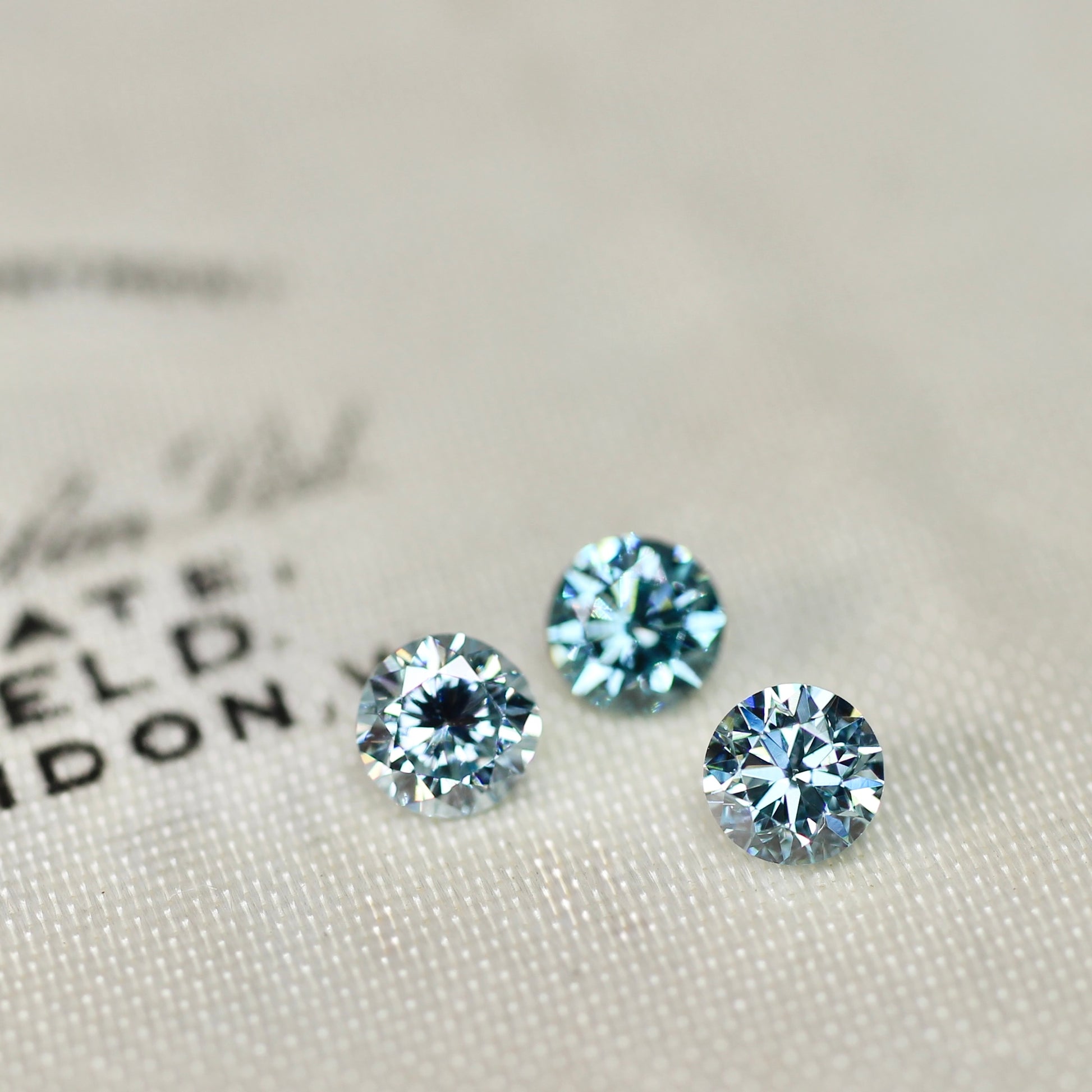 アイスブルーダイヤモンド 0.18ct ラウンドブリリアントカット 3.4mm×3.4mm×2.2mm【MJ2814】
