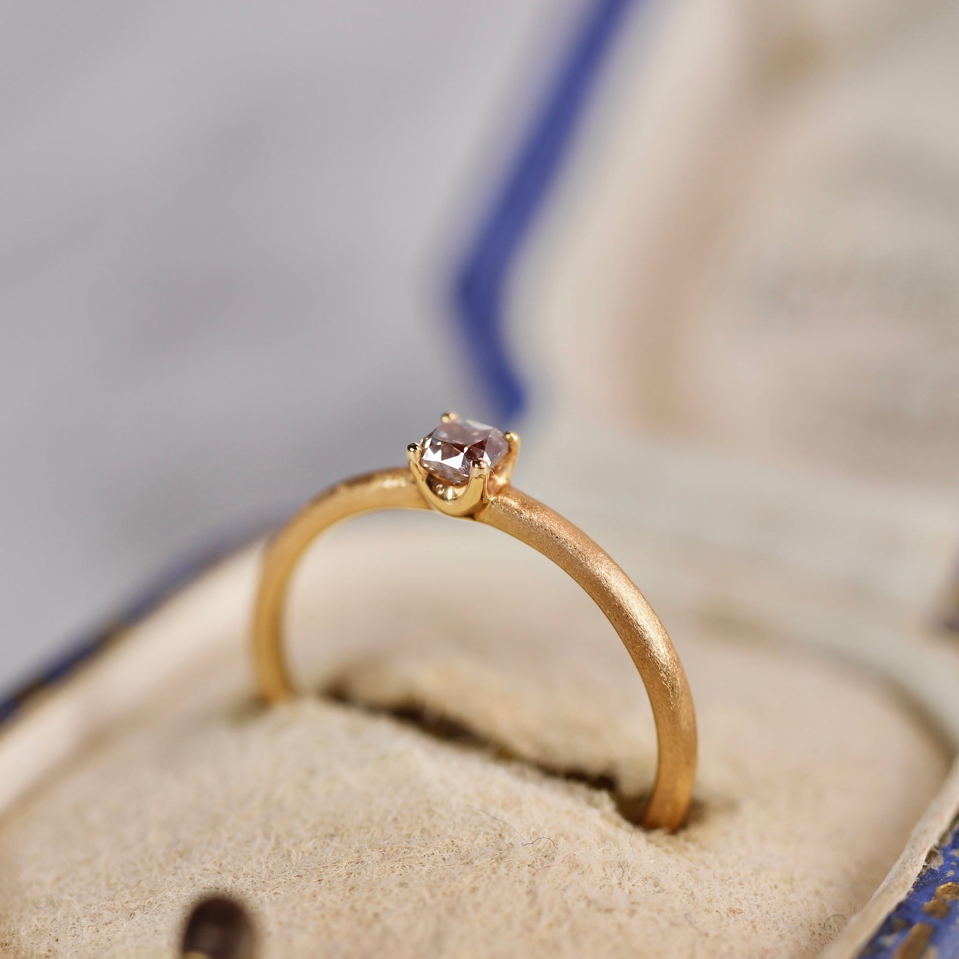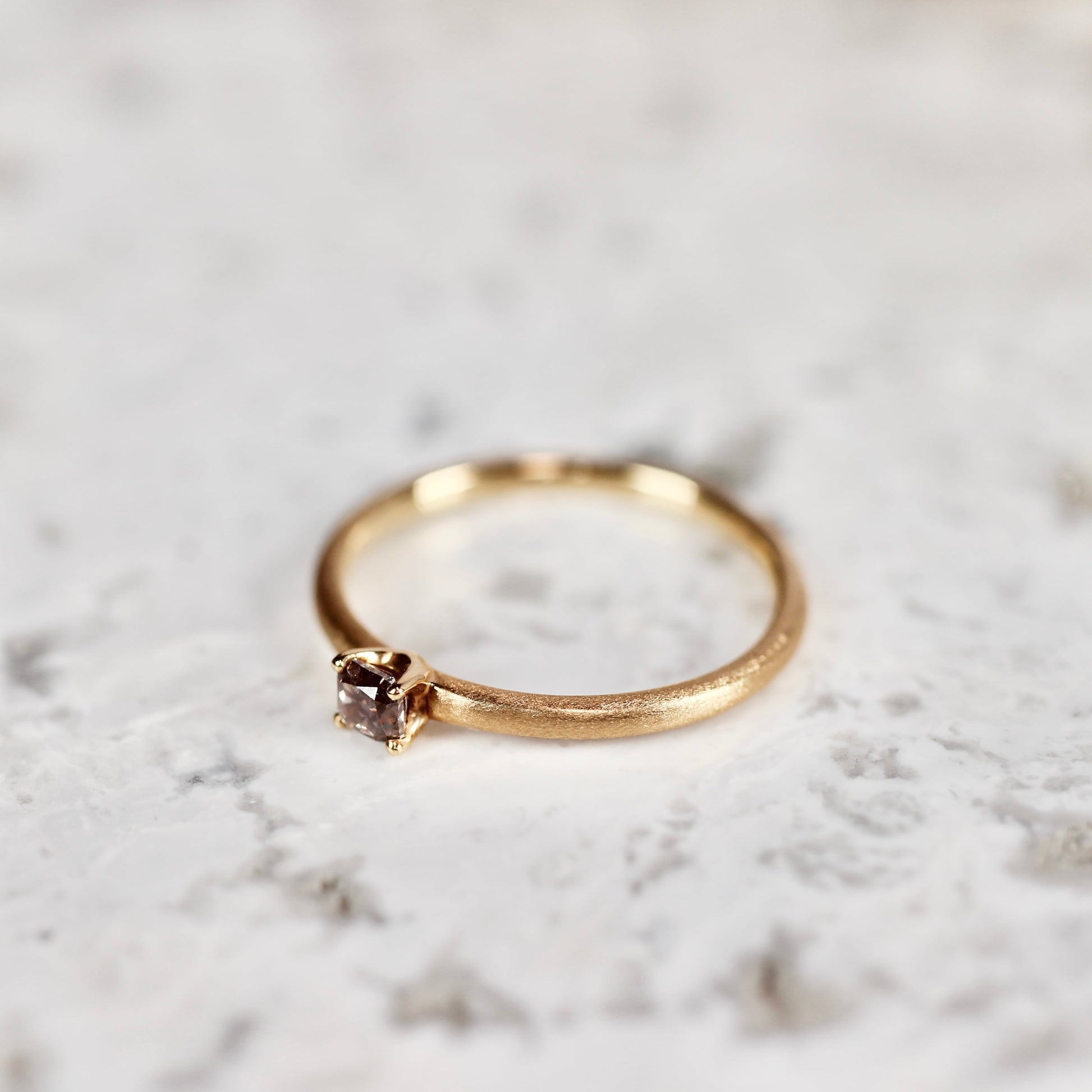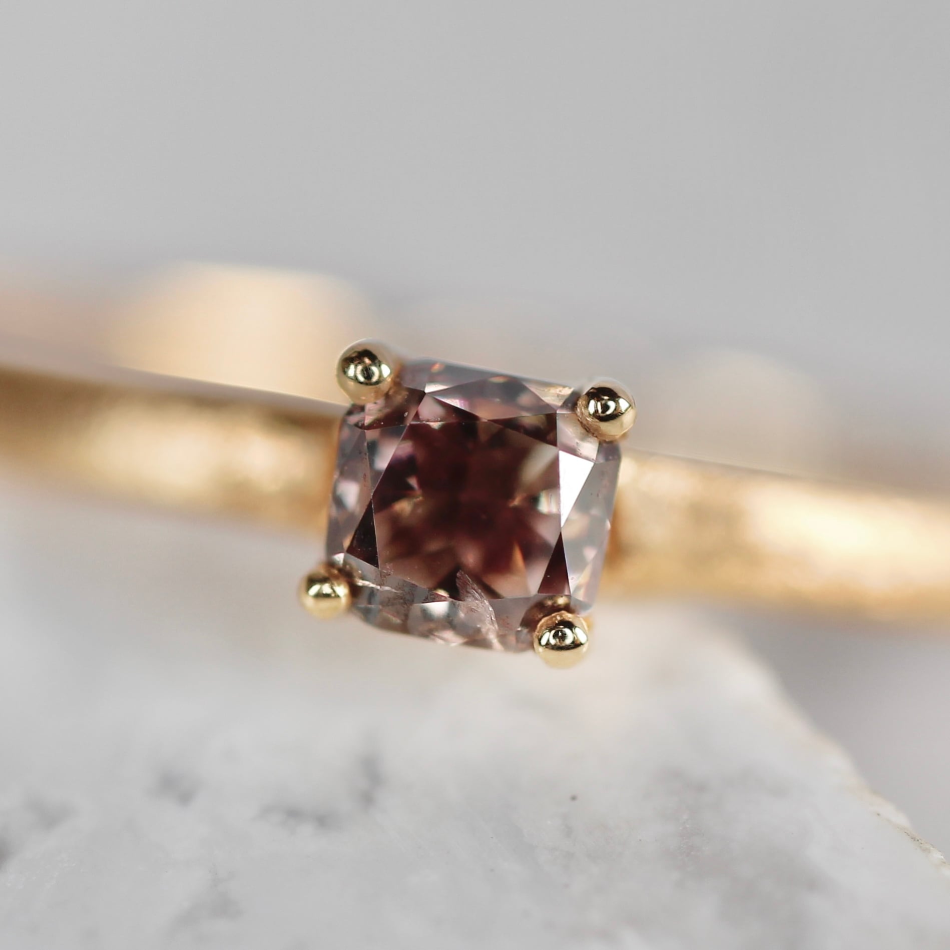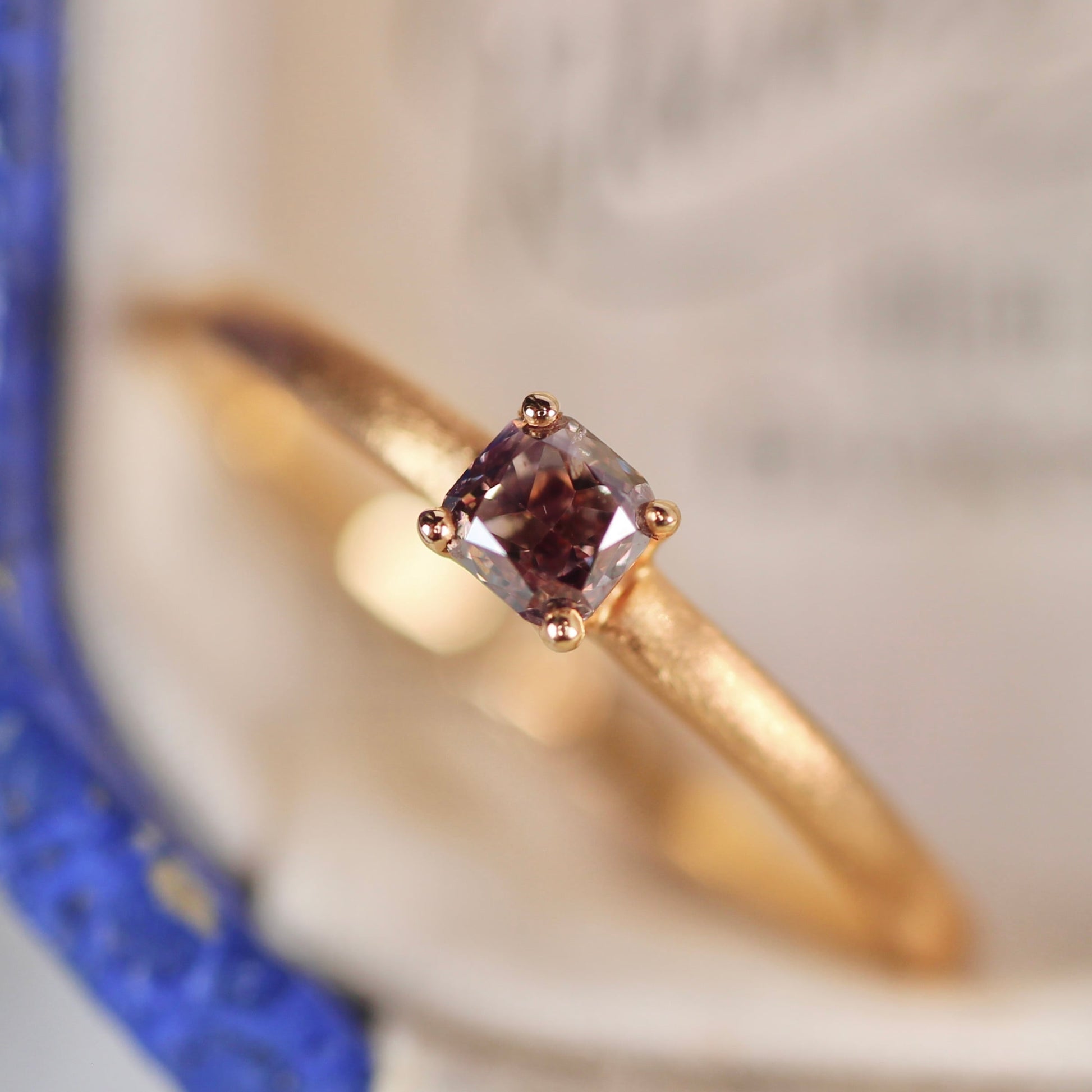ピンクブラウンダイヤモンド 0.17ct K18PG クッションカット 4本爪(立て爪)×プレーンアーム(マット) 【MJ2836】