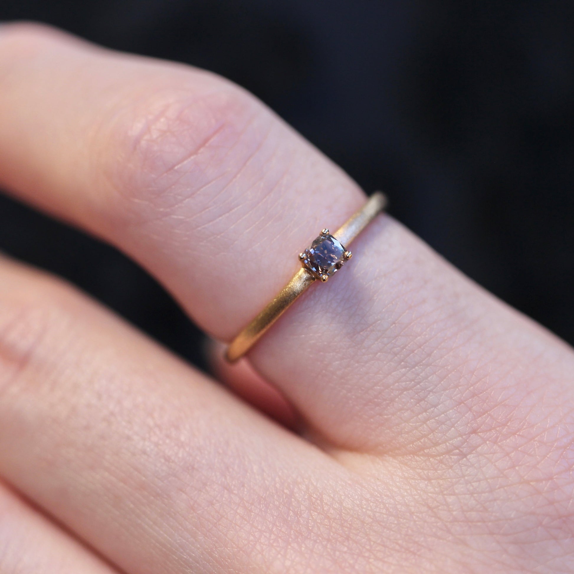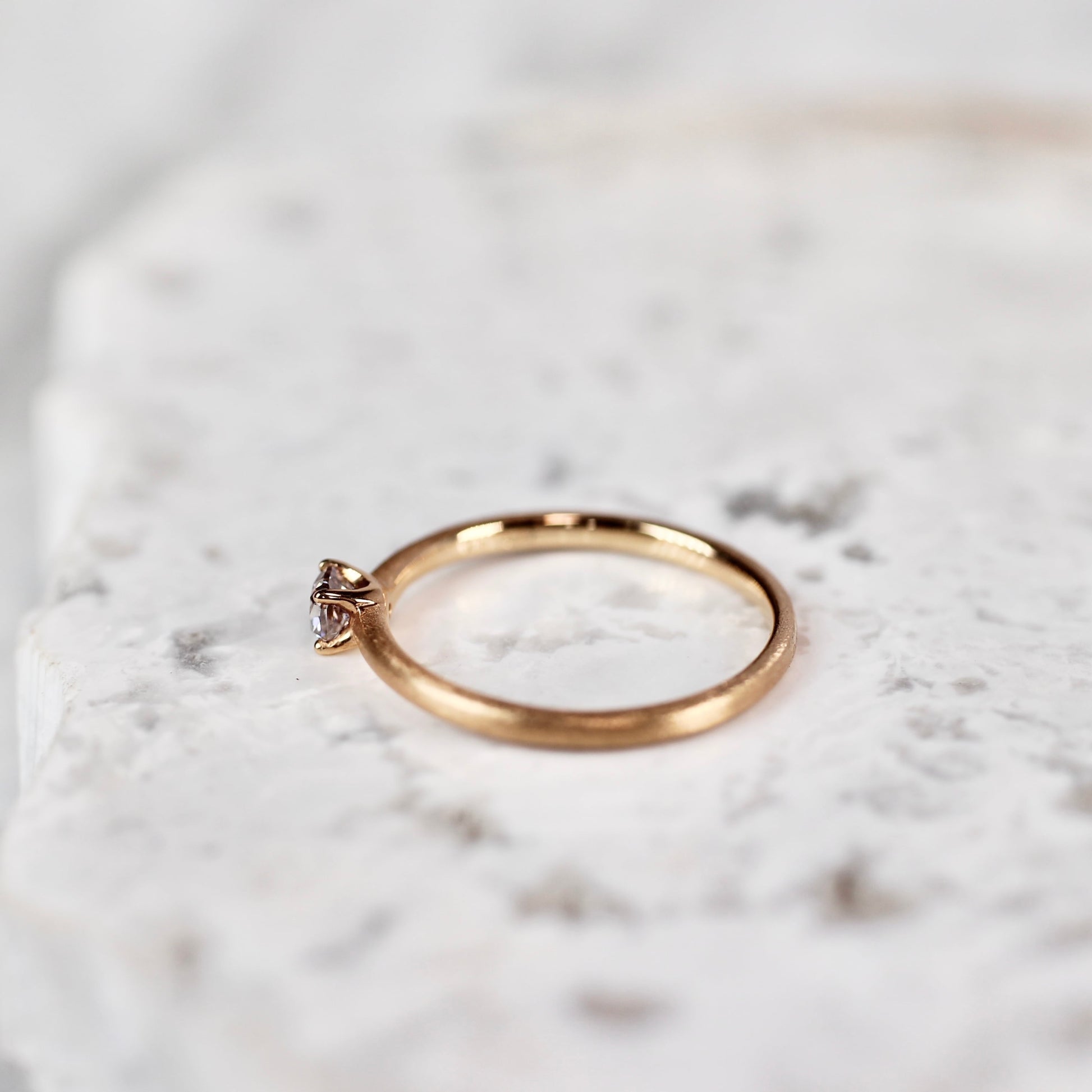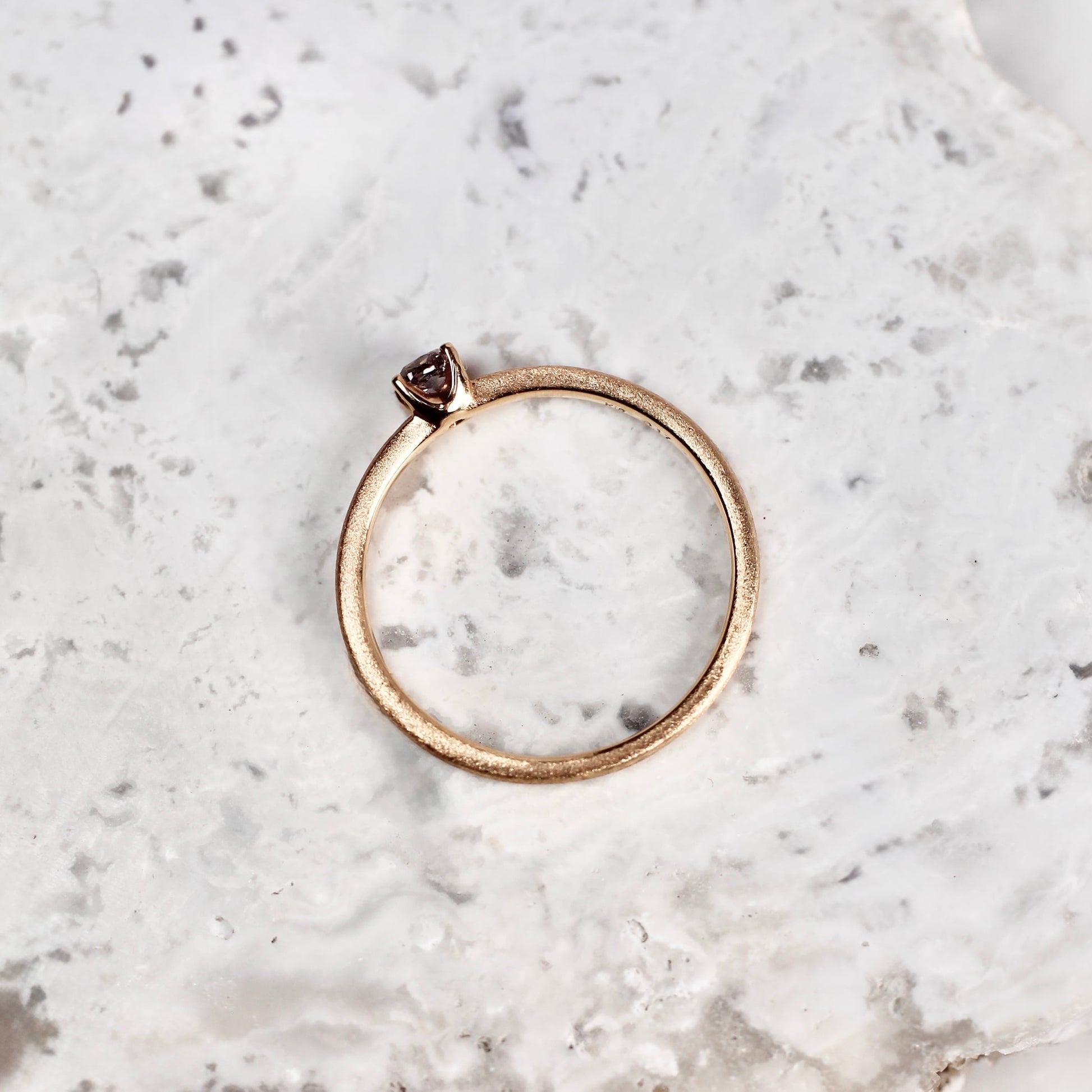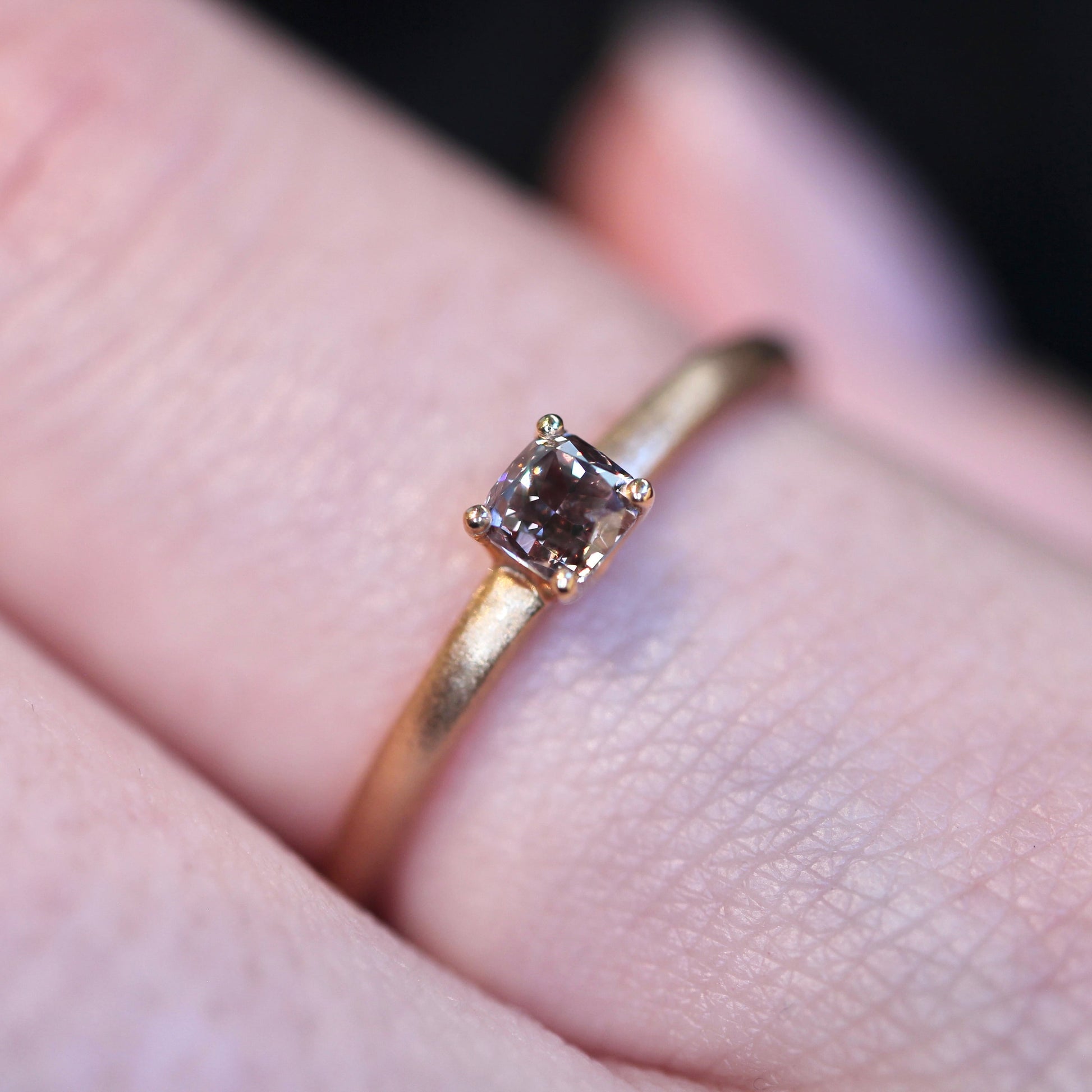 ピンクブラウンダイヤモンド 0.17ct K18PG クッションカット 4本爪(立て爪)×プレーンアーム(マット) 【MJ2836】