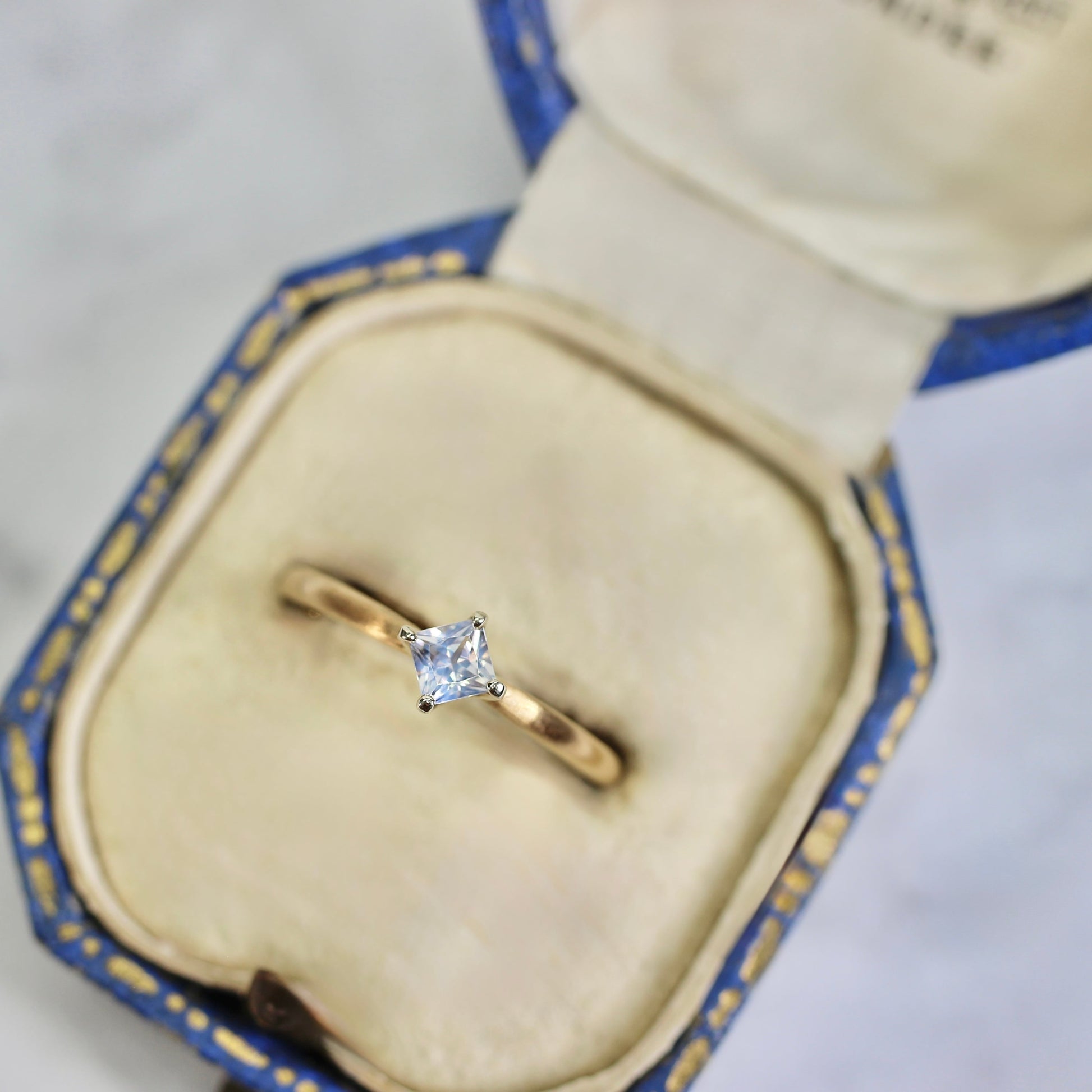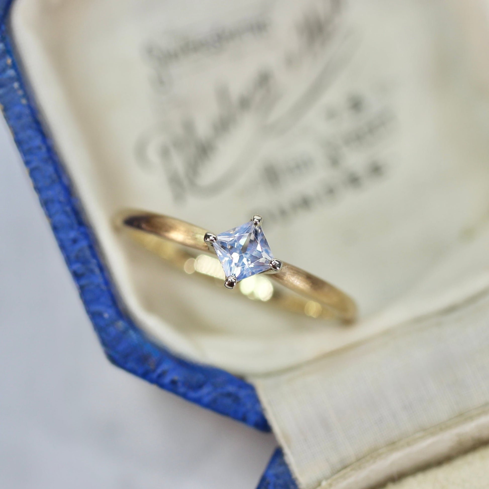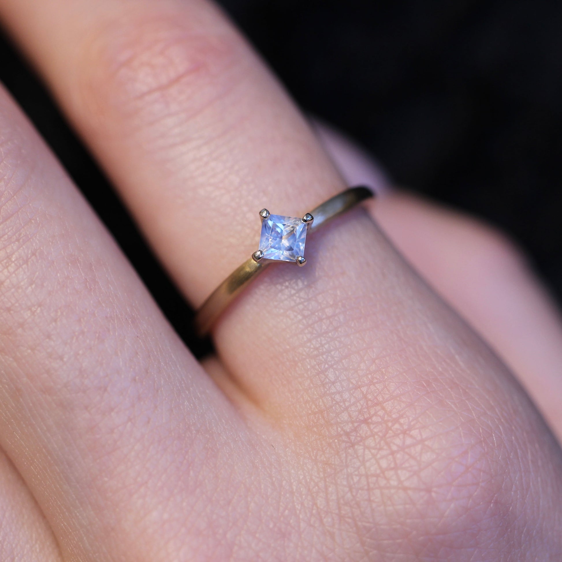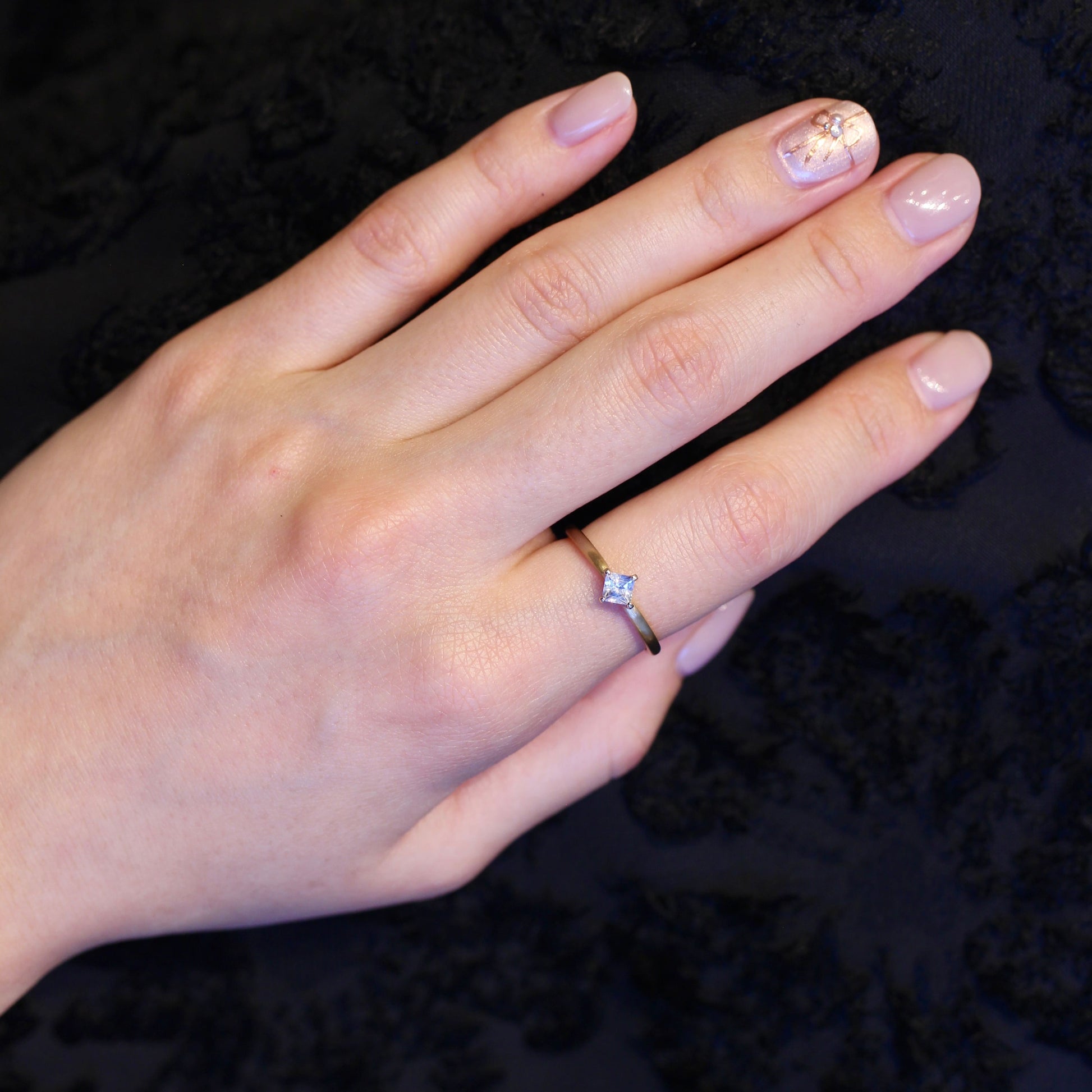 シルキーホワイトサファイア 0.3ct プリンセスカット K10WG×K10YG 4本爪(立て爪)×テーパーアーム(マット)【MJ2845】