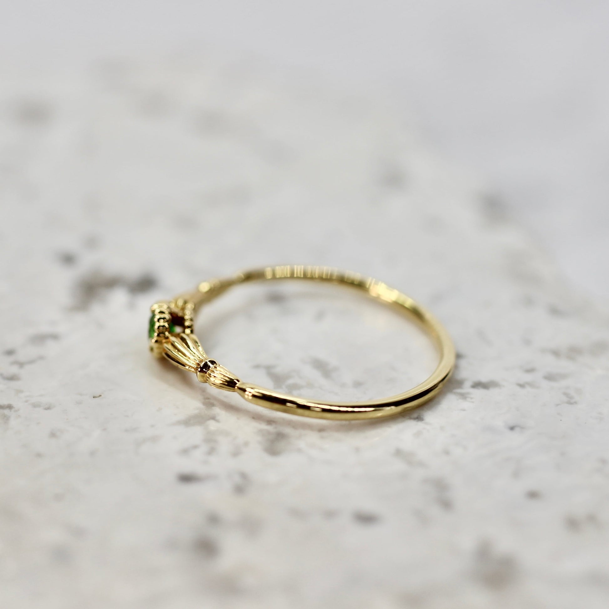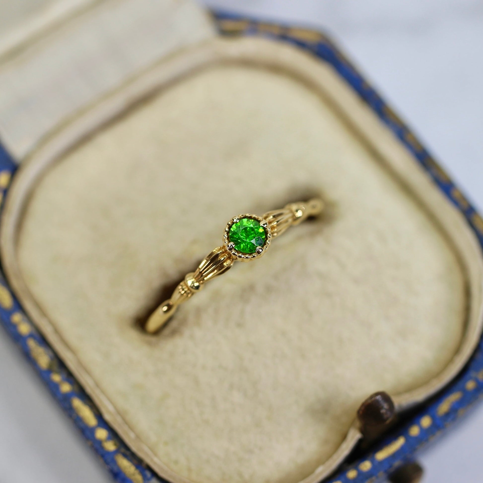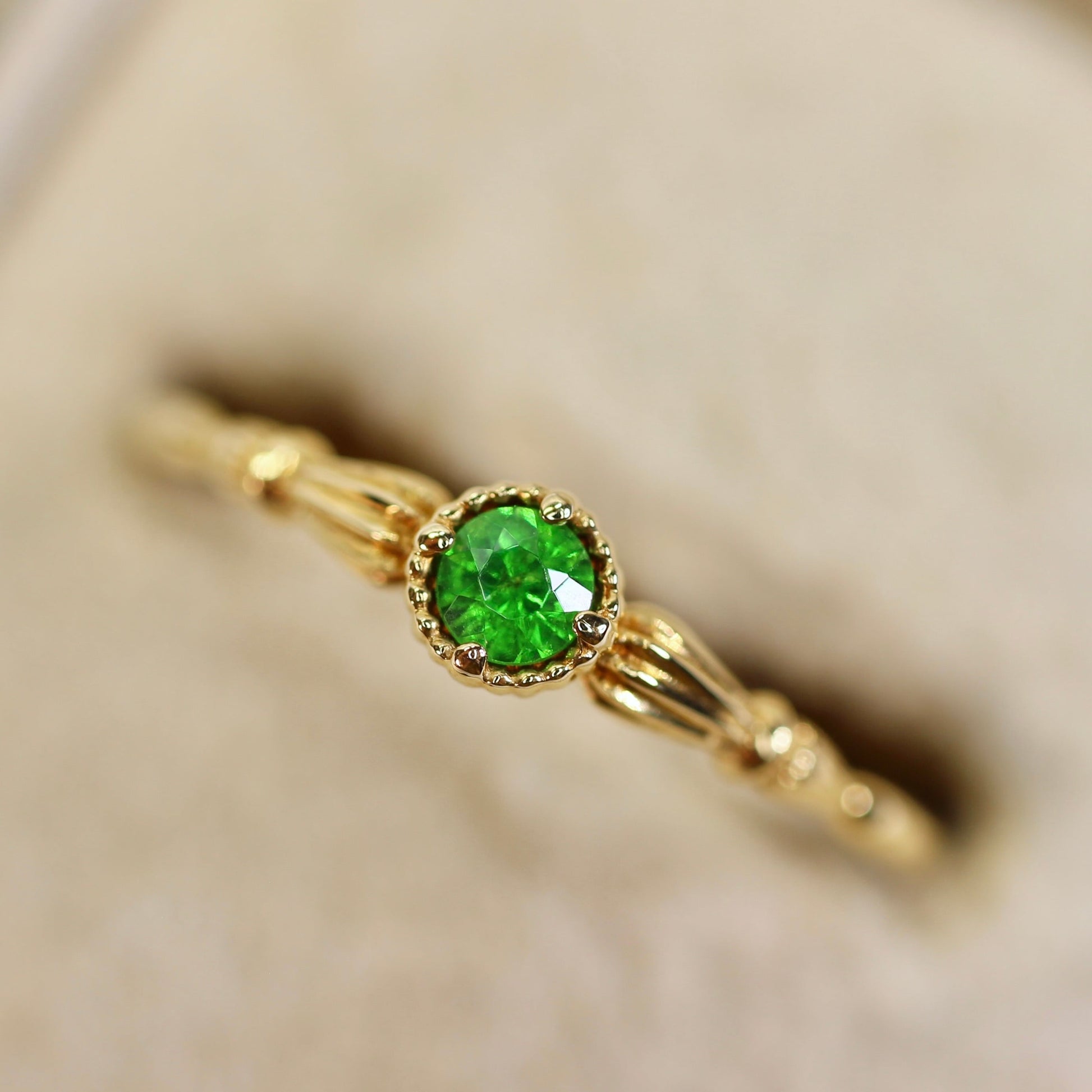 デマントイドガーネット 0.145ct ラウンドブリリアントカット K10YG ミルフレーム×アンティークアーム【MJ2846】