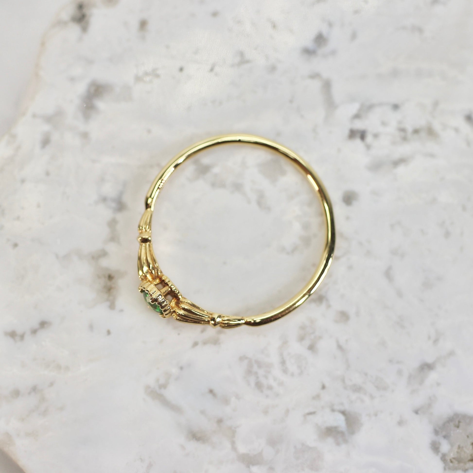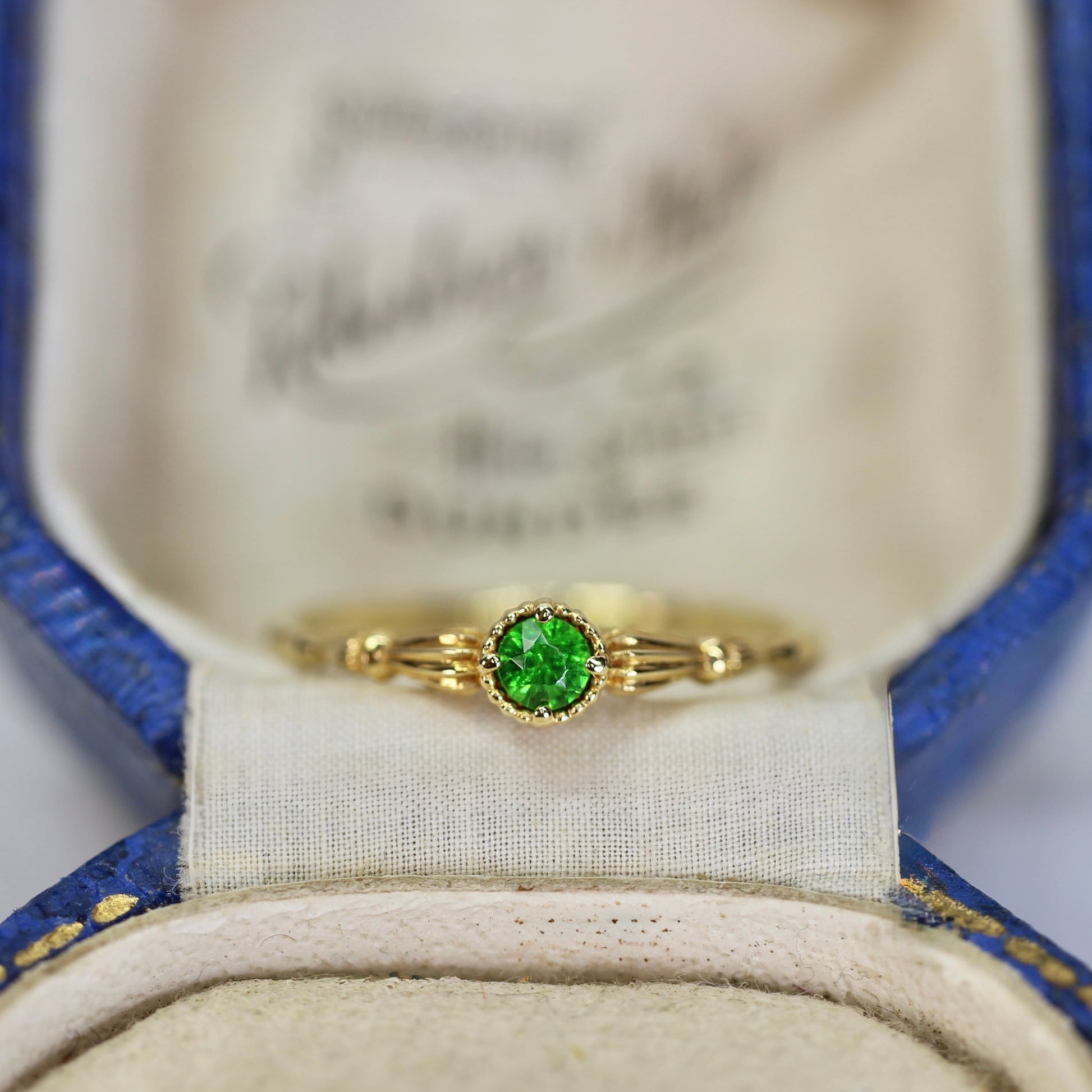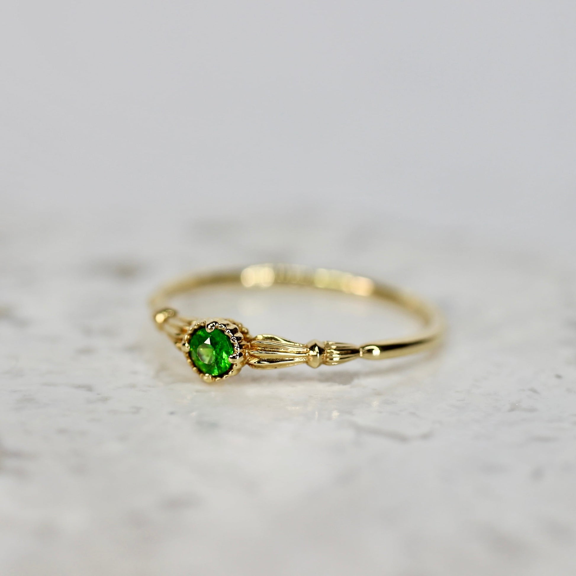 デマントイドガーネット 0.145ct ラウンドブリリアントカット K10YG ミルフレーム×アンティークアーム【MJ2846】