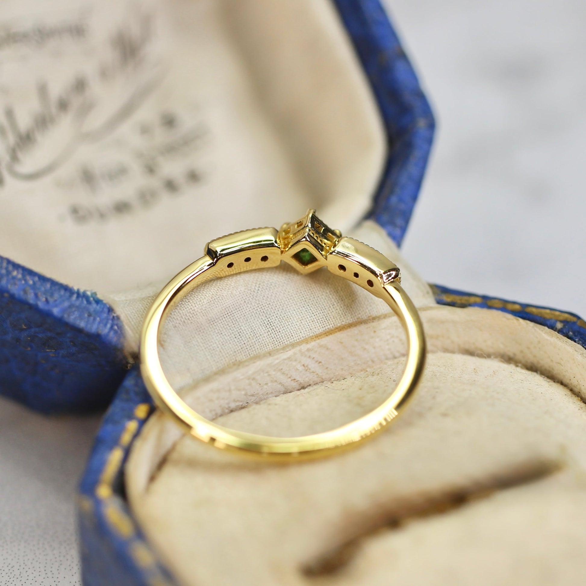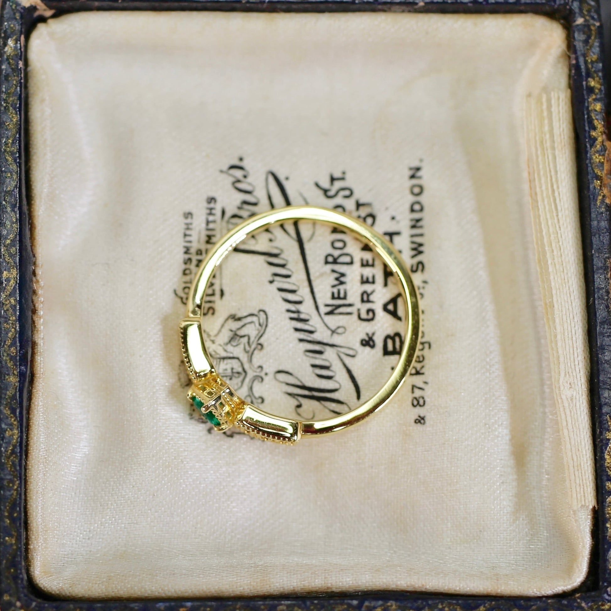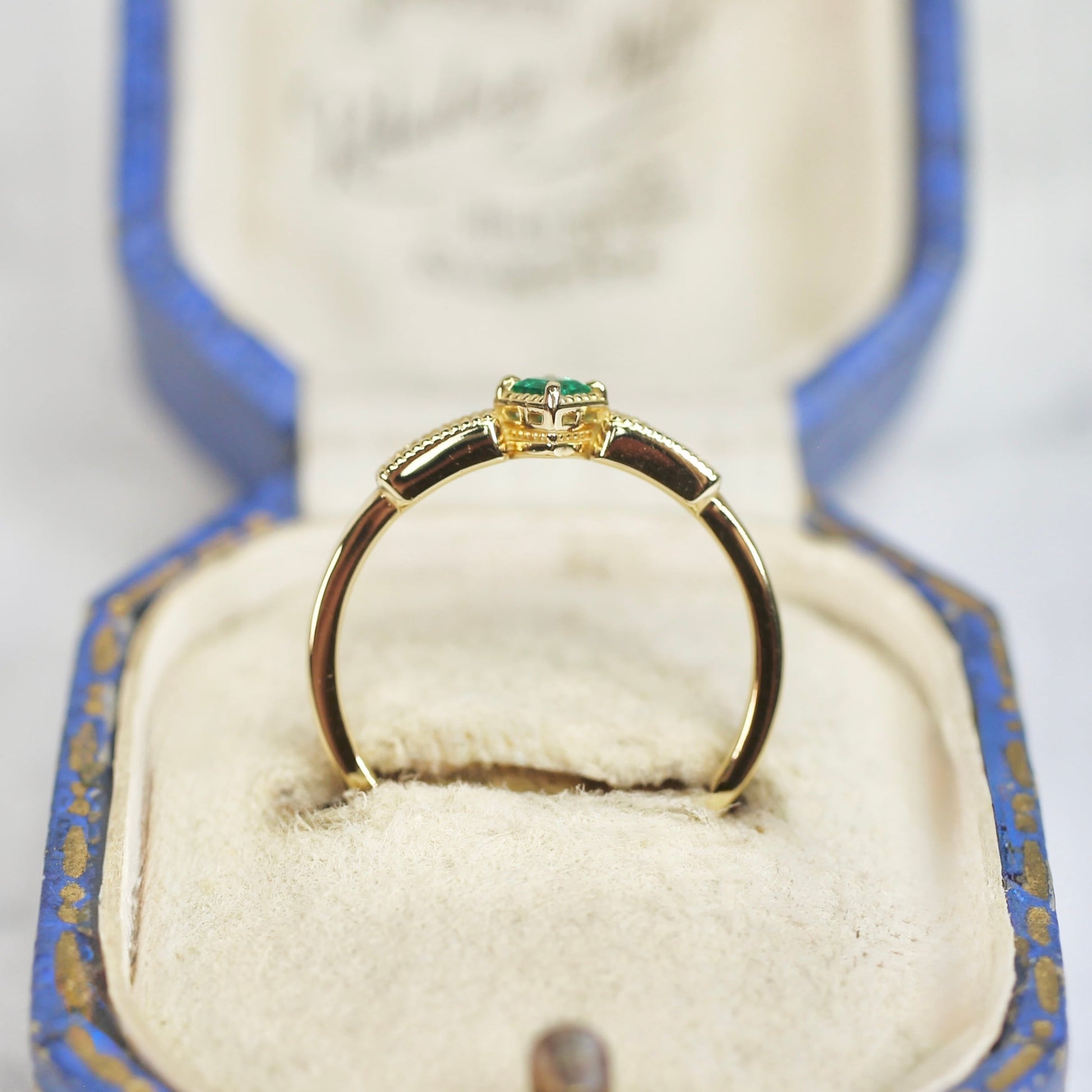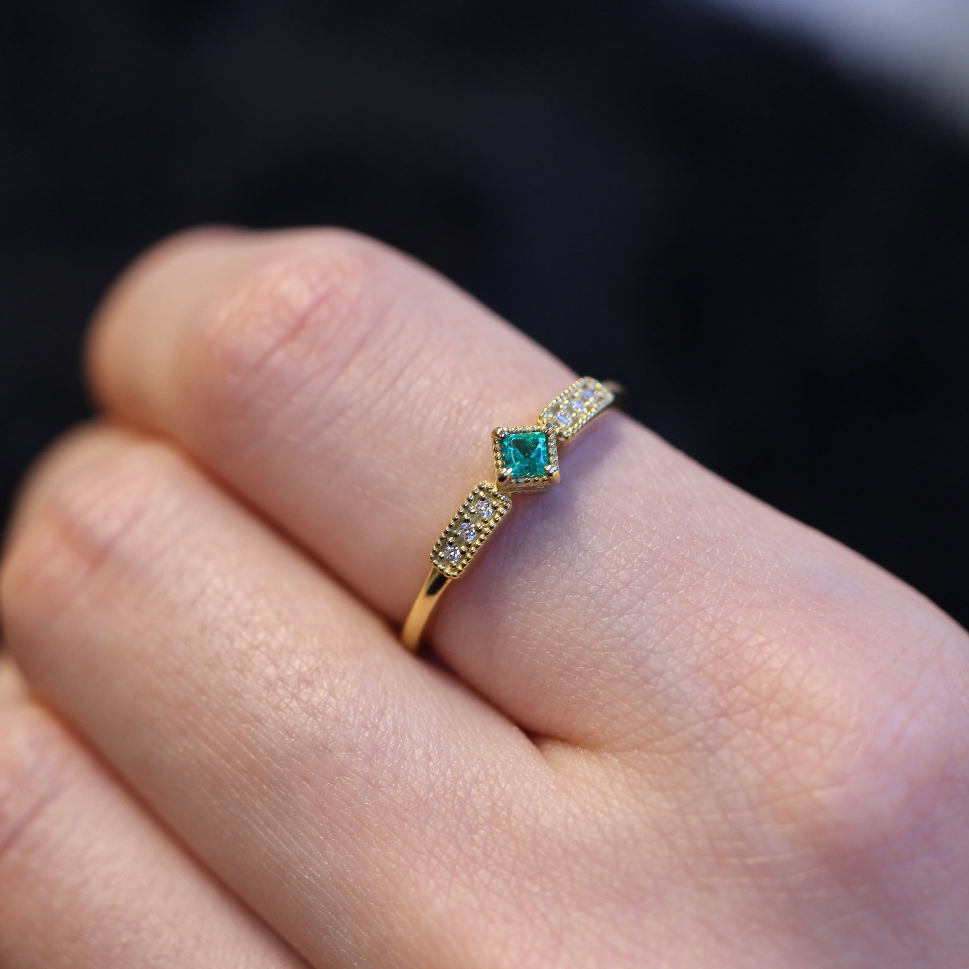 エメラルド 0.07ct ダイヤモンド 計0.03ct プリンセスカット K18YG ミルフレーム×シグナルアーム【MJ2848】