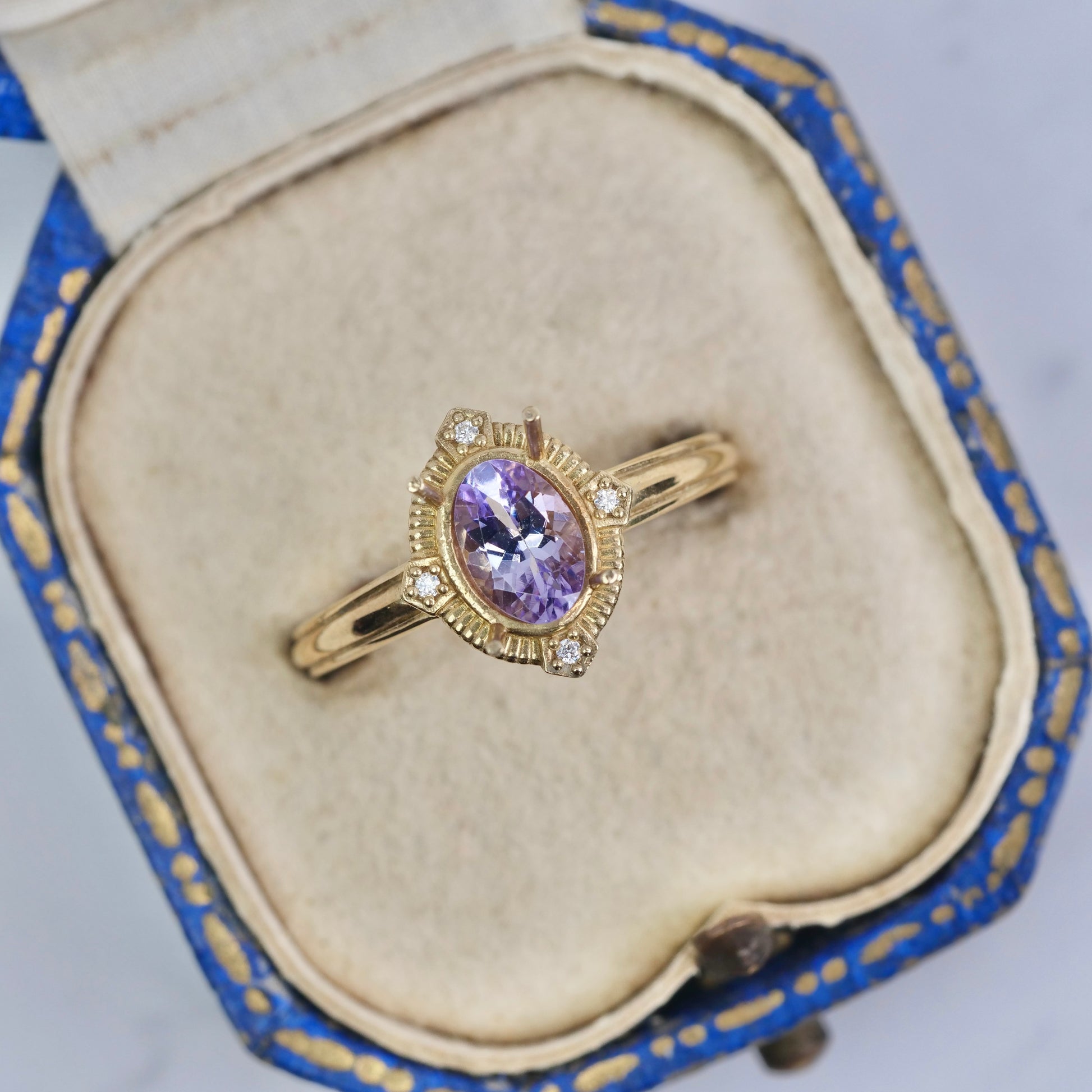 優しくラベンダーの香りが漂うような、ピンクパープルカラーが美しいオーバルカットのピンクゾイサイトです。
