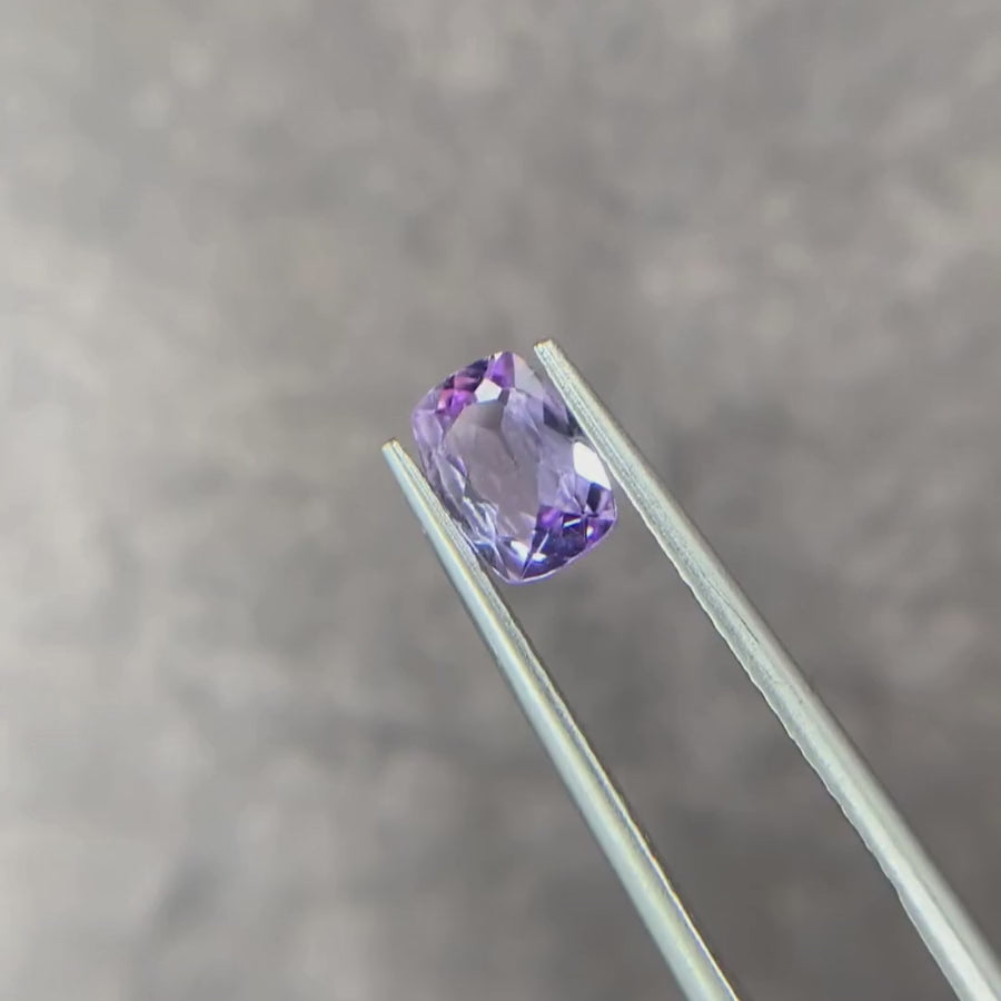 柔らかなライラックカラーの煌めきを湛えた、クッションミックスカットのピンクゾイサイトです。