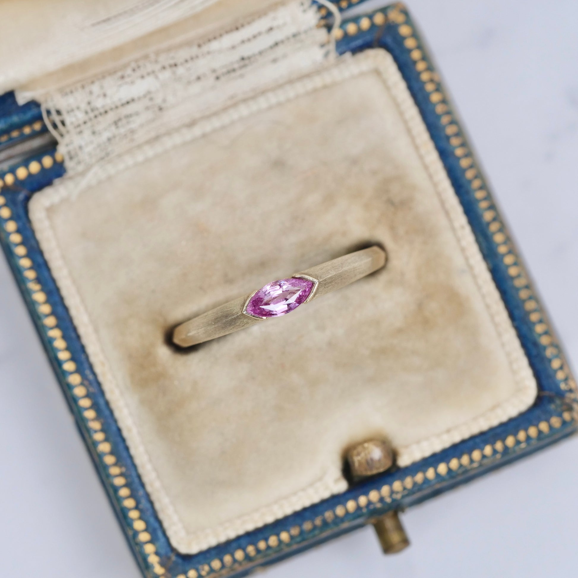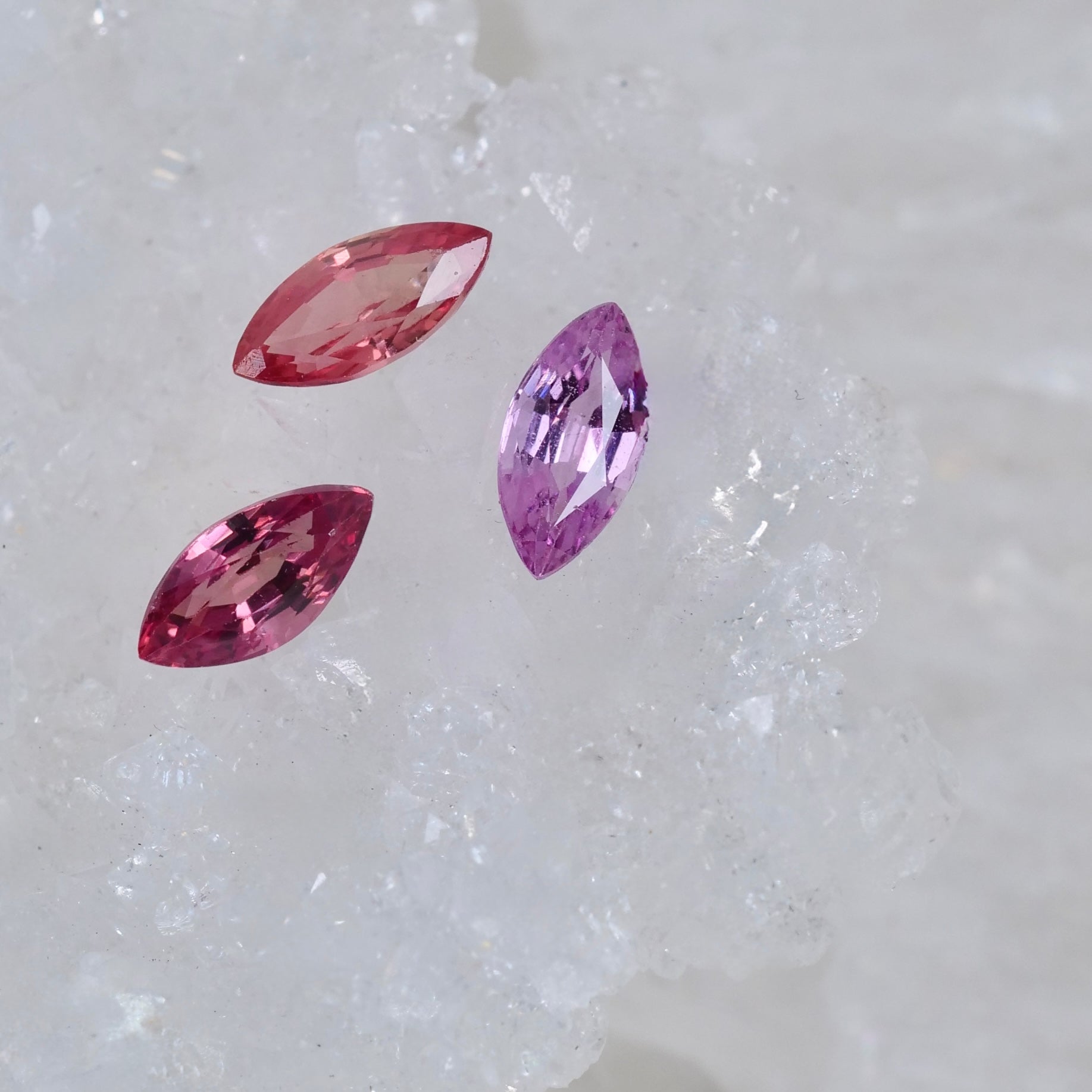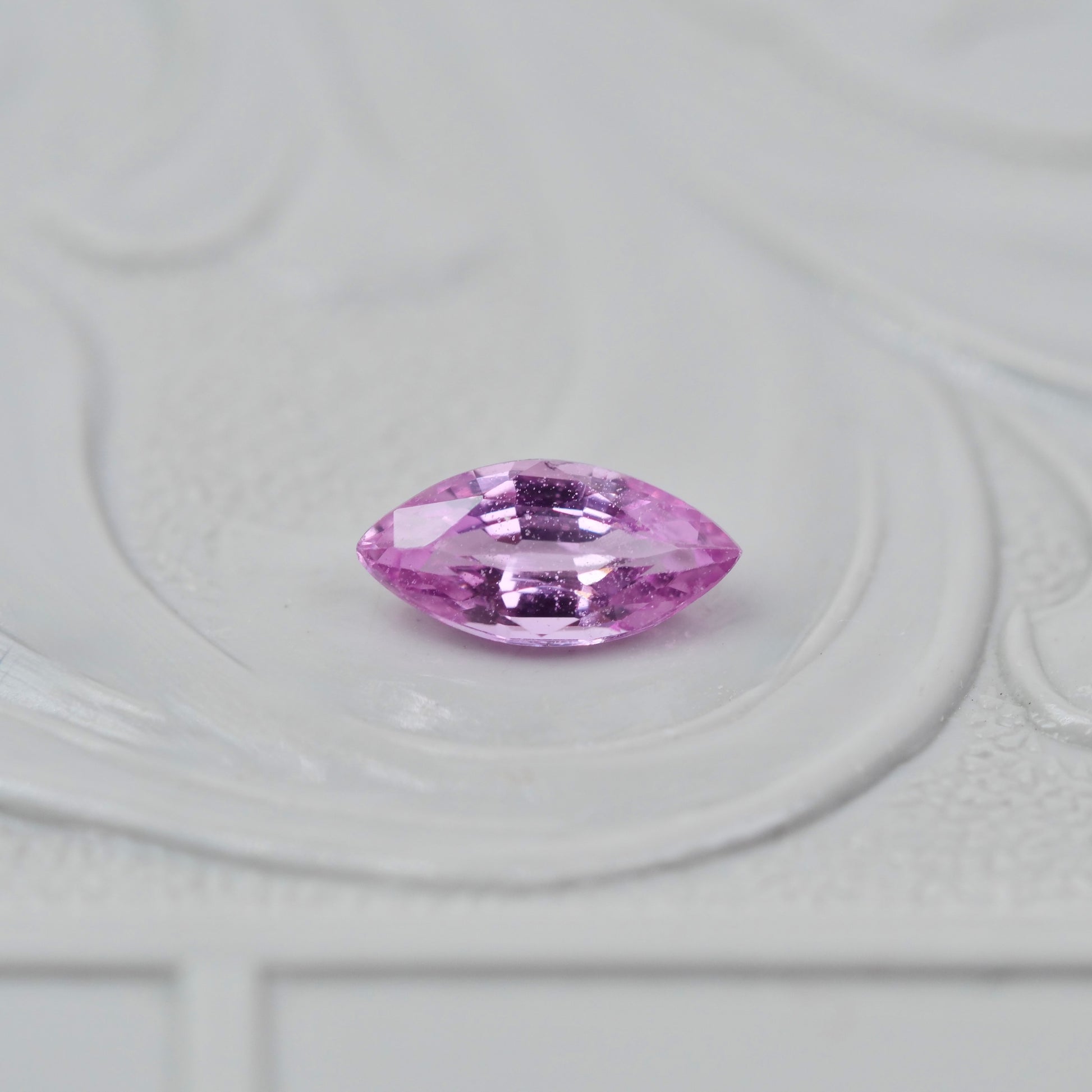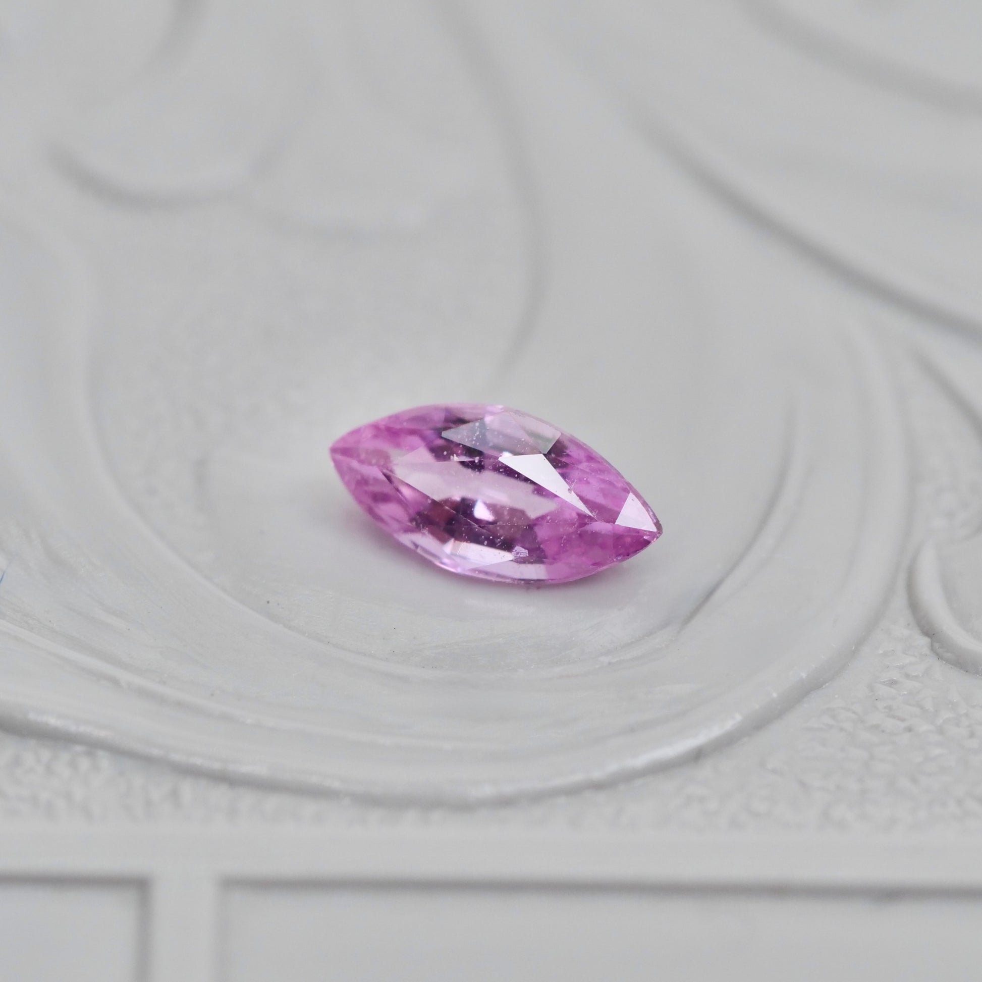 大人っぽくも愛らしい雰囲気漂うピンクカラーが上品に煌めく、マーキスカットのパパラチアサファイアです。透明感が有り、光を受けて奥から煌めく様は、華やかで美しい印象です。