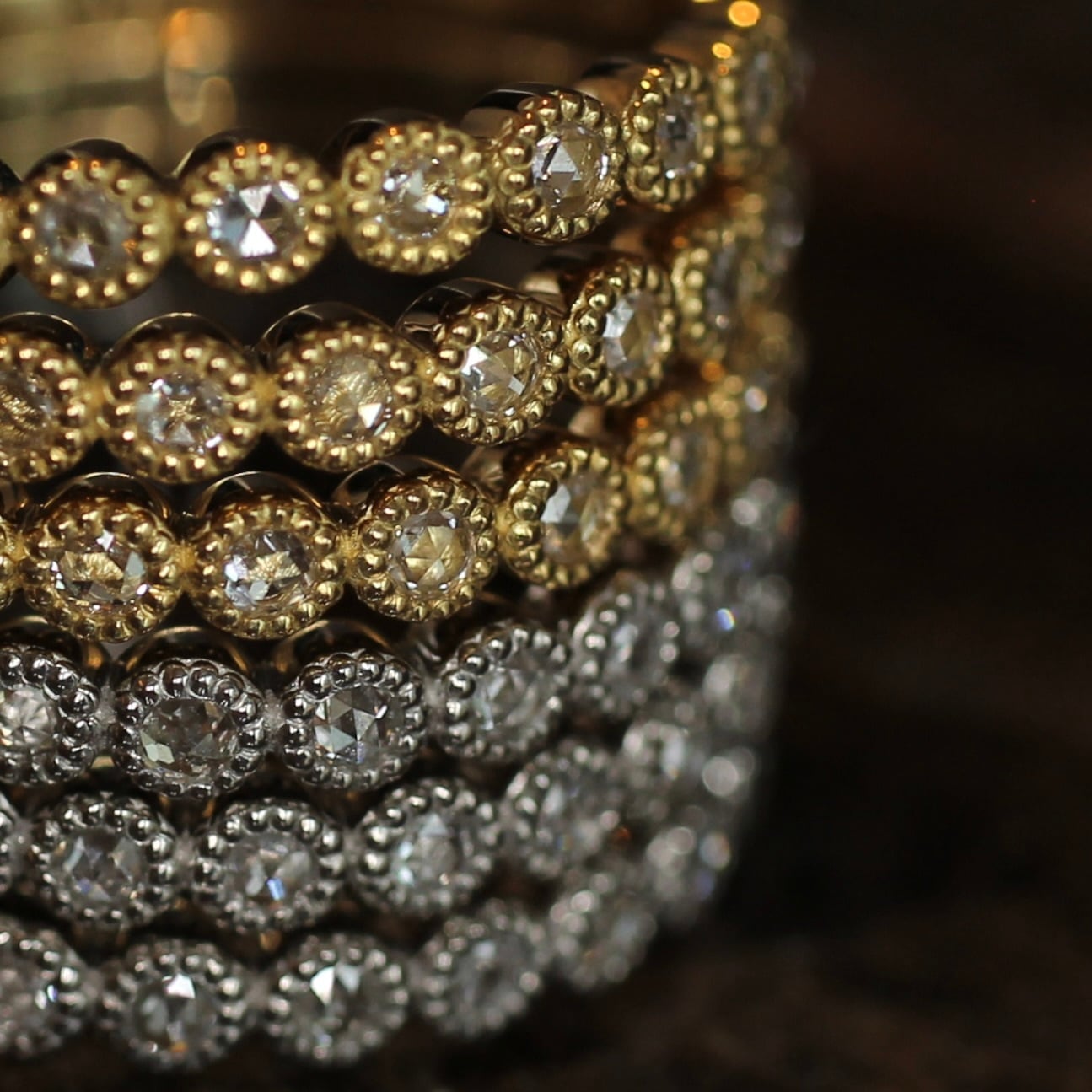 「ローズカットダイヤモンドのハーフエタニティリング」を、