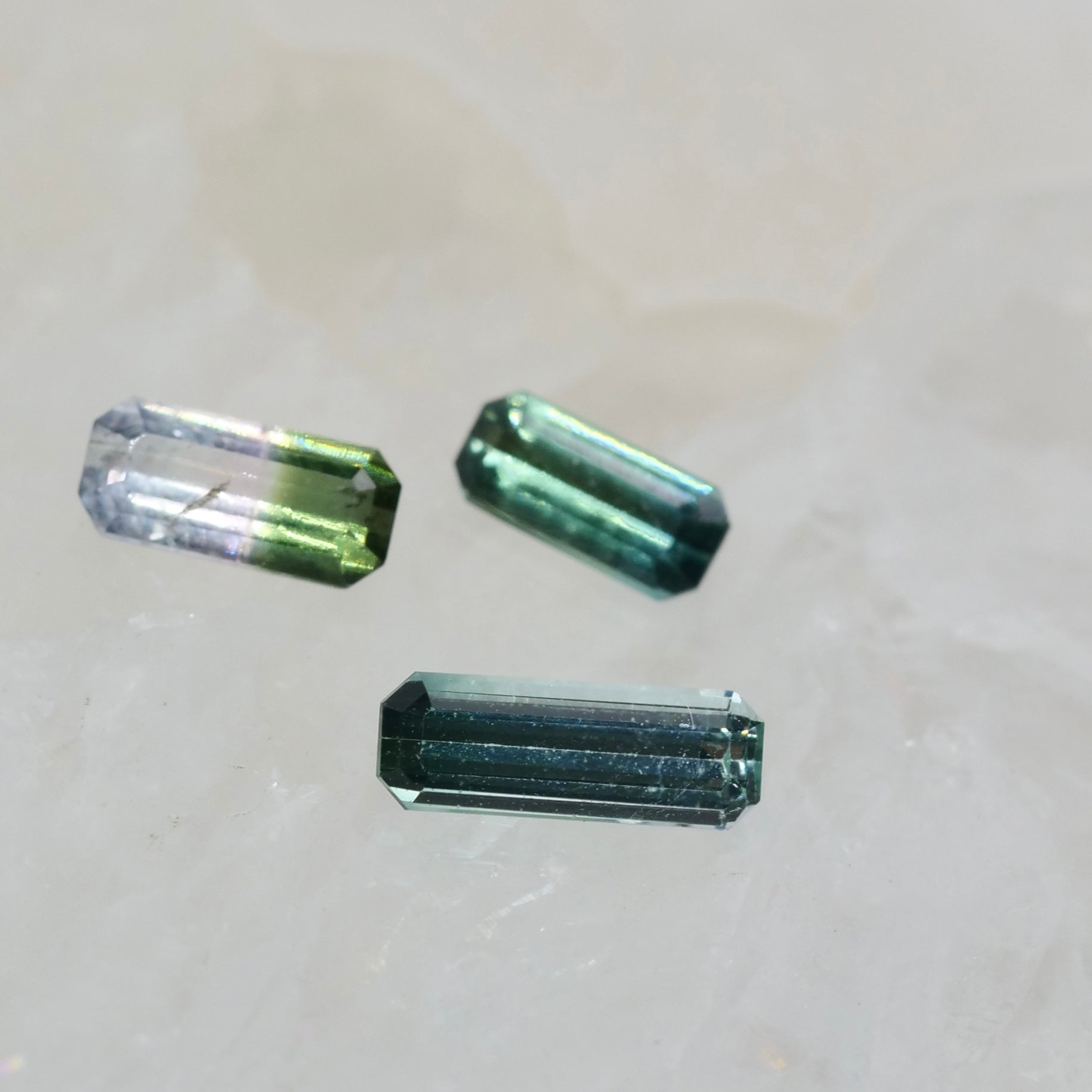 バイカラートルマリン 0.22ct エメラルドカット 5.4mm×2.4mm×1.8mm【MJ3014】