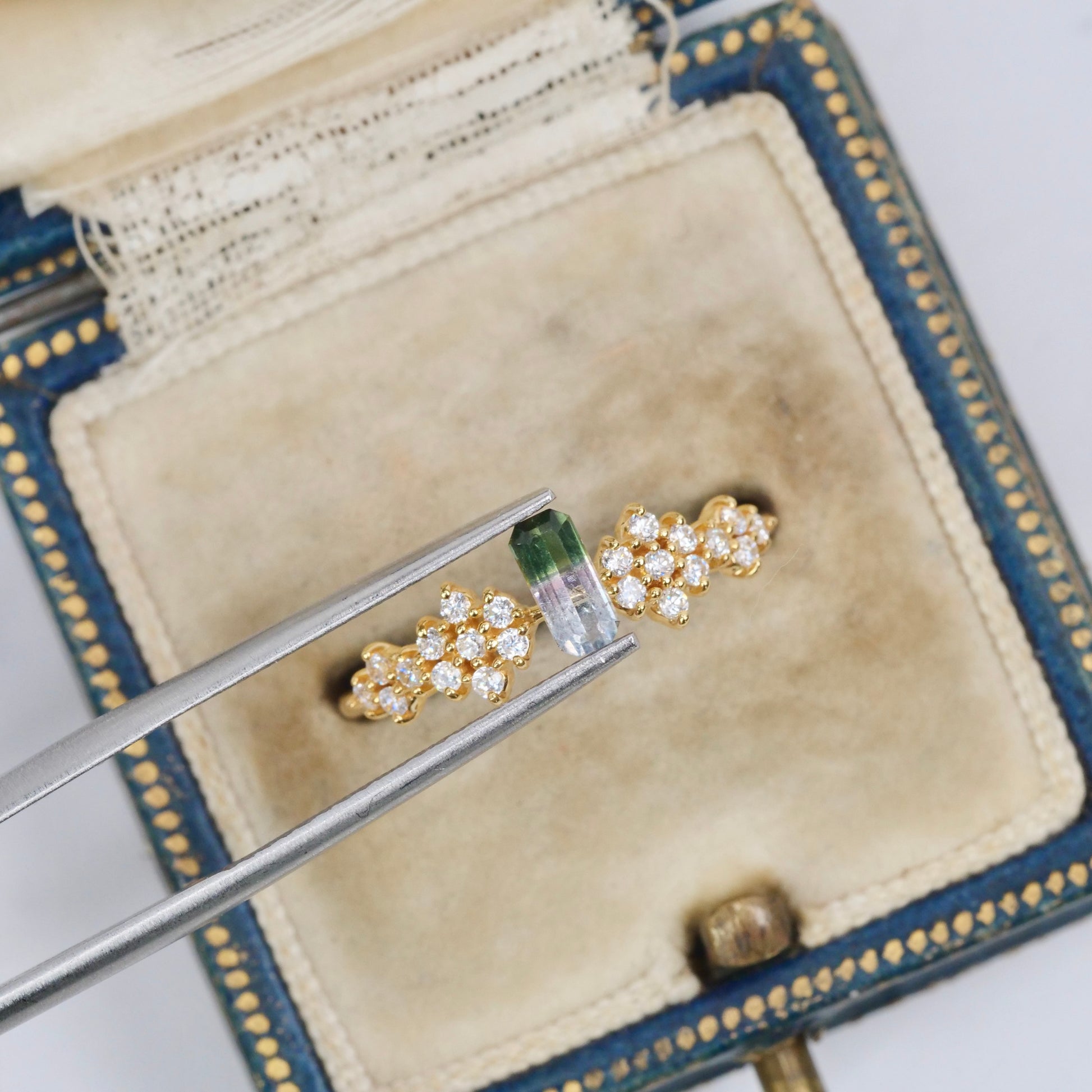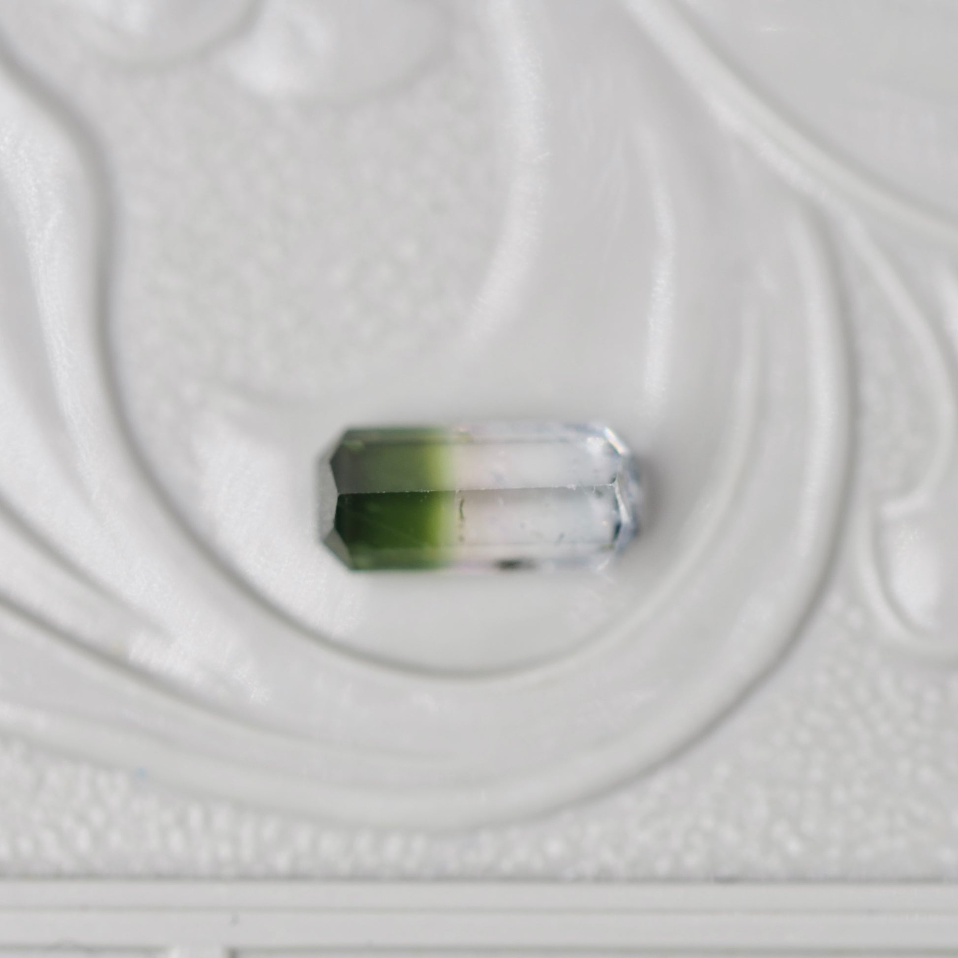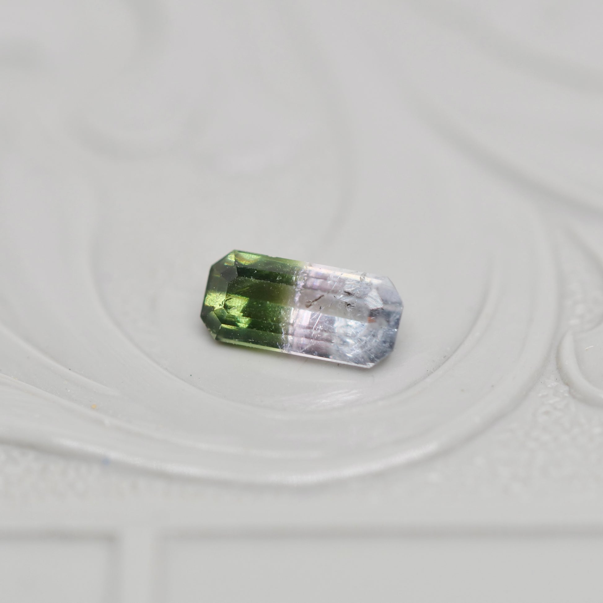 バイカラートルマリン 0.33ct エメラルドカット 6.0mm×2.7mm×2.1mm【MJ3018】