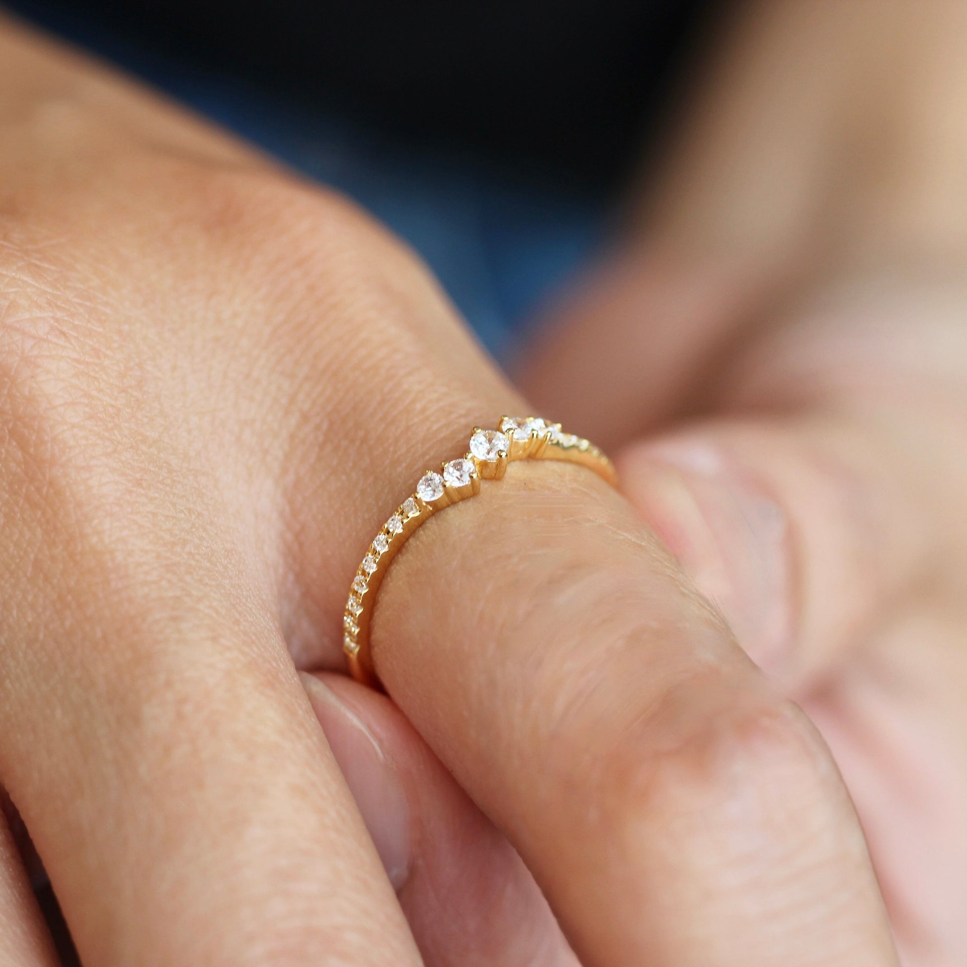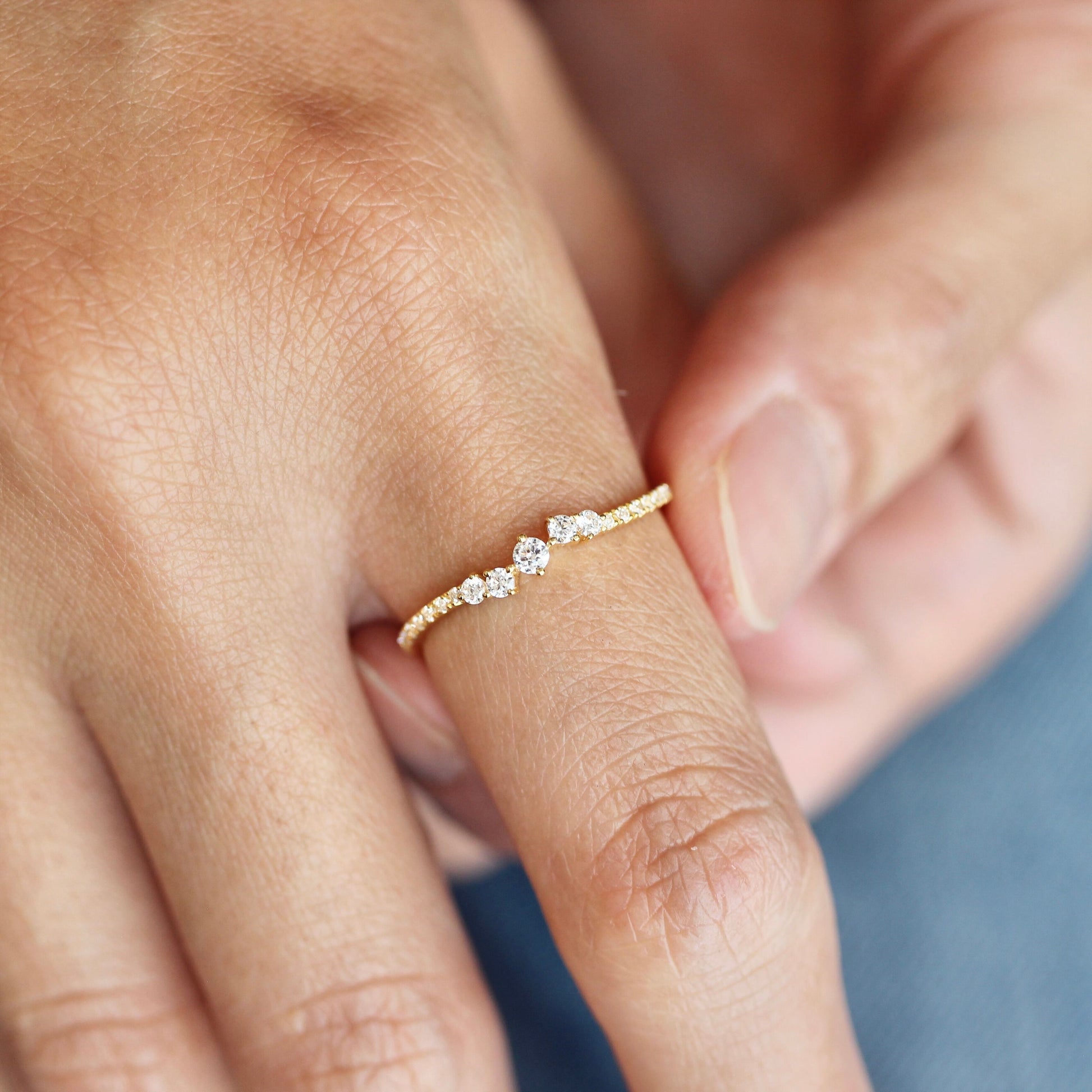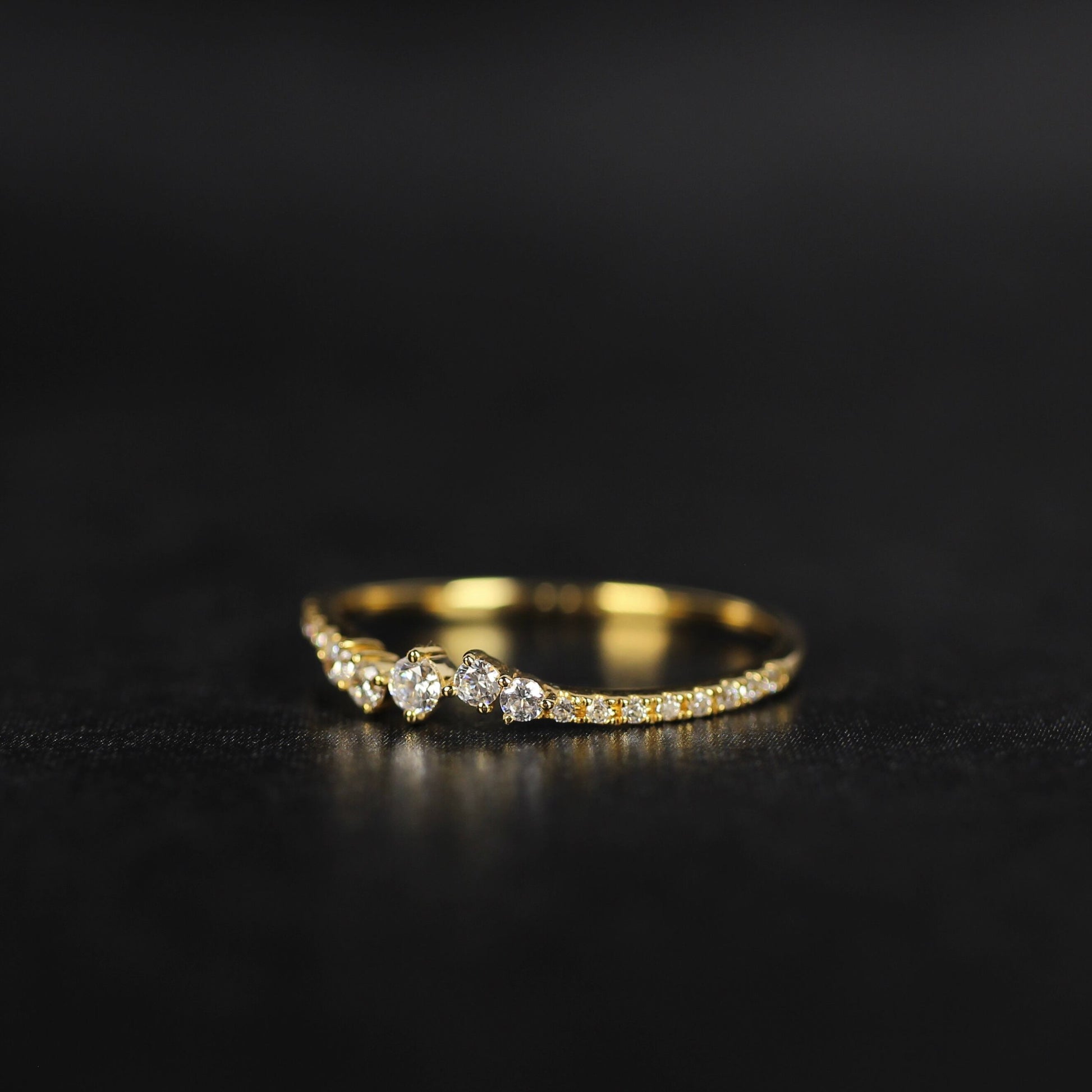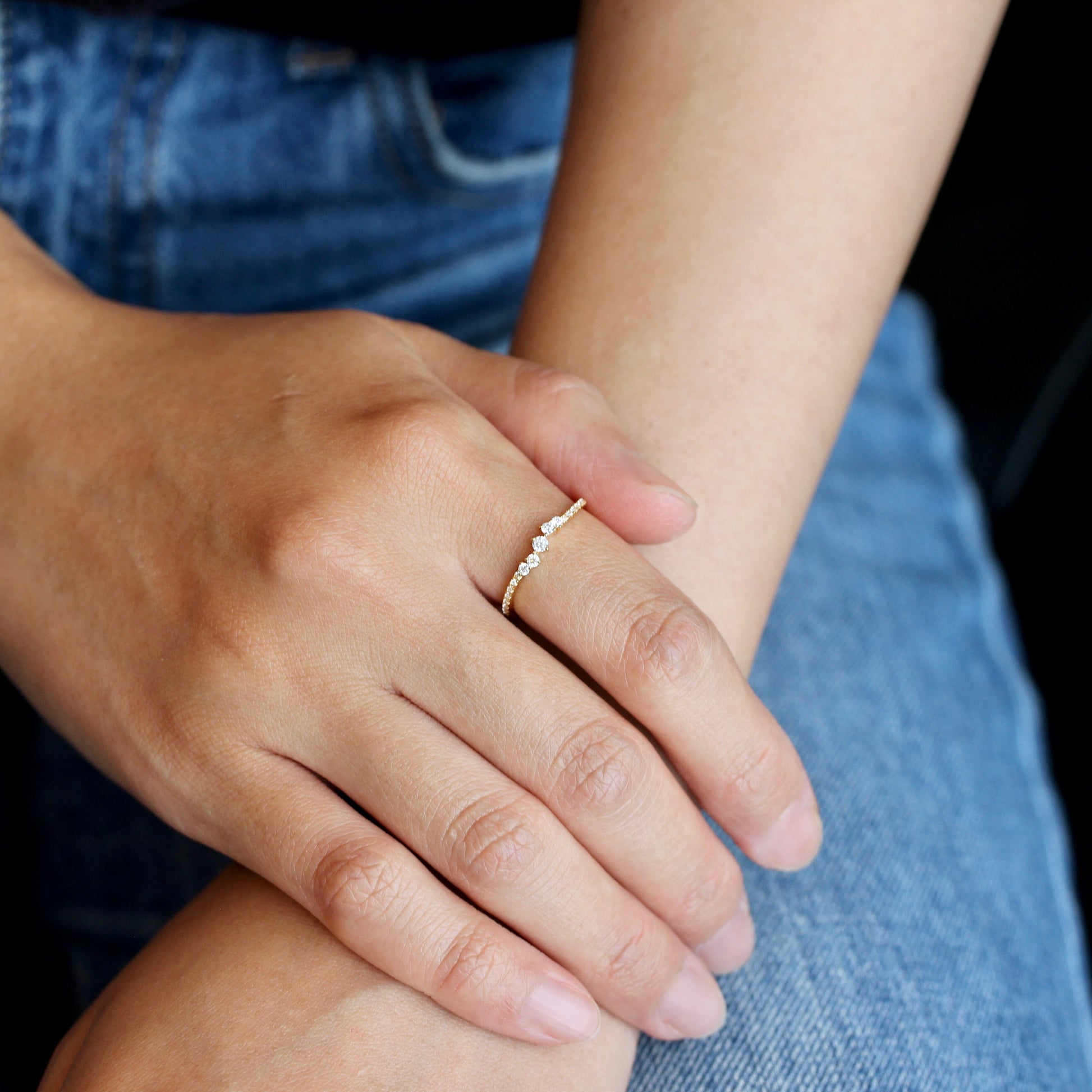 星座のような5石のダイヤモンドに寄り添うように緩やかな曲線を描くメレダイヤモンド。